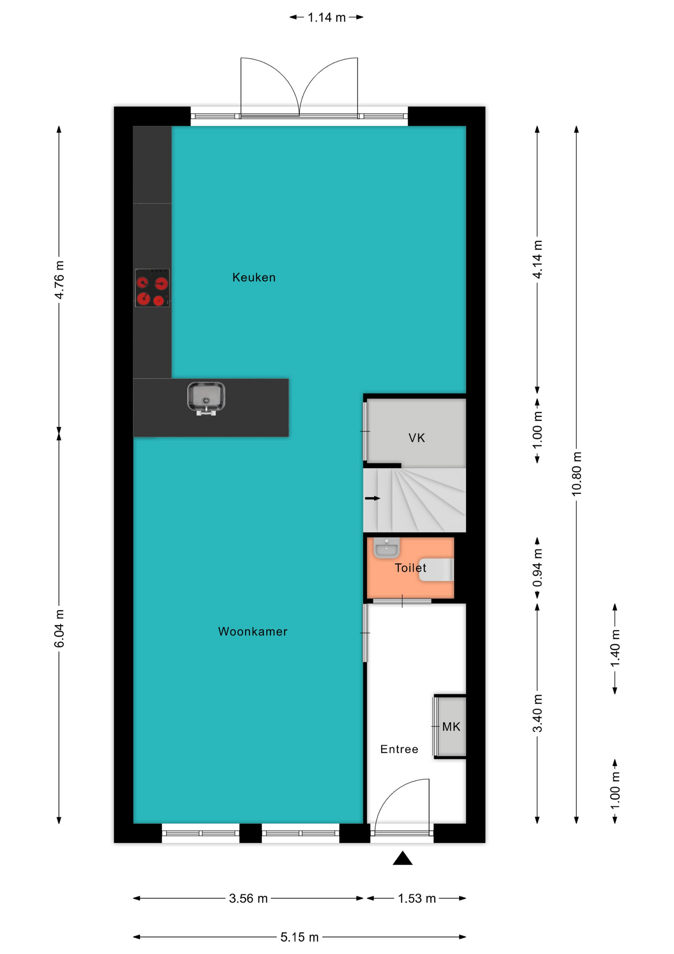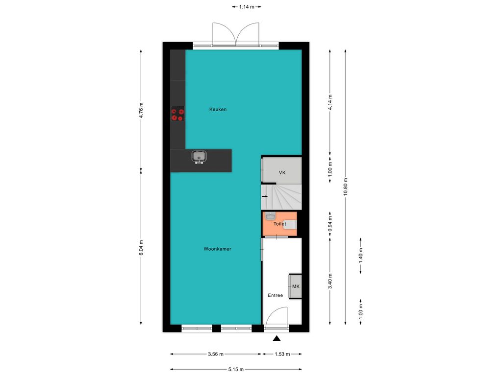 Voor de afmetingen en indeling raadpleeg de gedetailleerde plattegrond.