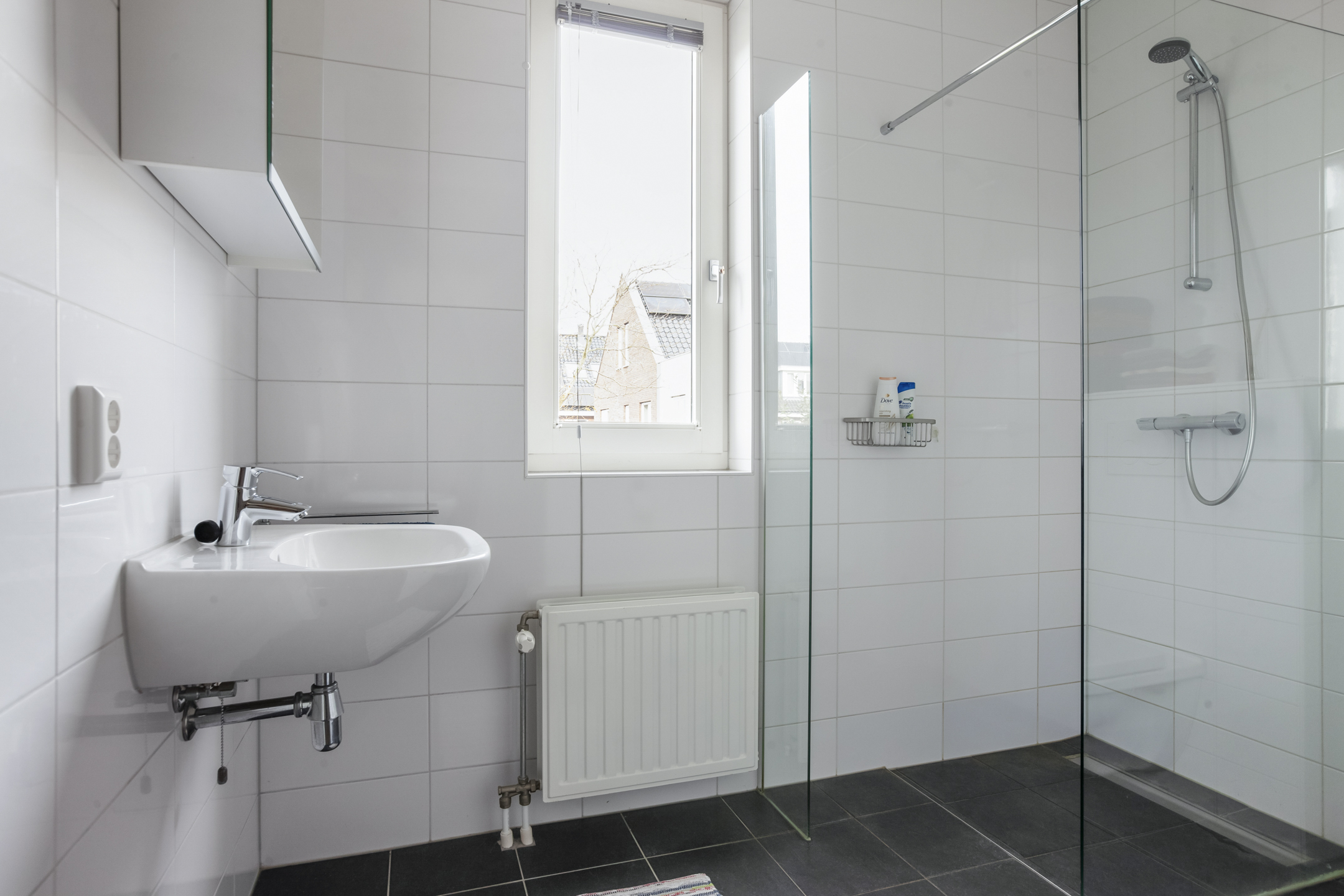 De badkamer ligt aan de achterzijde en beschikt over een: