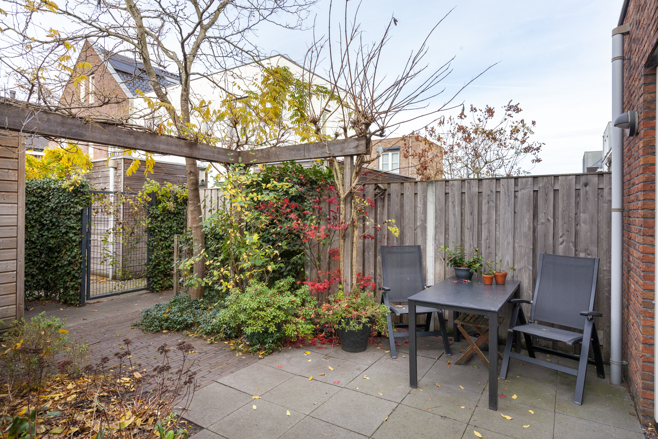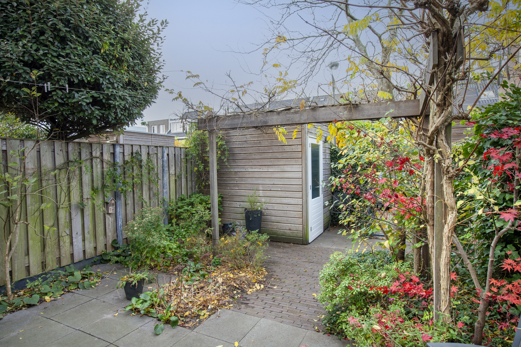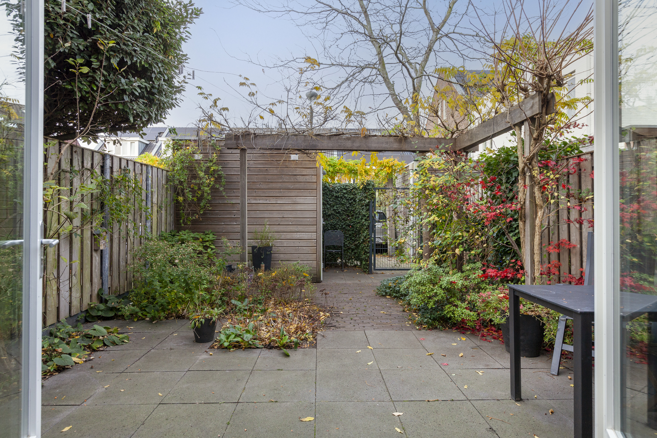 De achtertuin biedt een fijne plek om heerlijk tot rust te komen. Achterin bevindt zich een praktische en gefundeerde berging met elektra, ideaal voor extra opslag. Via de achterom bereik je het parkeerterrein, waar je beschikt over een eigen parkeerplaats.