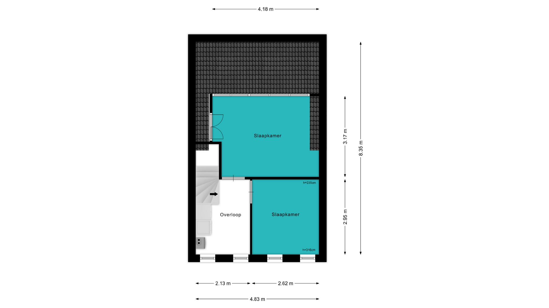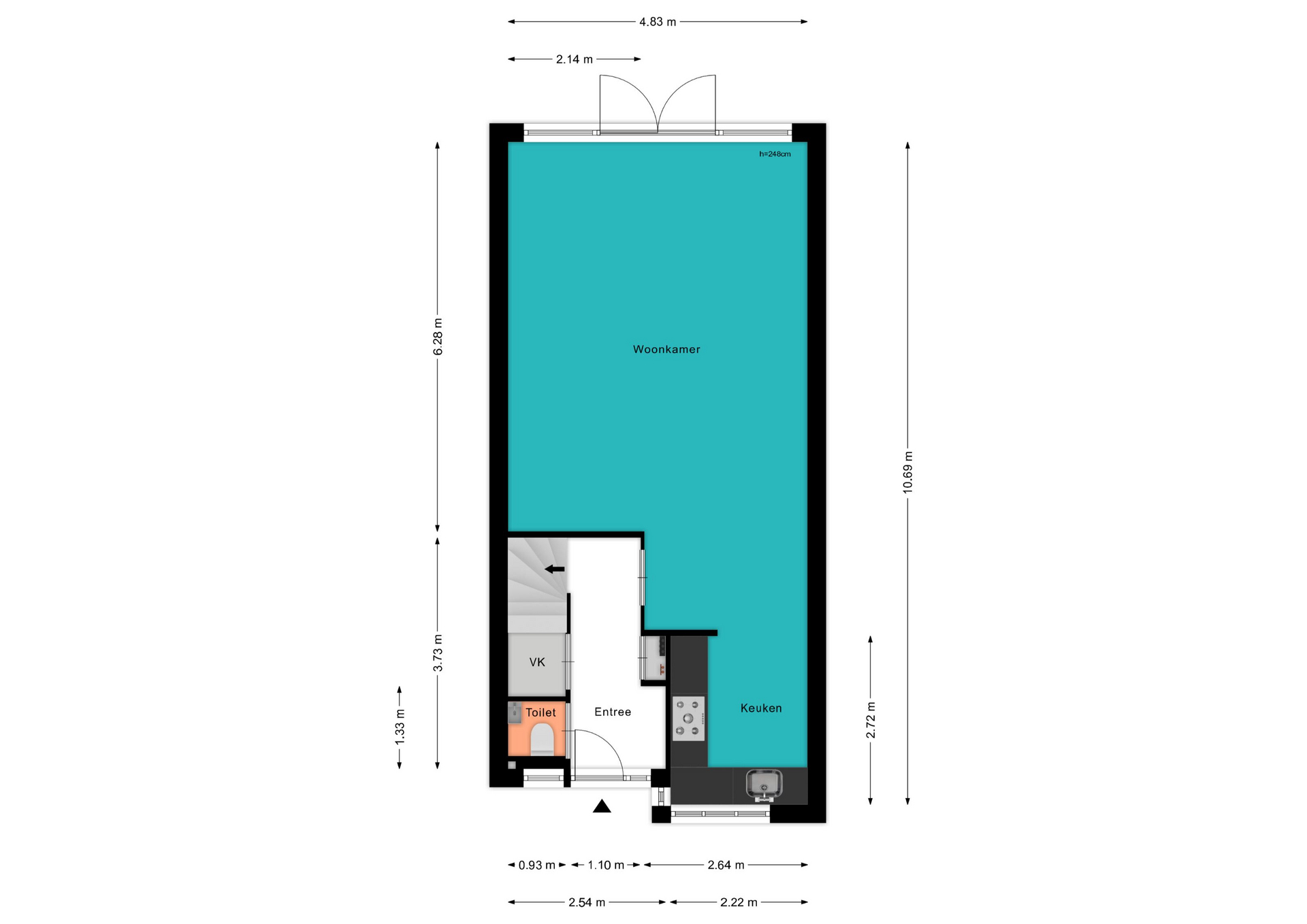 Voor de afmetingen en indeling raadpleeg de gedetailleerde plattegrond.