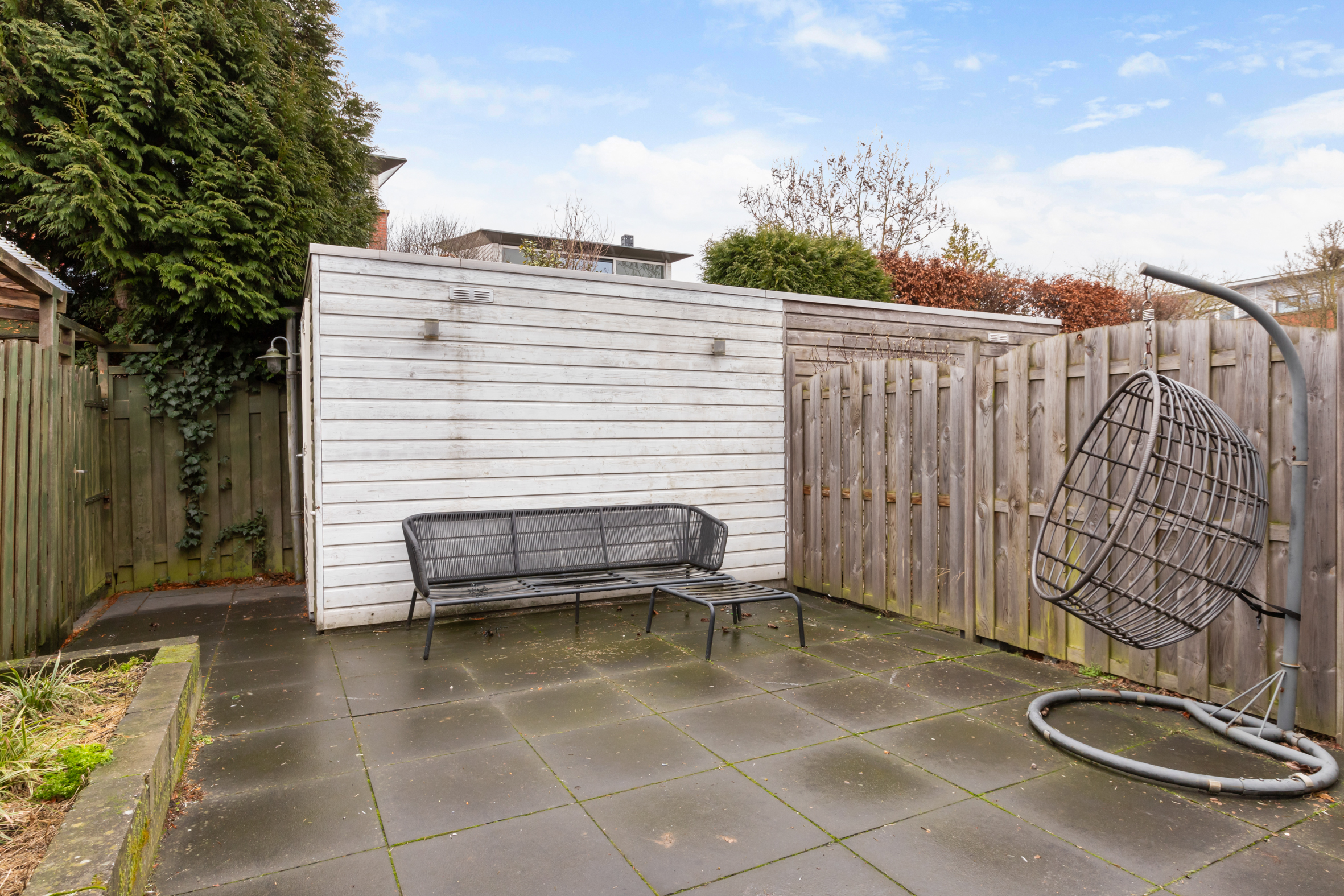 De achtertuin is onderhoudsvriendelijk aangelegd en gelegen op het zonnige zuidoosten. Er is een achterom aanwezig waardoor je je fiets gemakkelijk in de houten berging kunt stallen.