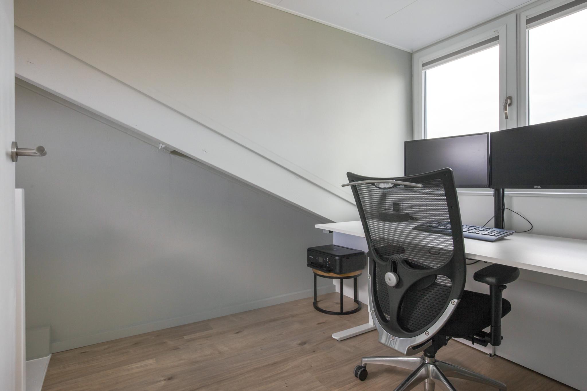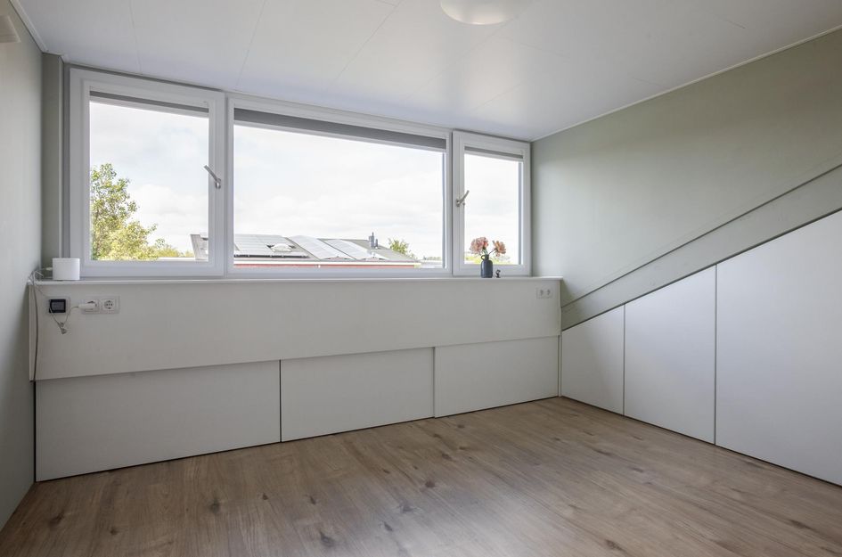 De voorzolder is ingericht als werkhoek en er is voldoende bergruimte onder de schuine kap. De vierde slaapkamer heeft op maat gemaakte kasten en veel overige bergruimte onder de schuine delen. Ook is hier de HR CV-ketel opgesteld. Beide ruimtes zijn uitgerust met elektrische vloerverwarming.