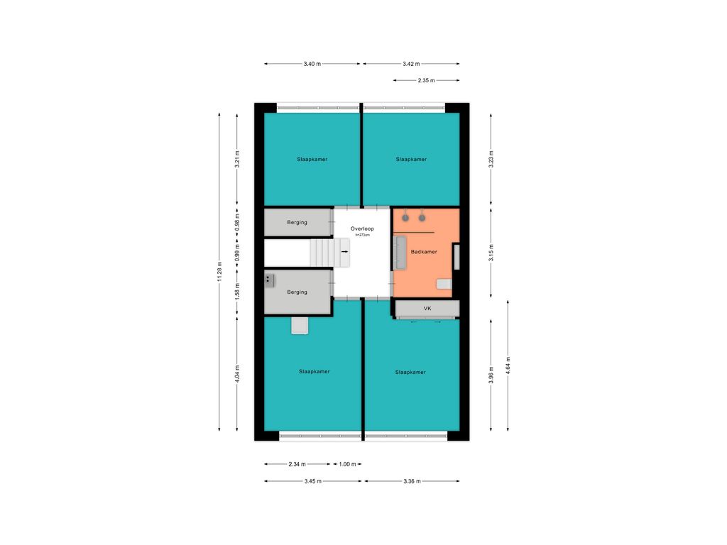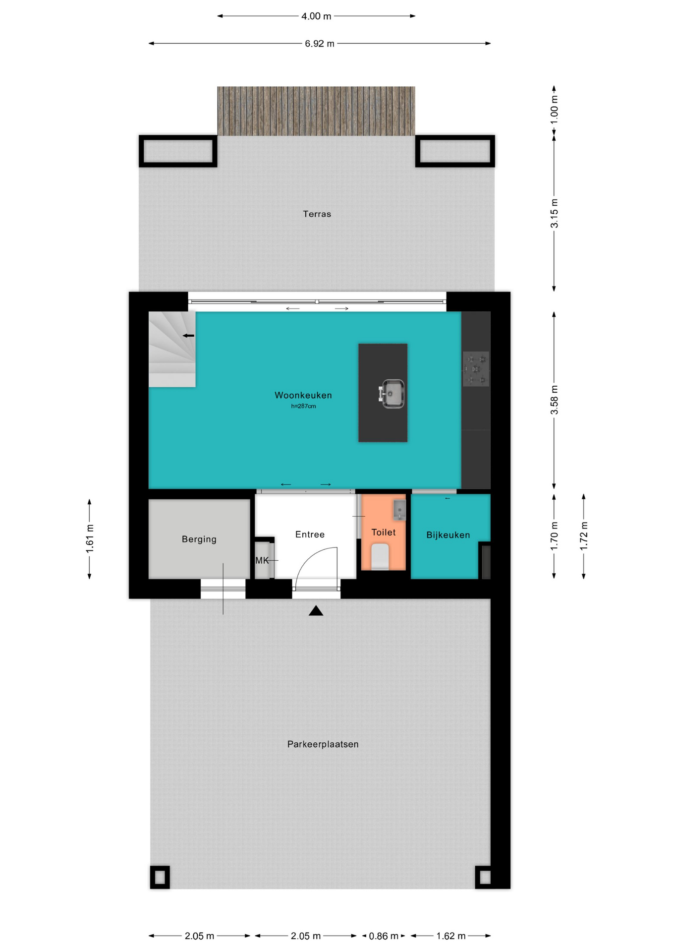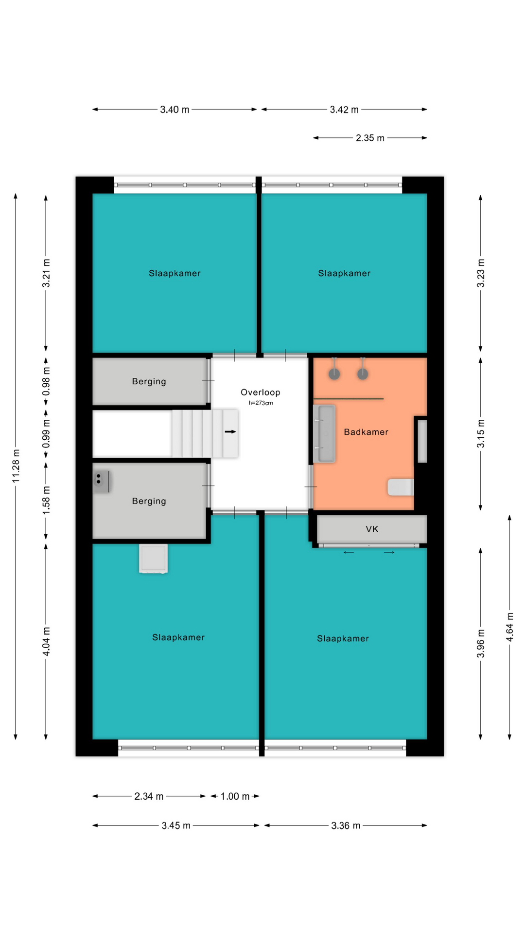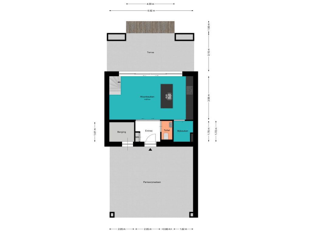 Voor de afmetingen en indeling raadpleeg de gedetailleerde plattegrond.