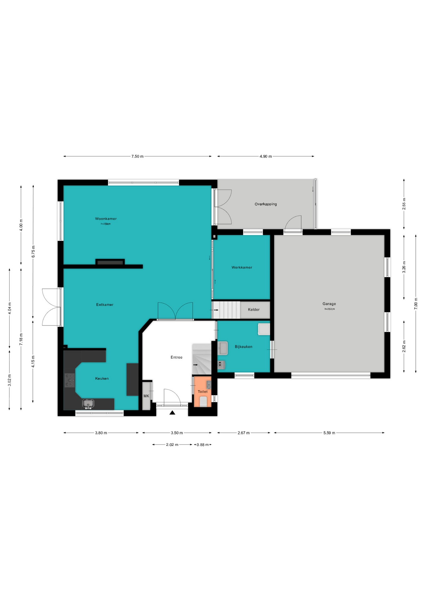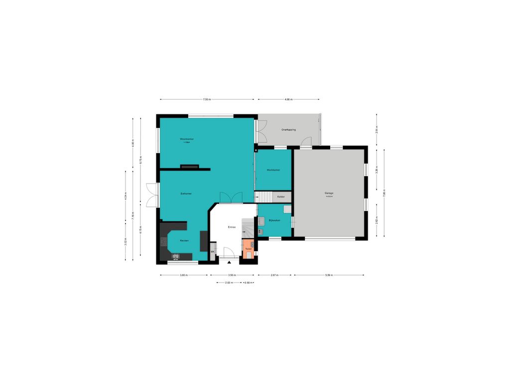 Voor de afmetingen en indeling raadpleeg de gedetailleerde plattegrond.