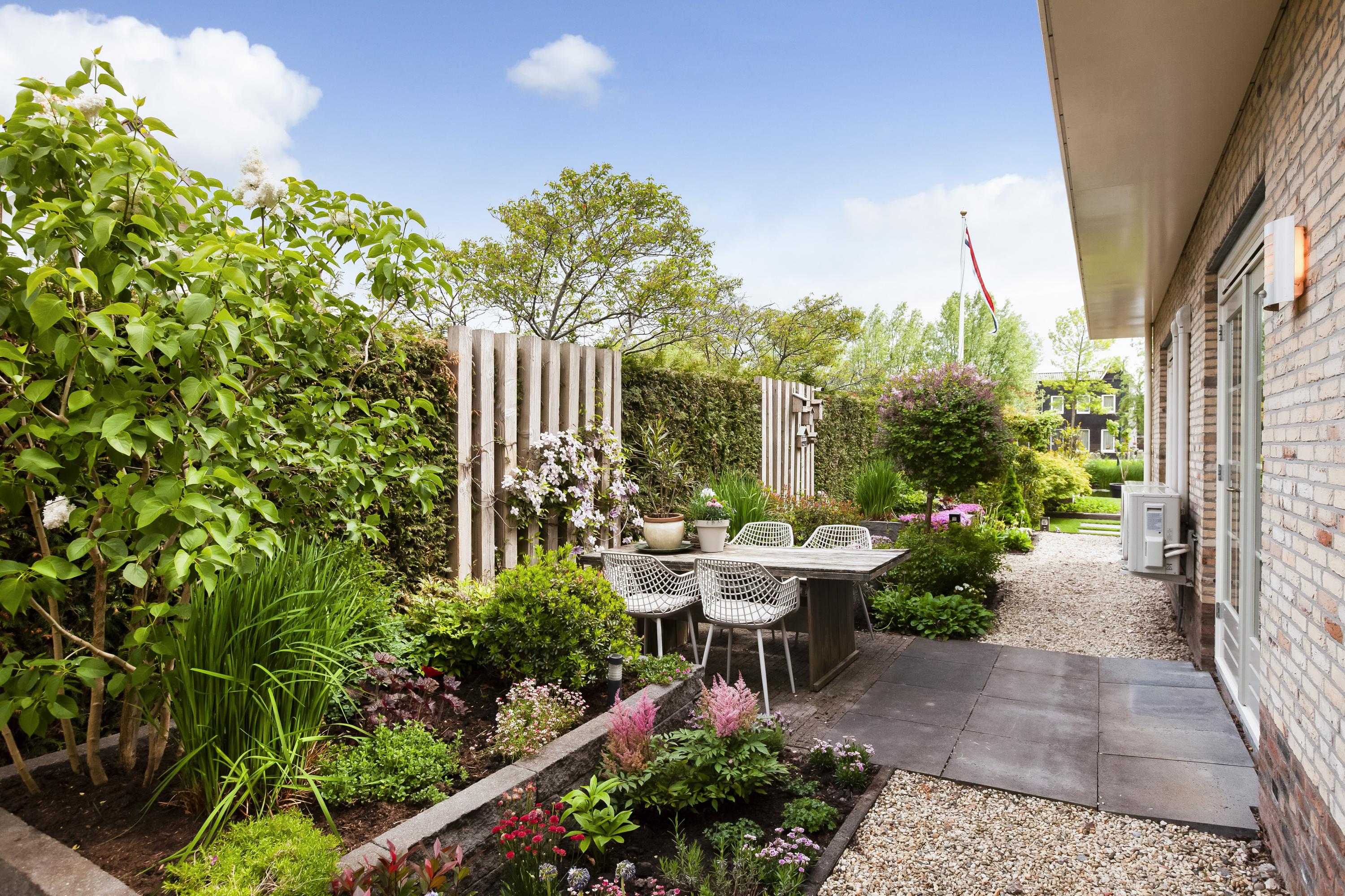 - De tuin is in 2023 opnieuw aangelegd en voorzien van een besproeiingssysteem