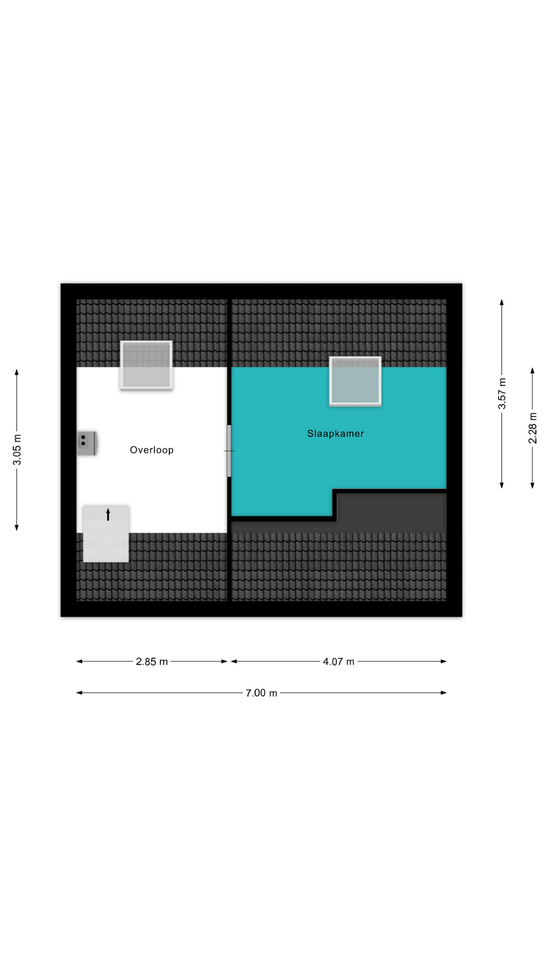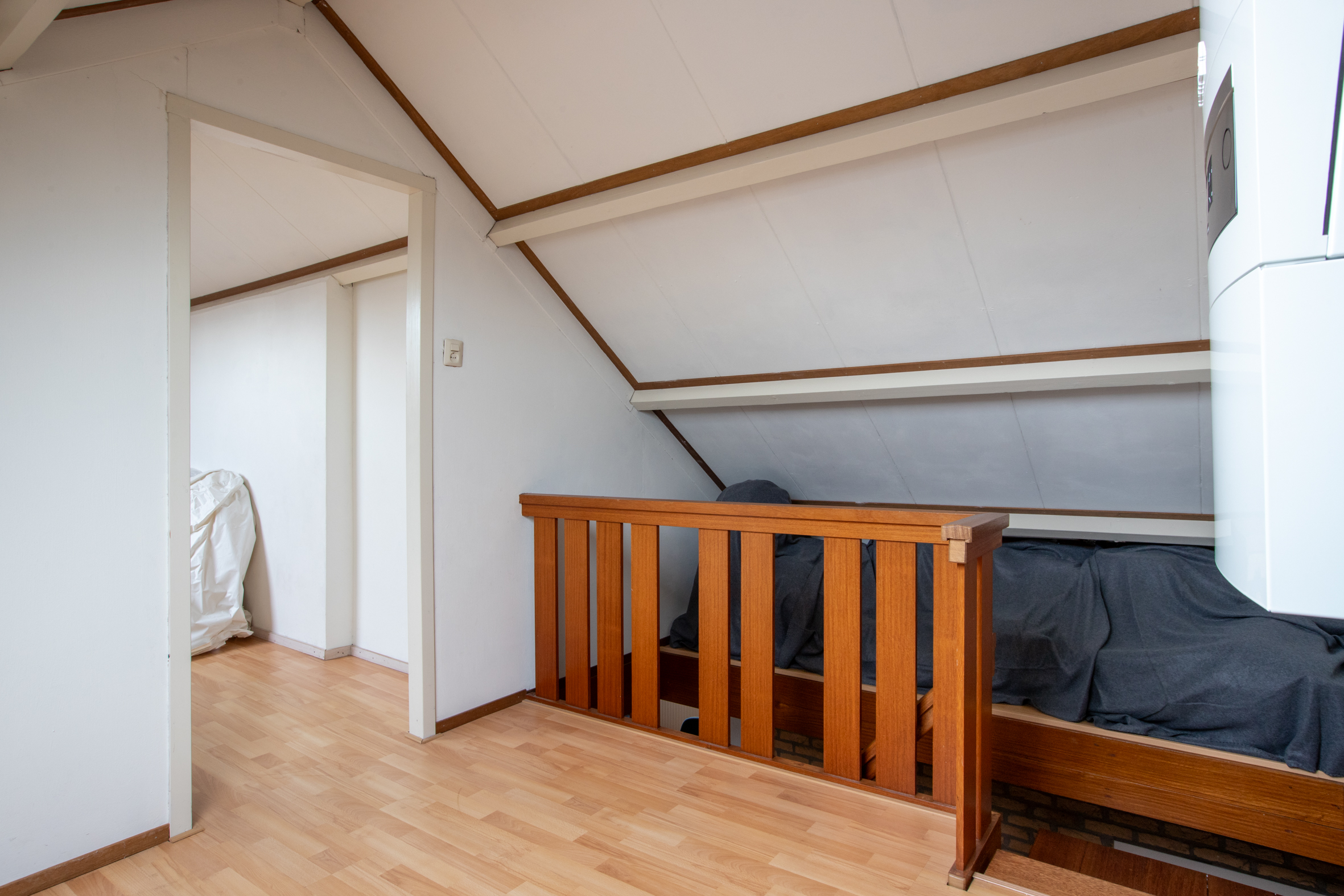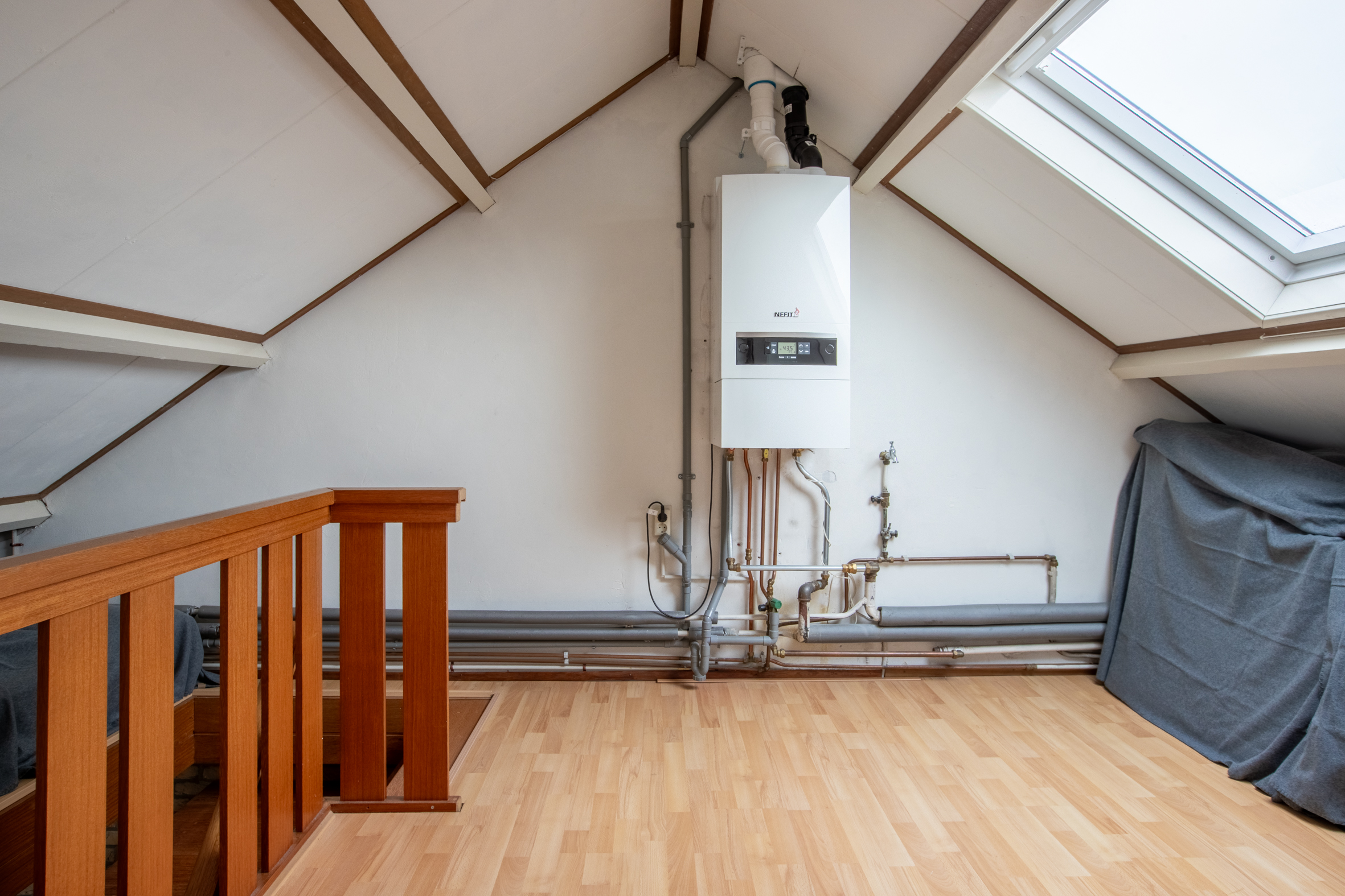 Op de overloop van de zolder vind je de opstelplaats van de CV-ketel, een groot dakraam en toegang tot de derde slaapkamer. Hier zorgt een groot dakraam eveneens voor veel daglichtinval.
