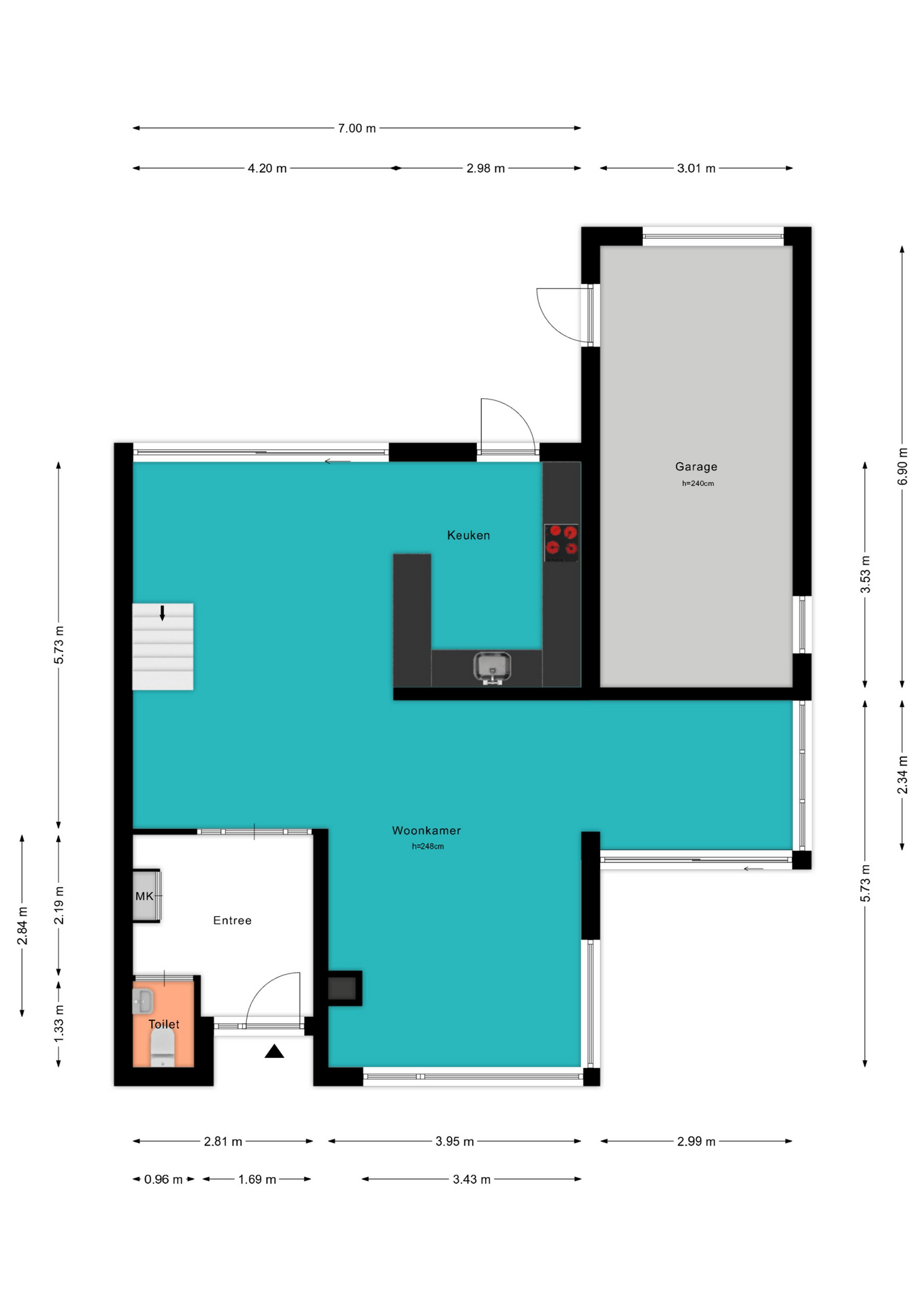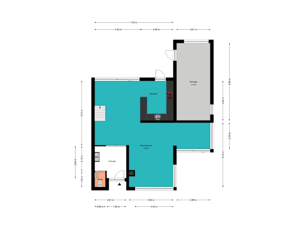 Voor de afmetingen en indeling raadpleeg de gedetailleerde plattegrond.