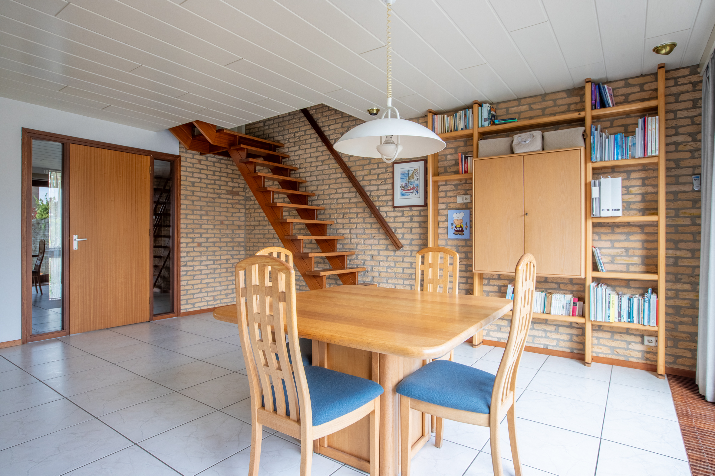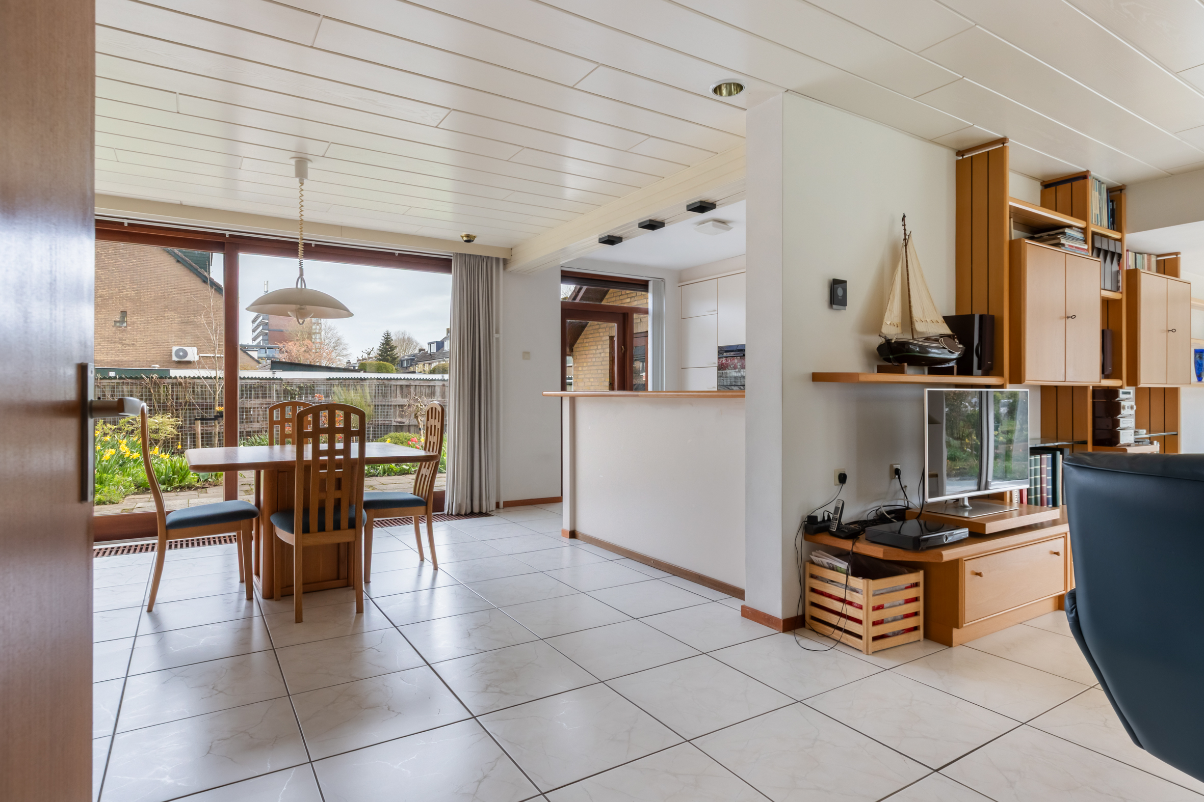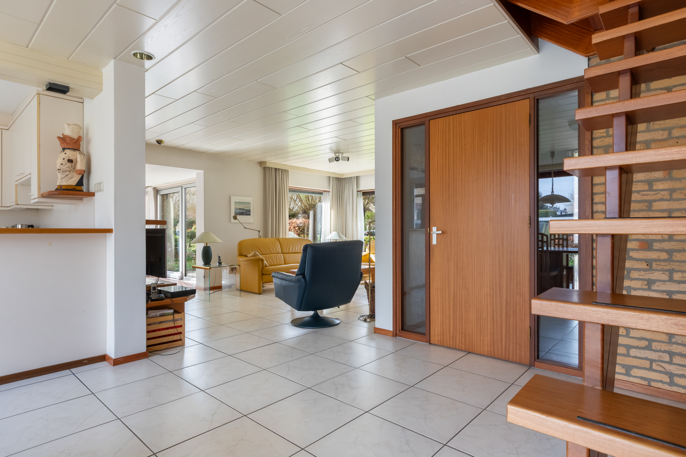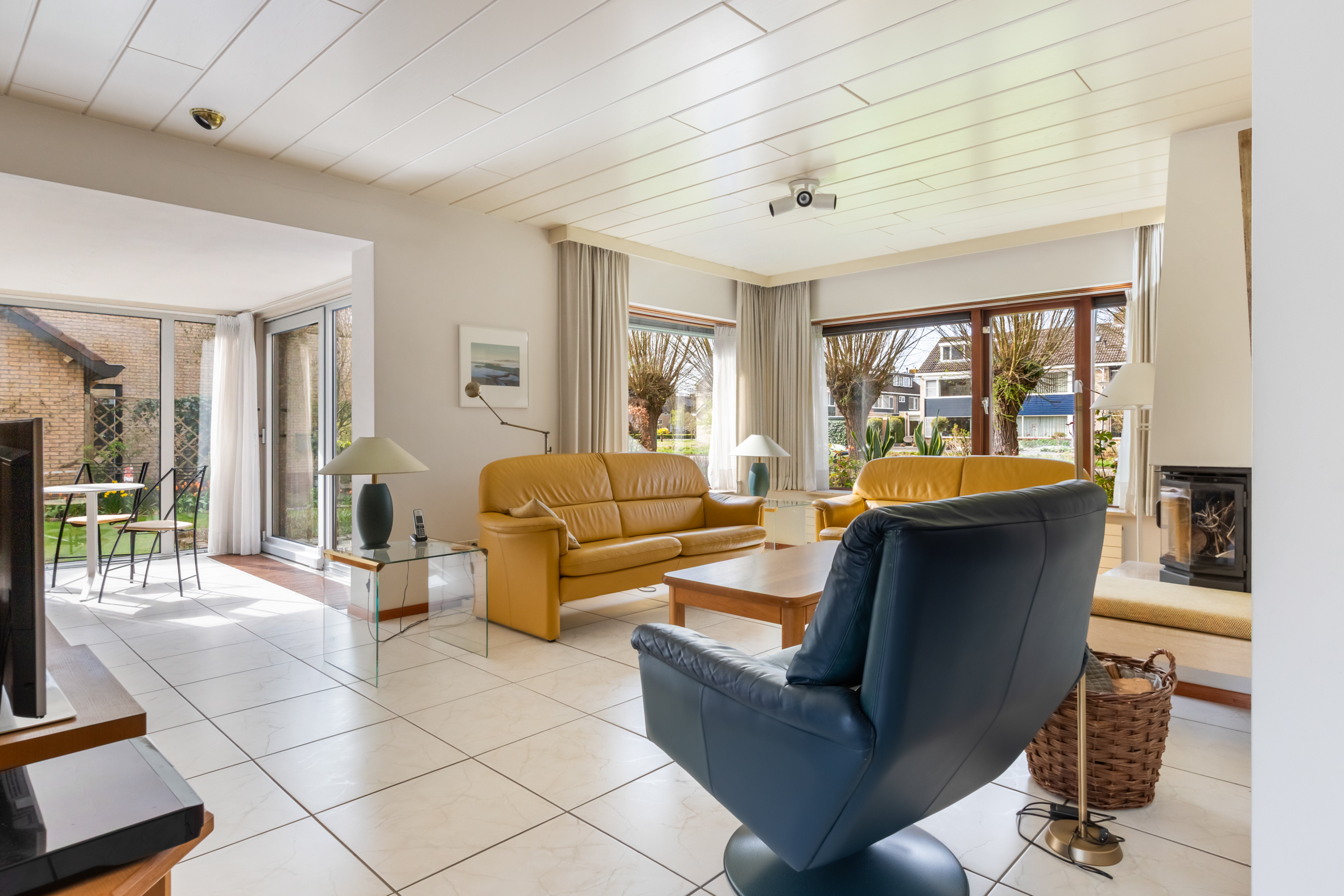Aan de voorzijde van de woning vind je het sfeervolle zitgedeelte, met open haard en grote raampartijen die zorgen voor veel lichtinval en een vrij uitzicht over de groene omgeving. Aansluitend bevindt zich een extra, lichte ruimte met een schuifpui naar de voortuin. Ideaal als leeshoek, speelruimte of werkplek.