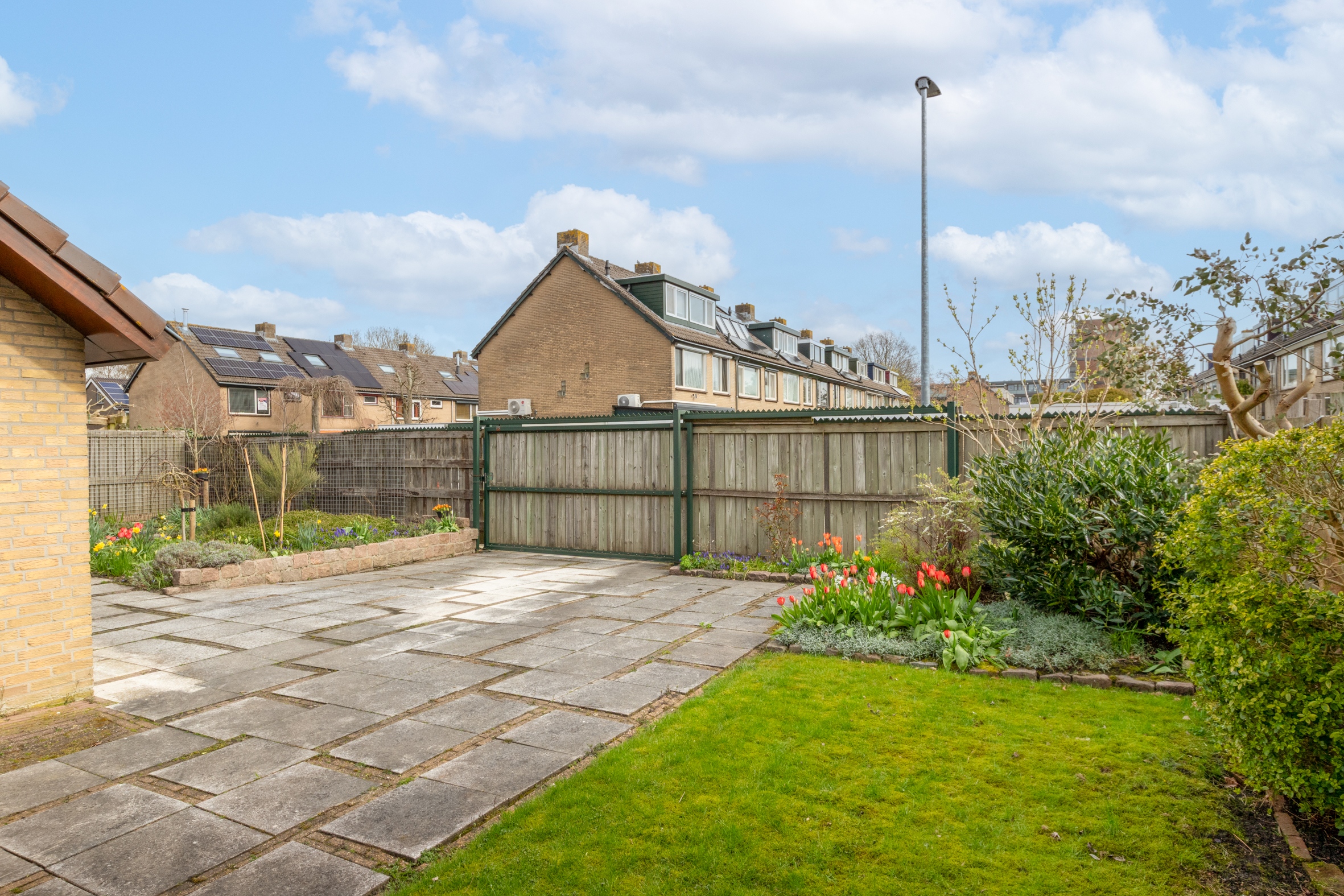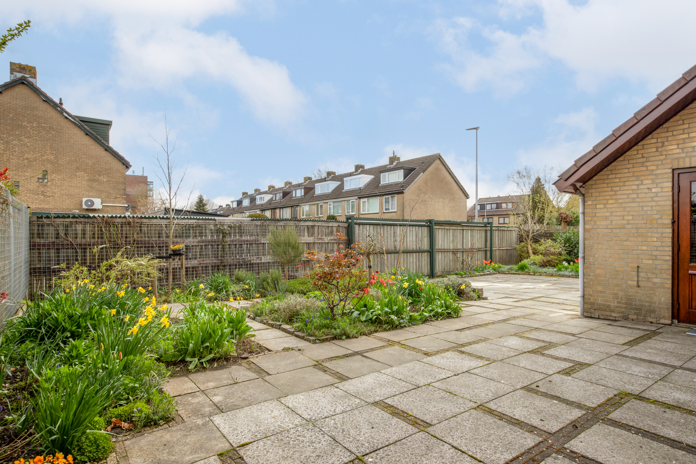 De riante voor-, zij- en achtertuin zijn fraai aangelegd met diverse planten en bloemen. De achtertuin biedt diverse zitplekken waar je kunt genieten van de zon of juist de verkoeling opzoekt in de schaduw. De tuin is de perfecte plek voor ontspanning, gezellig samenzijn of tuinieren. Daarnaast heb je vanuit de tuin directe toegang tot de garage.