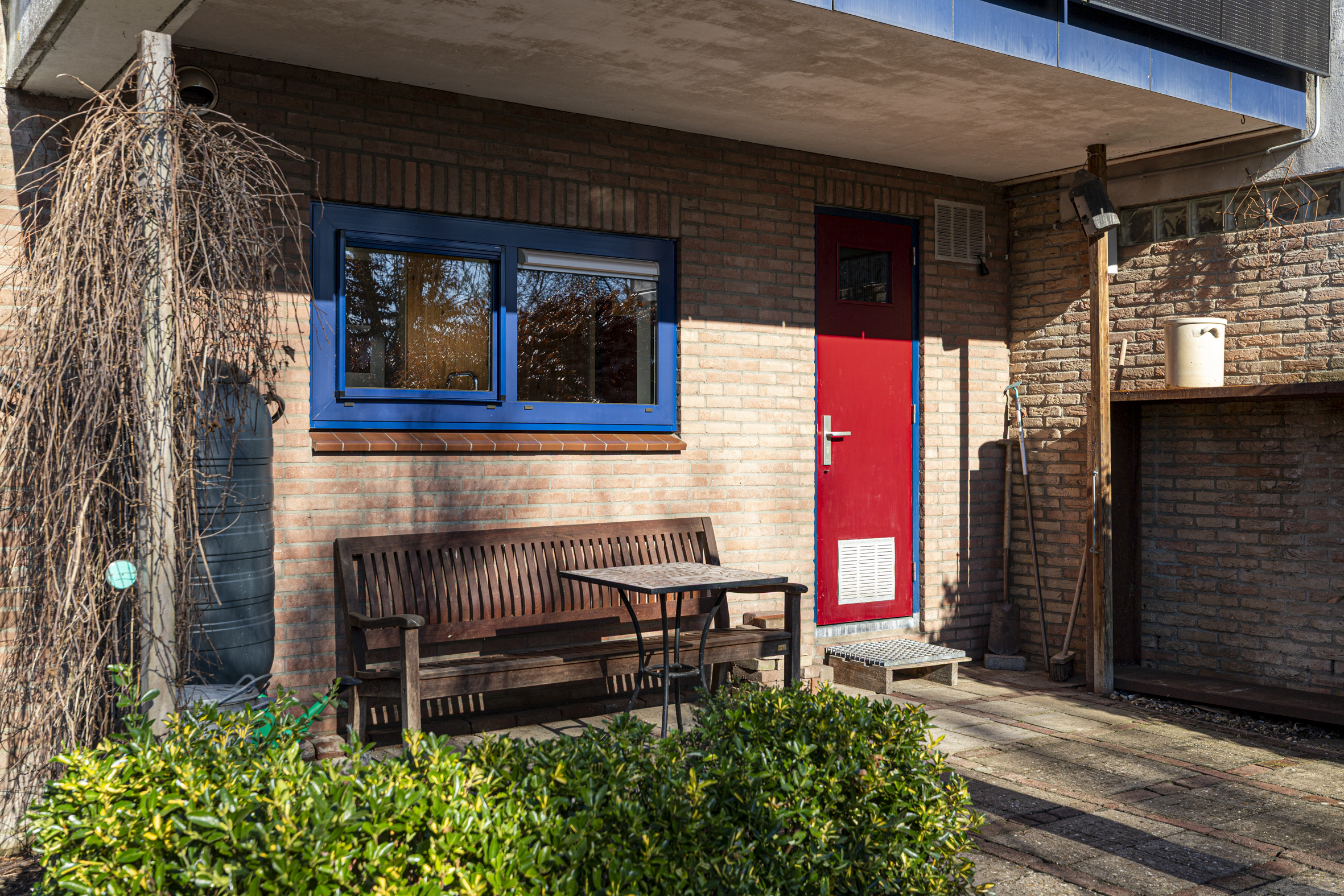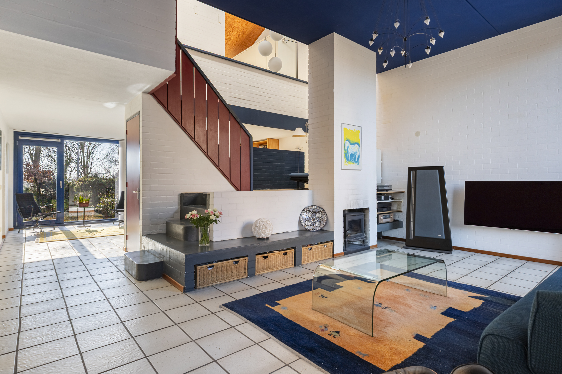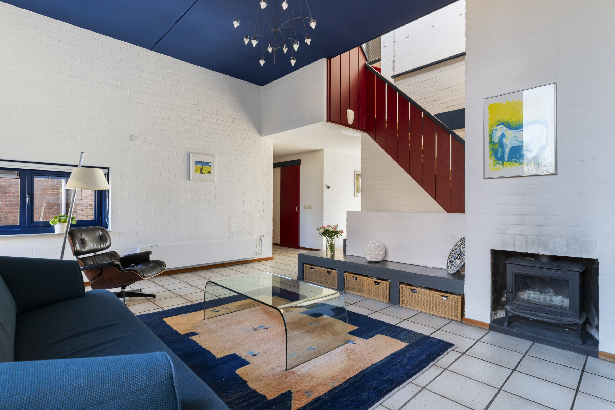 Tegenover de entree is een praktische garderobehoek aanwezig, met aansluitend de toiletruimte. De woonkamer is speels ingedeeld met een zitgedeelte aan de voorzijde en het eetgedeelte aan de achterzijde met schuifpui naar de achtertuin. De open haard zorgt voor extra sfeer, terwijl de grote raampartijen zorgen voor een aangename lichtinval. Vanuit het eetgedeelte bereik je via een schuifdeur de dichte keuken, die langs één wand is opgesteld. De keuken is voorzien van een inductiekookplaat, afzuigkap, vaatwasser, koel-vriescombinatie en magnetron.