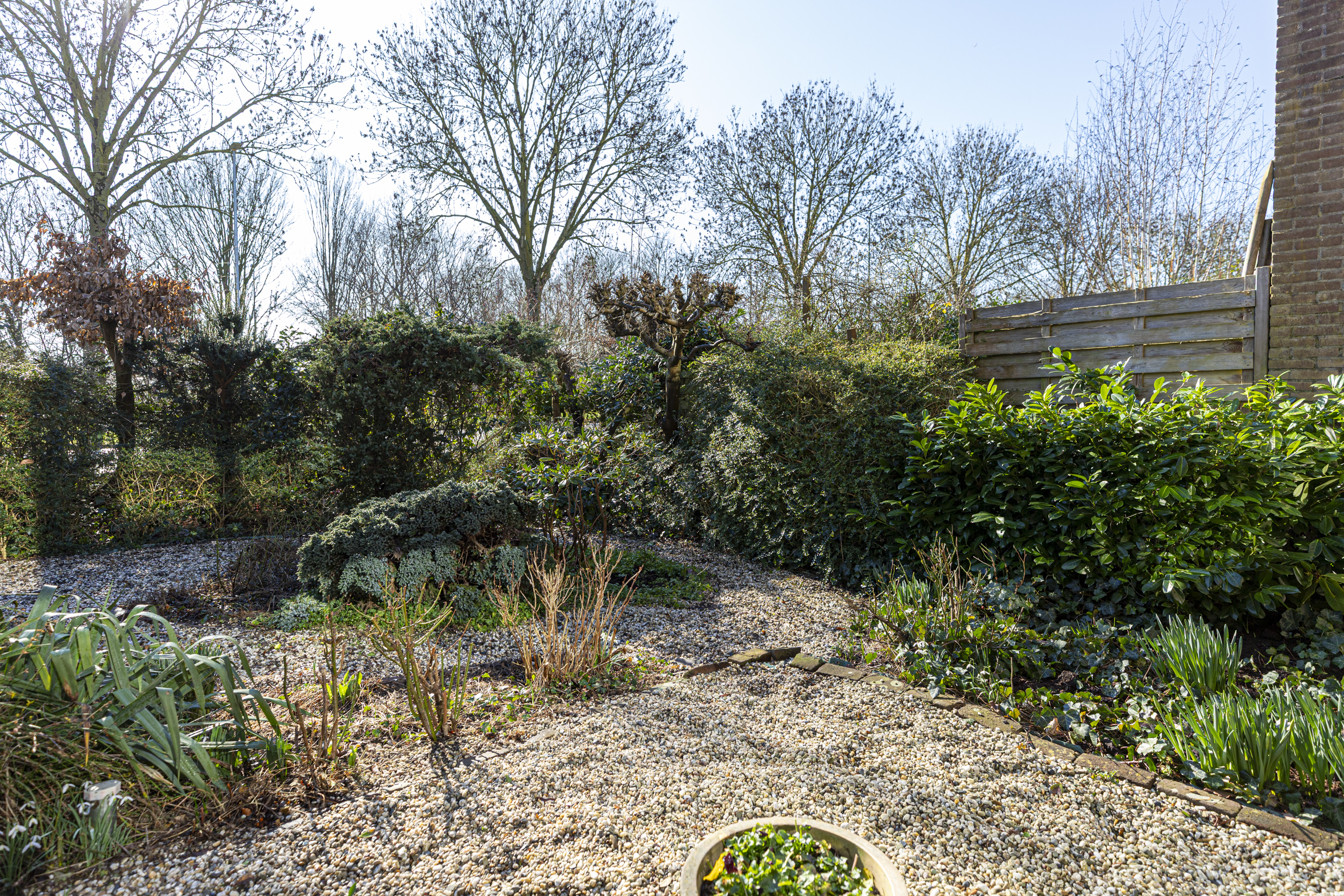 De sfeervolle tuin heeft een open ligging en een ideale situering op het zuidoosten. Je geniet hier van veel privacy en groen. De tuin is daarnaast ingericht met sierstraatwerk en grind. Een heerlijke plek om te ontspannen!