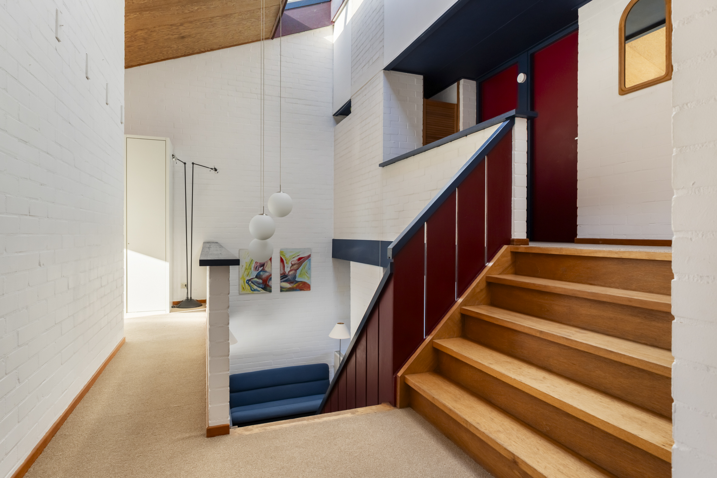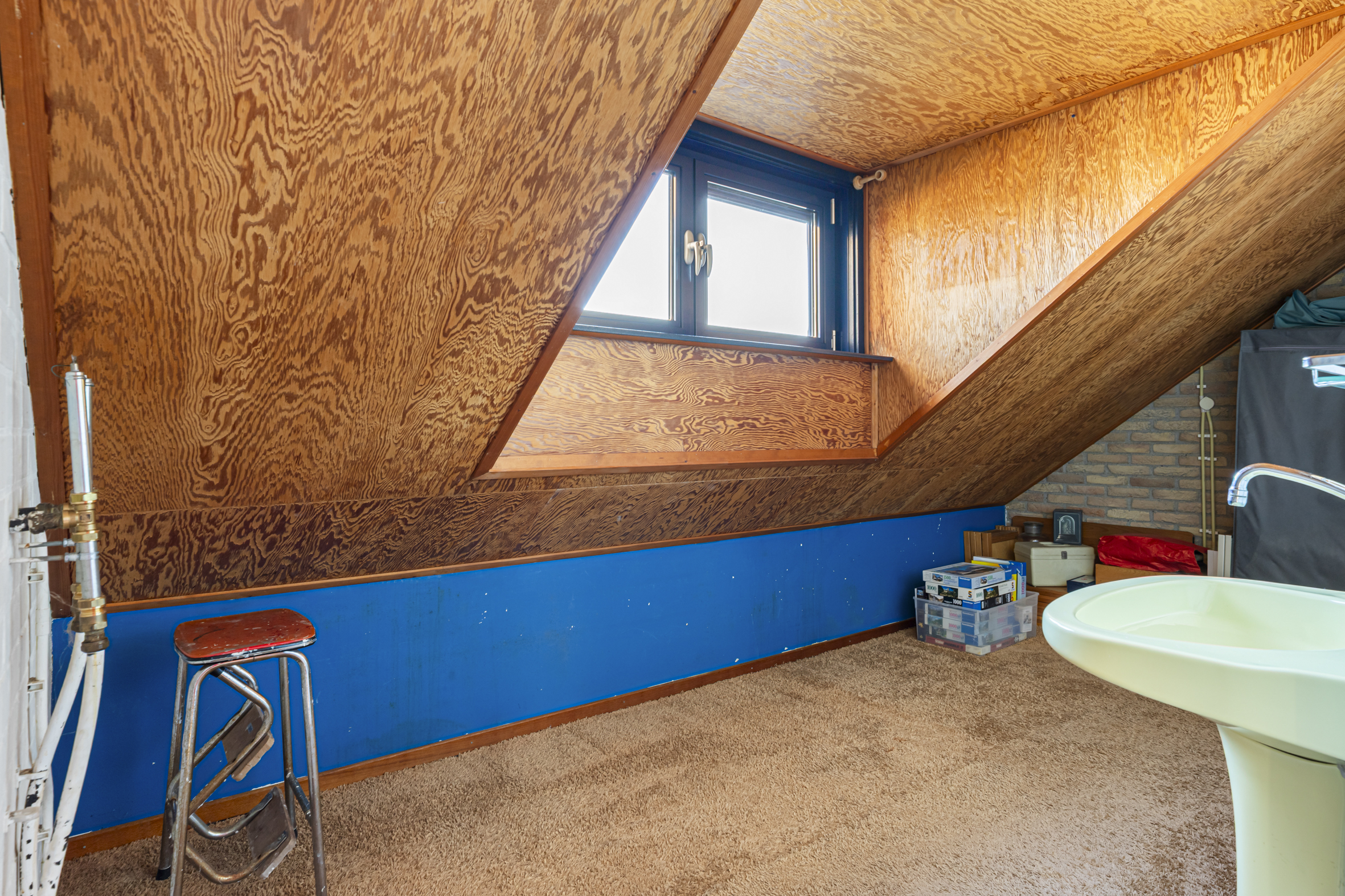 Via de trap met een royaal bordes in het midden van de woning bereik je de verdieping. Onder de trap bevindt zich bovendien een praktische kelder, ideaal voor het opbergen van voorraad.