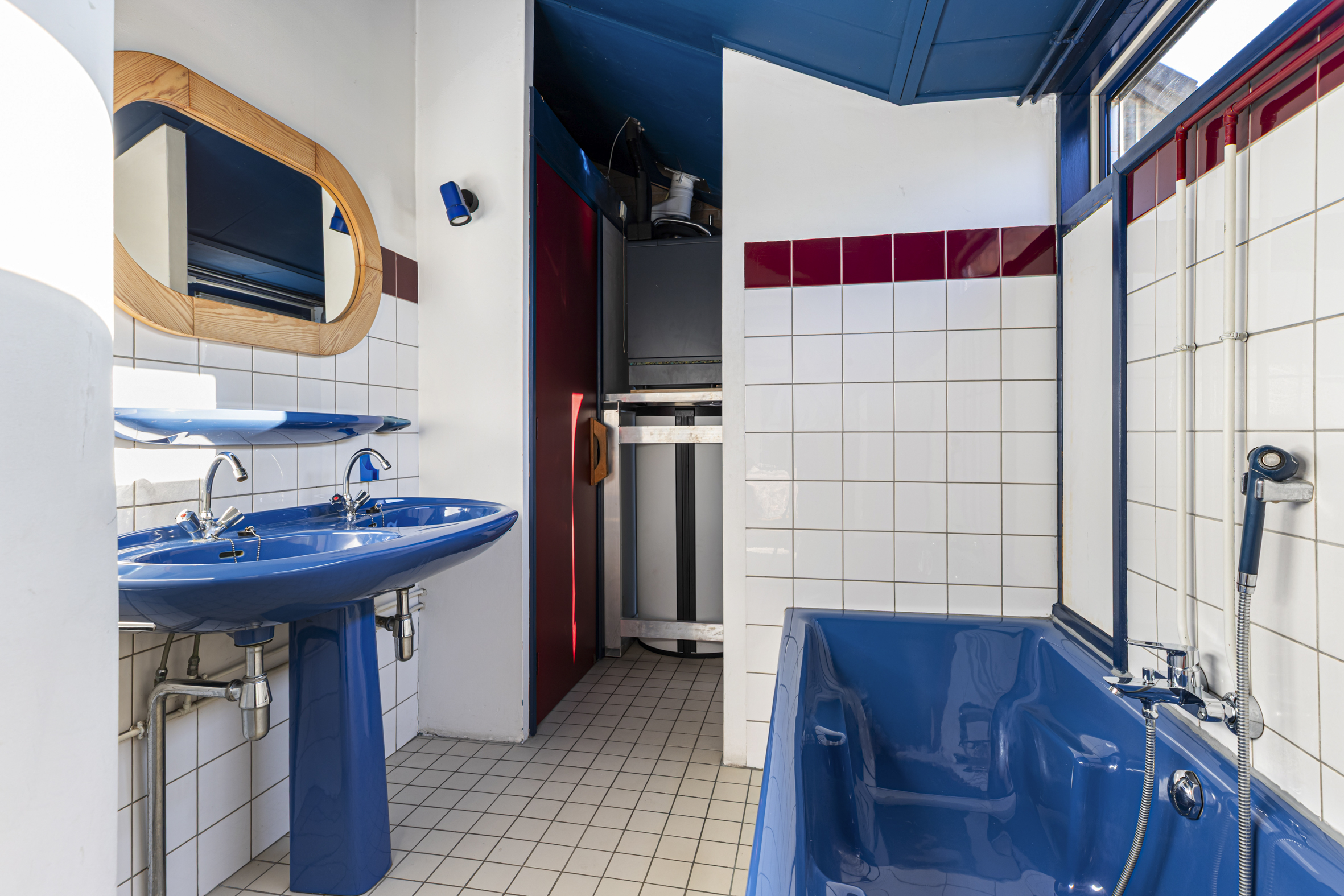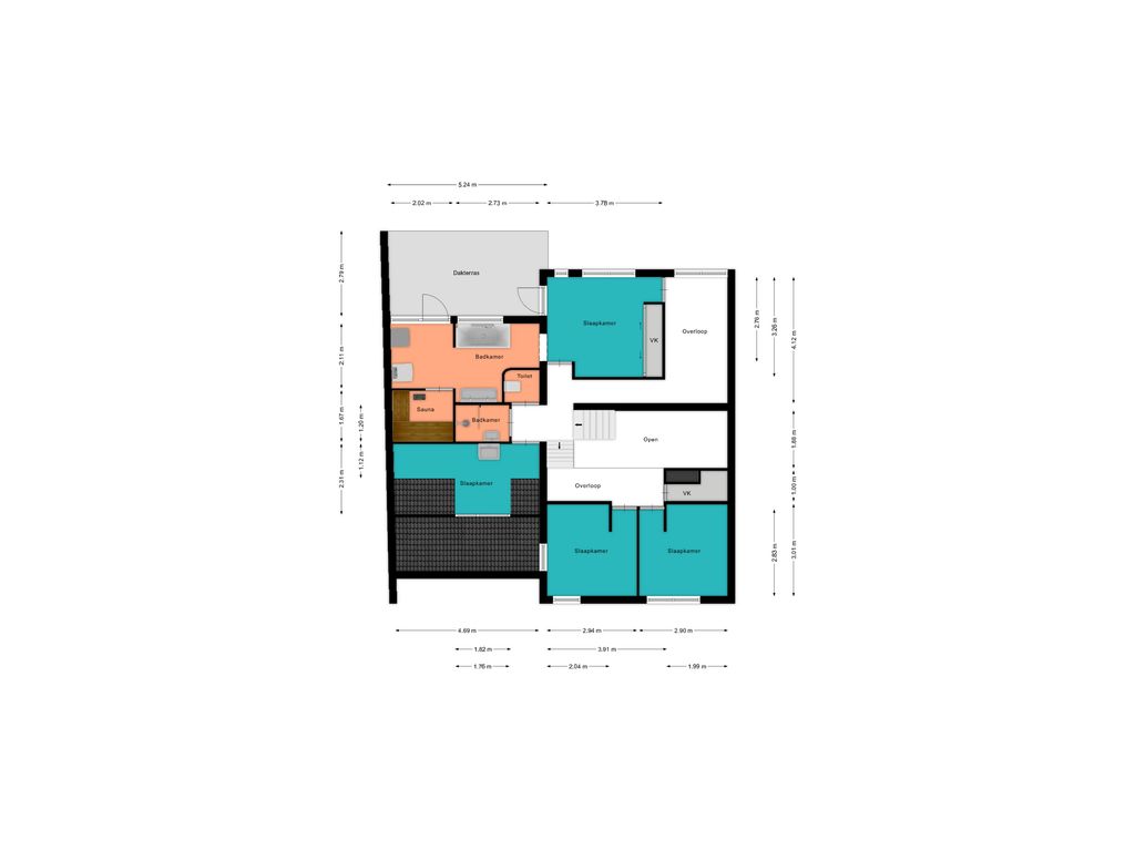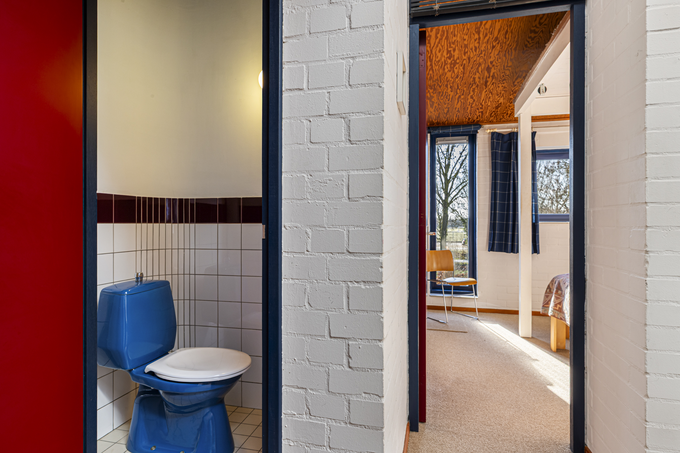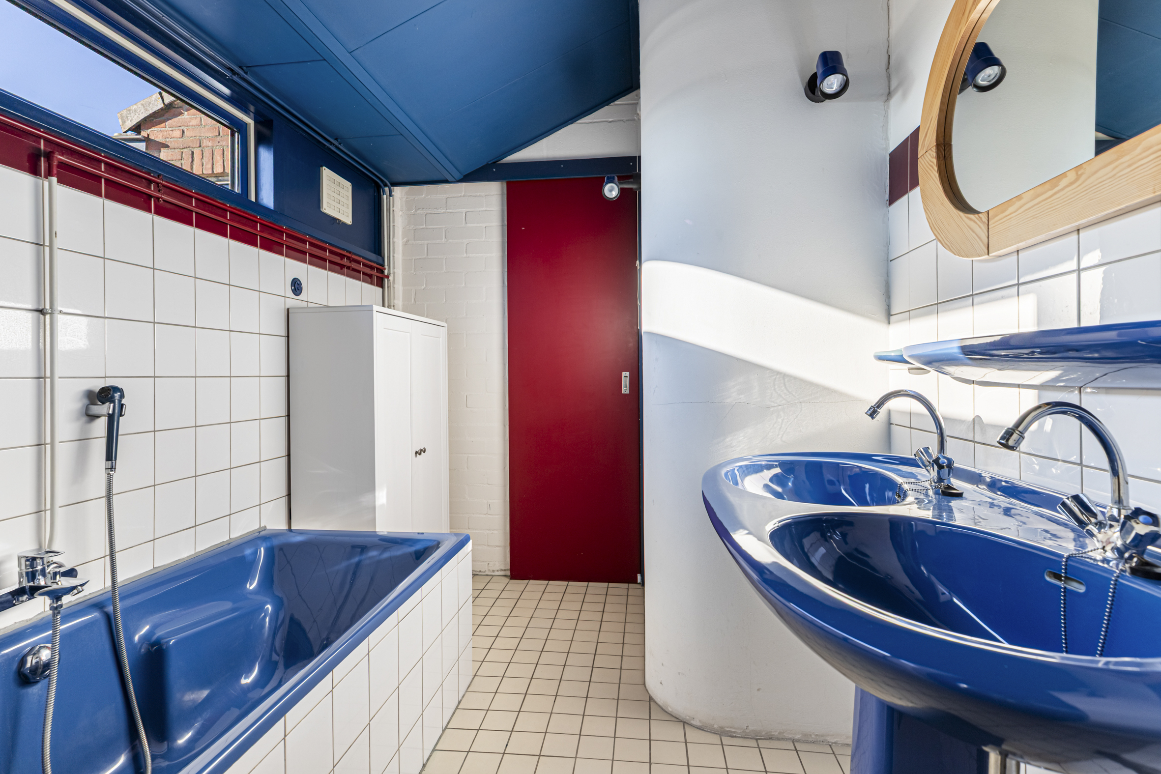 De master bedroom is aan de achterzijde gelegen en voorzien van een vaste schuifkastenwand. Vanuit deze kamer heb je toegang tot het dakterras en de tweede badkamer. De badkamer is uitgerust met een ligbad en een wastafelmeubel met dubbele kraan. Aangrenzend bevindt zich een ruimte met de zonneboiler, de warmtepomp, de wasmachineaansluitingen en een deur naar het royale dakterras. Vanuit hier is de sauna bereikbaar, een heerlijke en luxe toevoeging aan het wooncomfort.