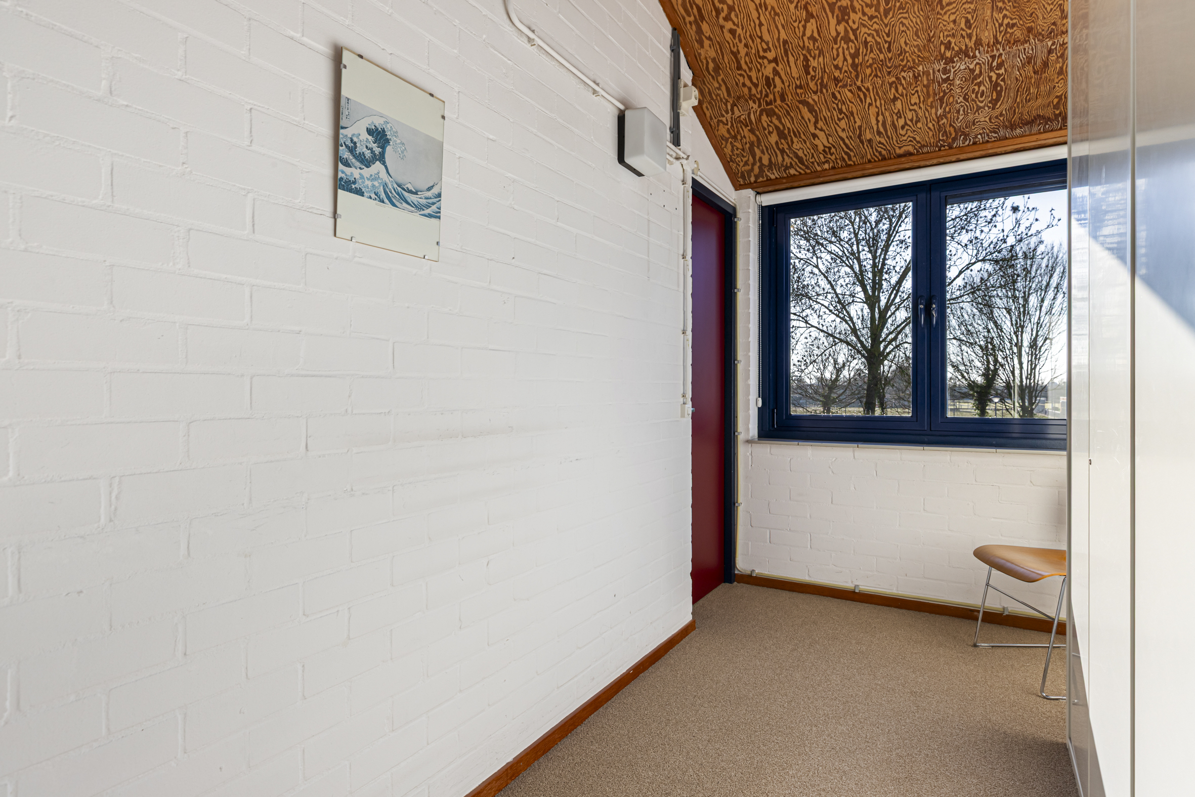 De auto parkeer je gemakkelijk op eigen terrein, voor de garage. Via de overdekte entree stap je de hal binnen, waar zich de meterkast bevindt en vanwaar je toegang hebt tot zowel de garage als de woonkamer.