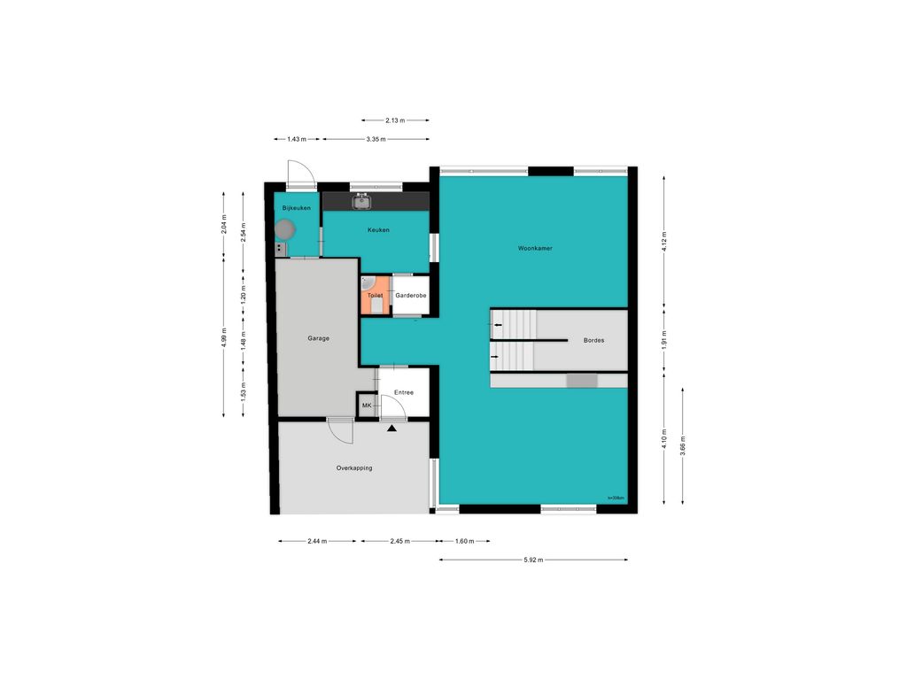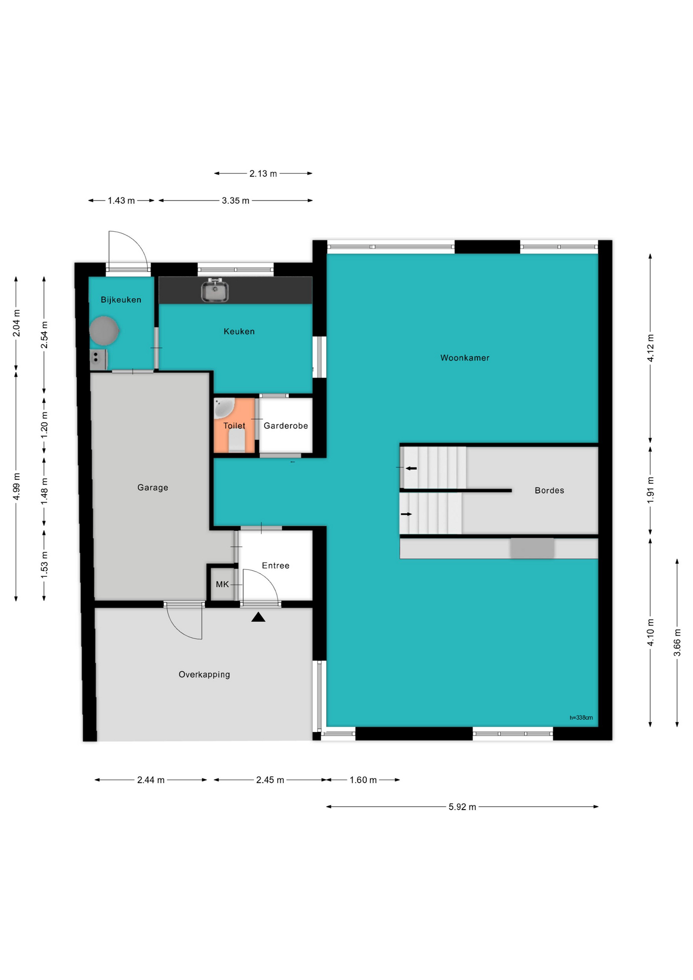 Voor de afmetingen en indeling raadpleeg de gedetailleerde plattegrond.