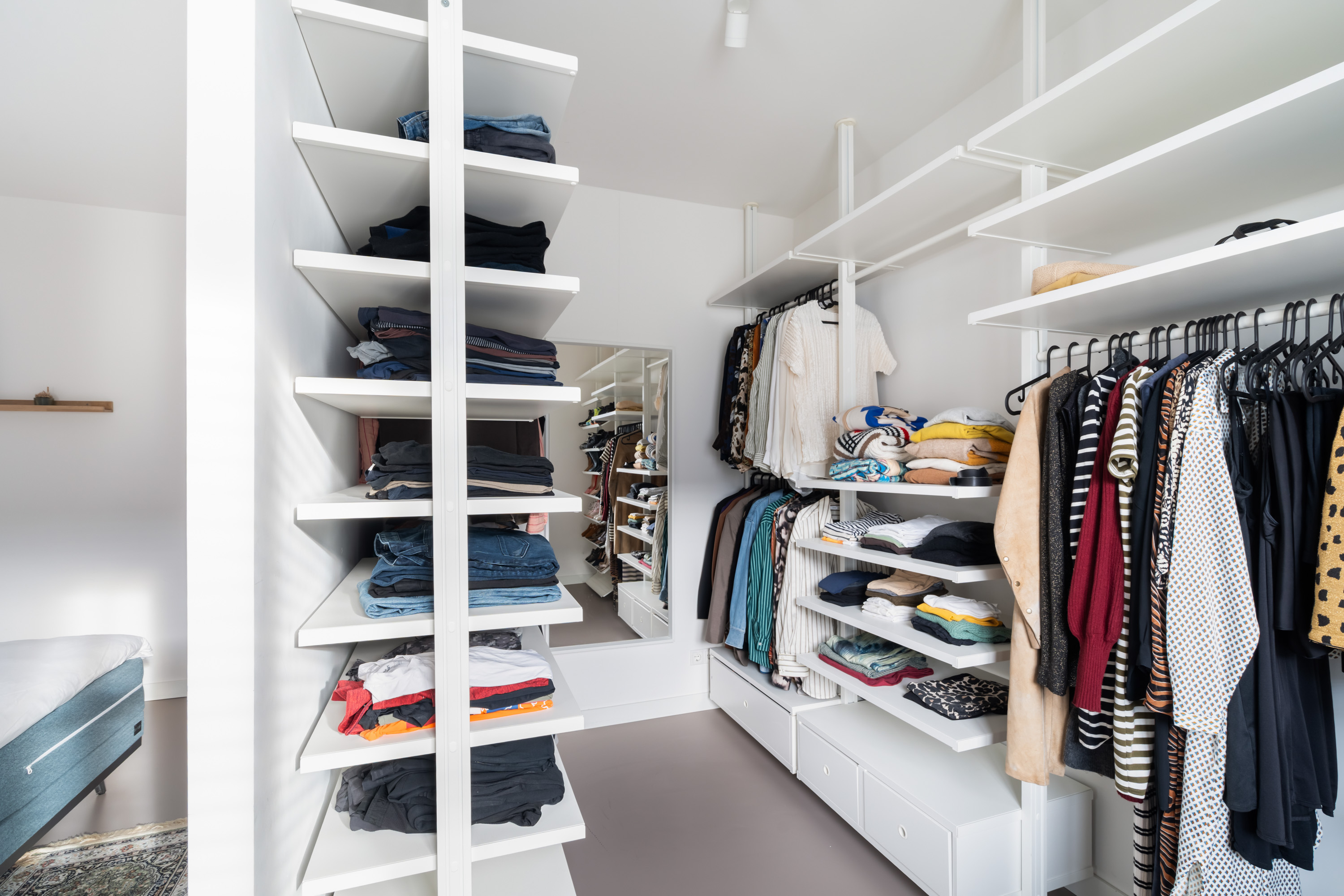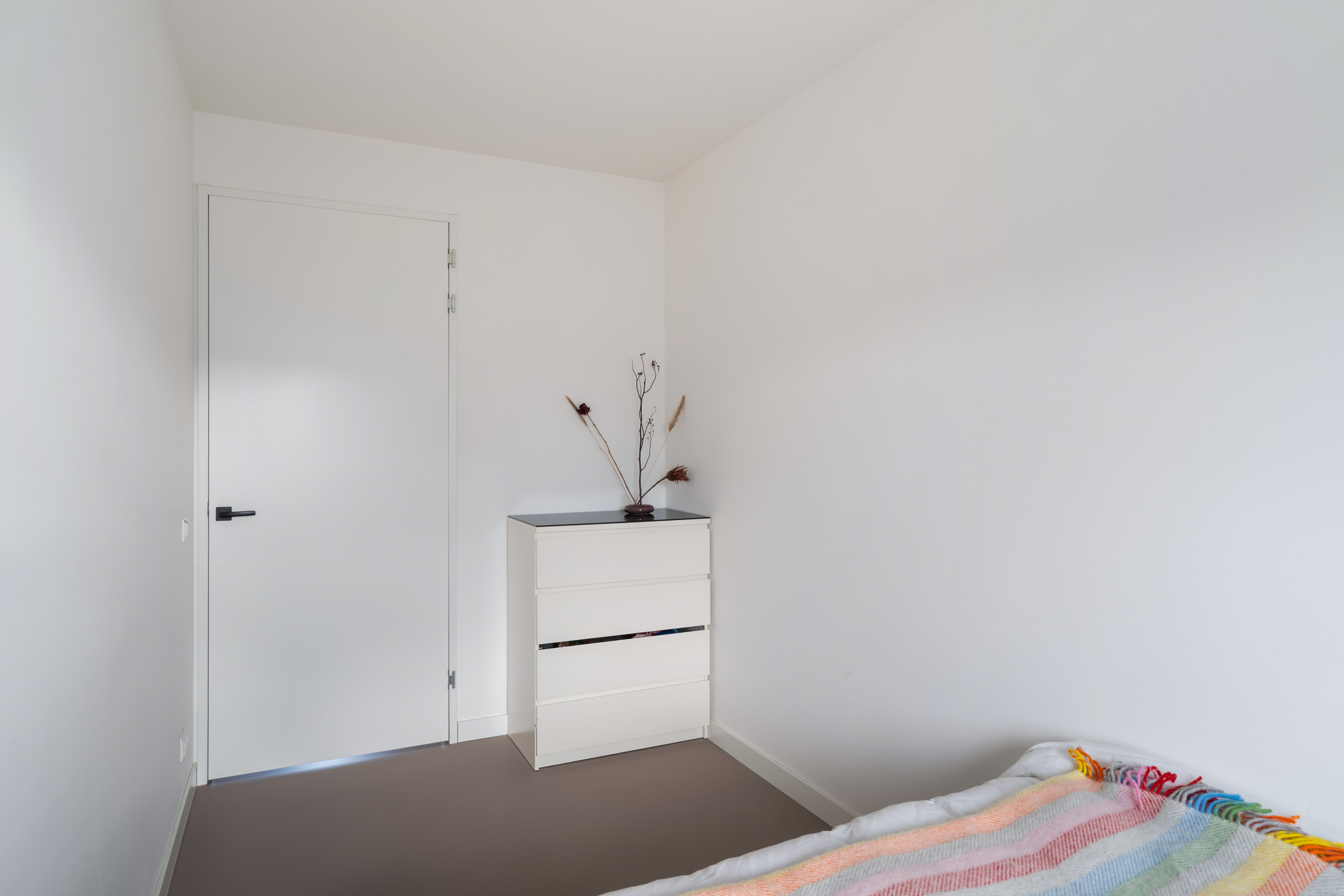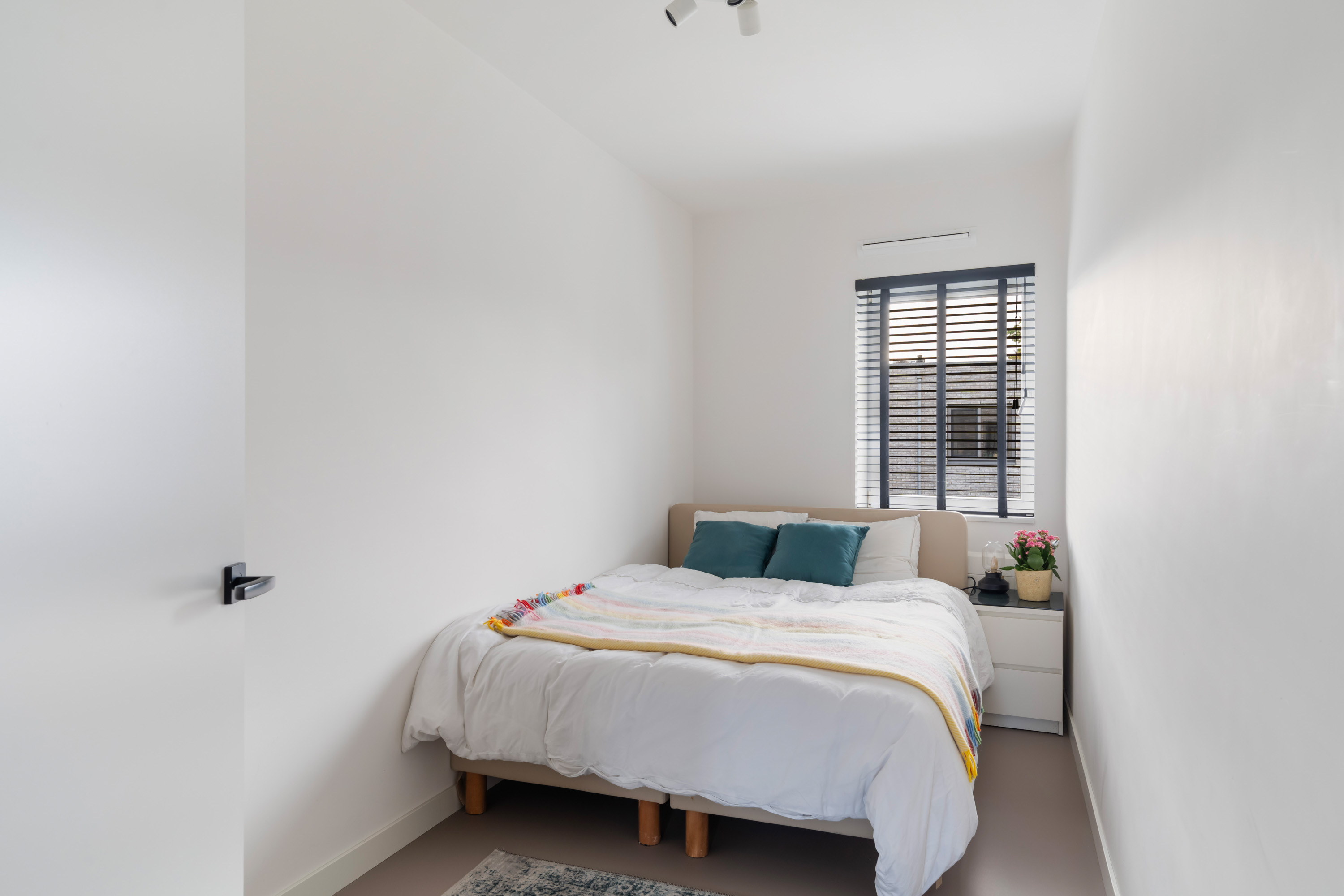 Via de overloop op de tweede verdieping bereik je nog eens drie slaapkamers en een praktische bergruimte. De slaapkamer aan de voorzijde is eveneens woningbreed. In de centraal gelegen bergruimte bevinden zich de aansluitingen voor de wasapparatuur, evenals de cv-ketel en de unit voor de mechanische ventilatie.