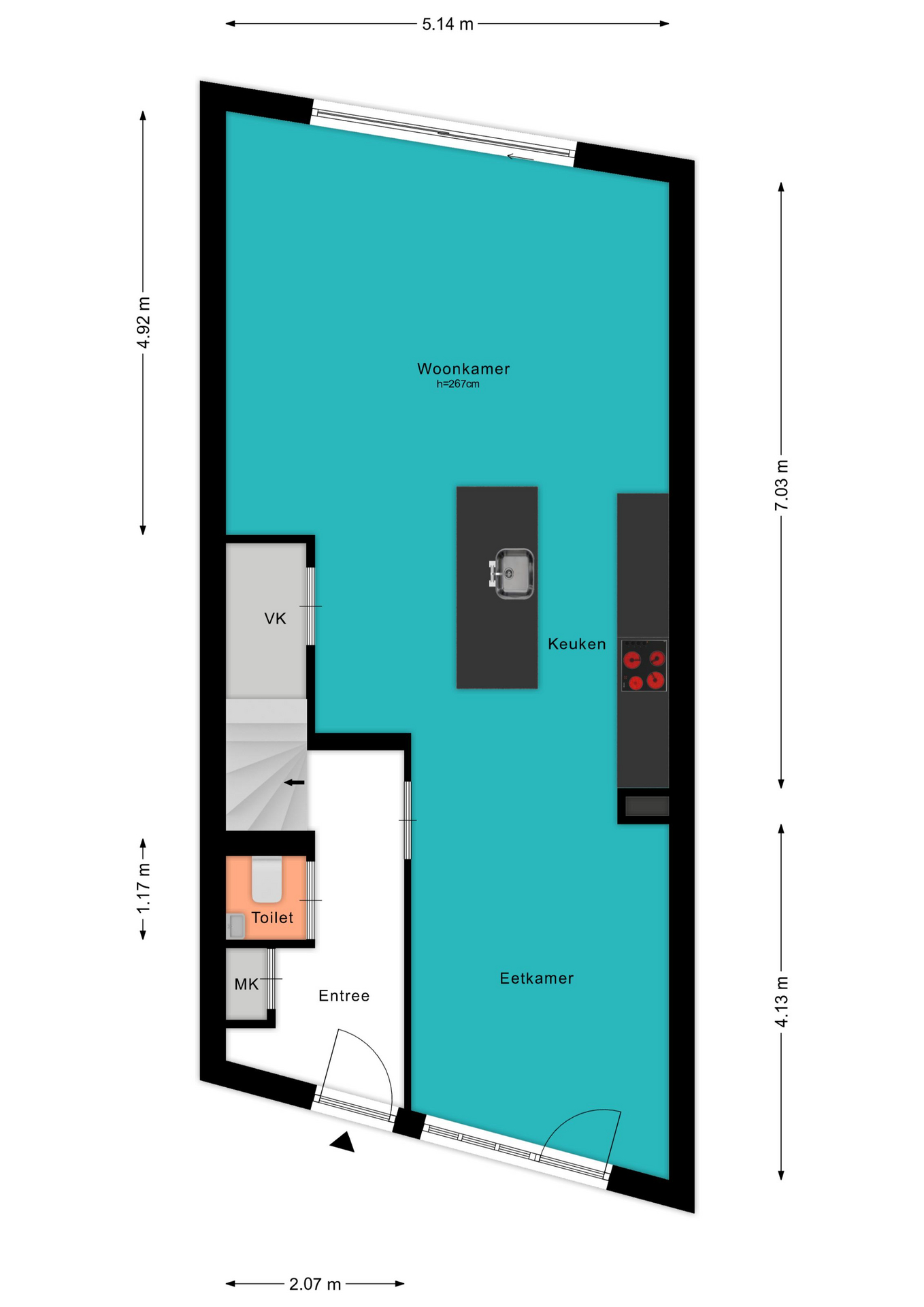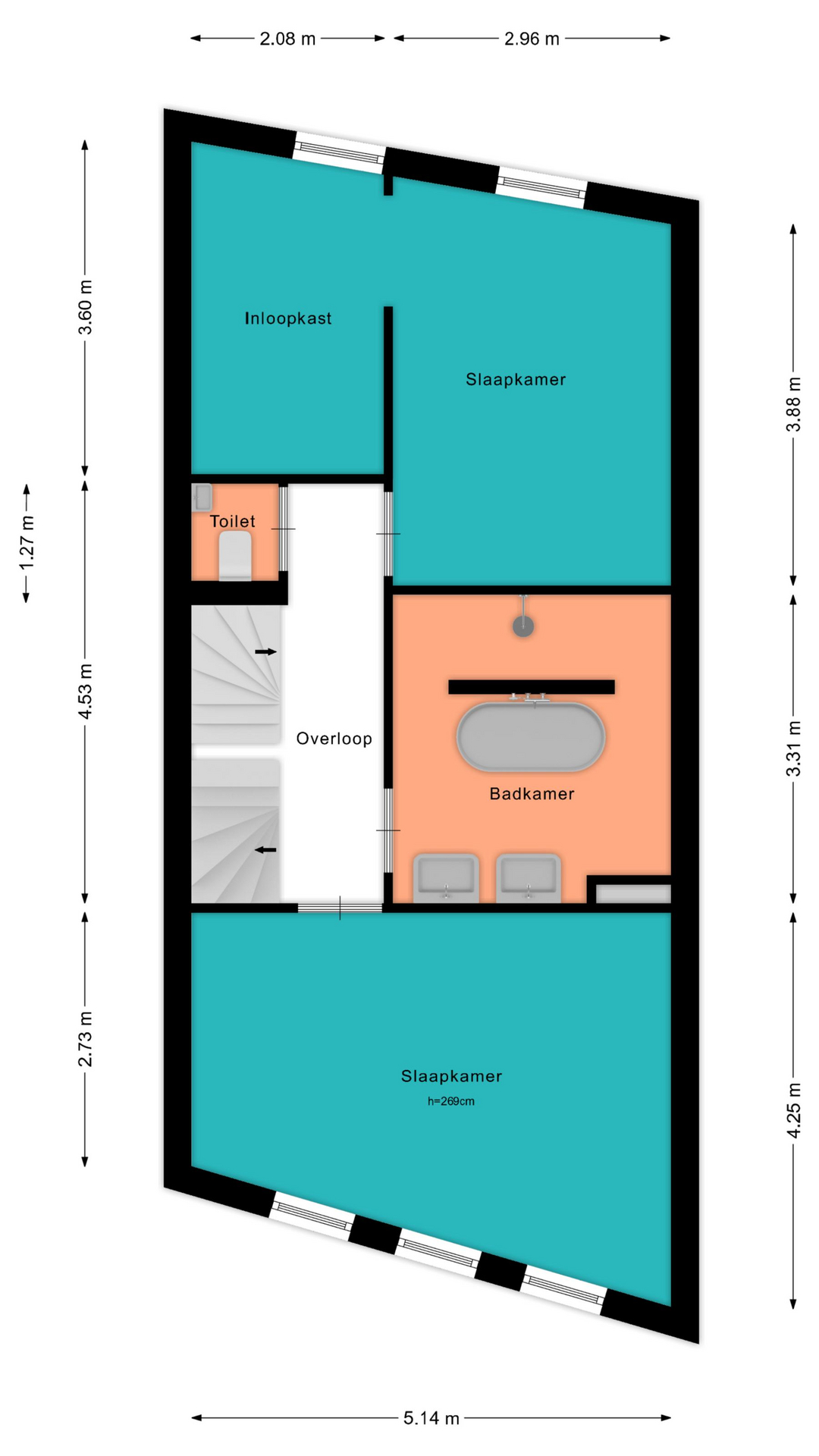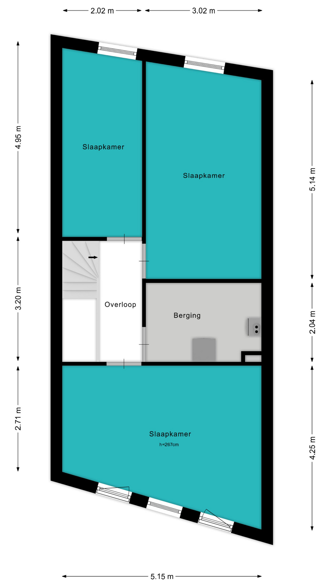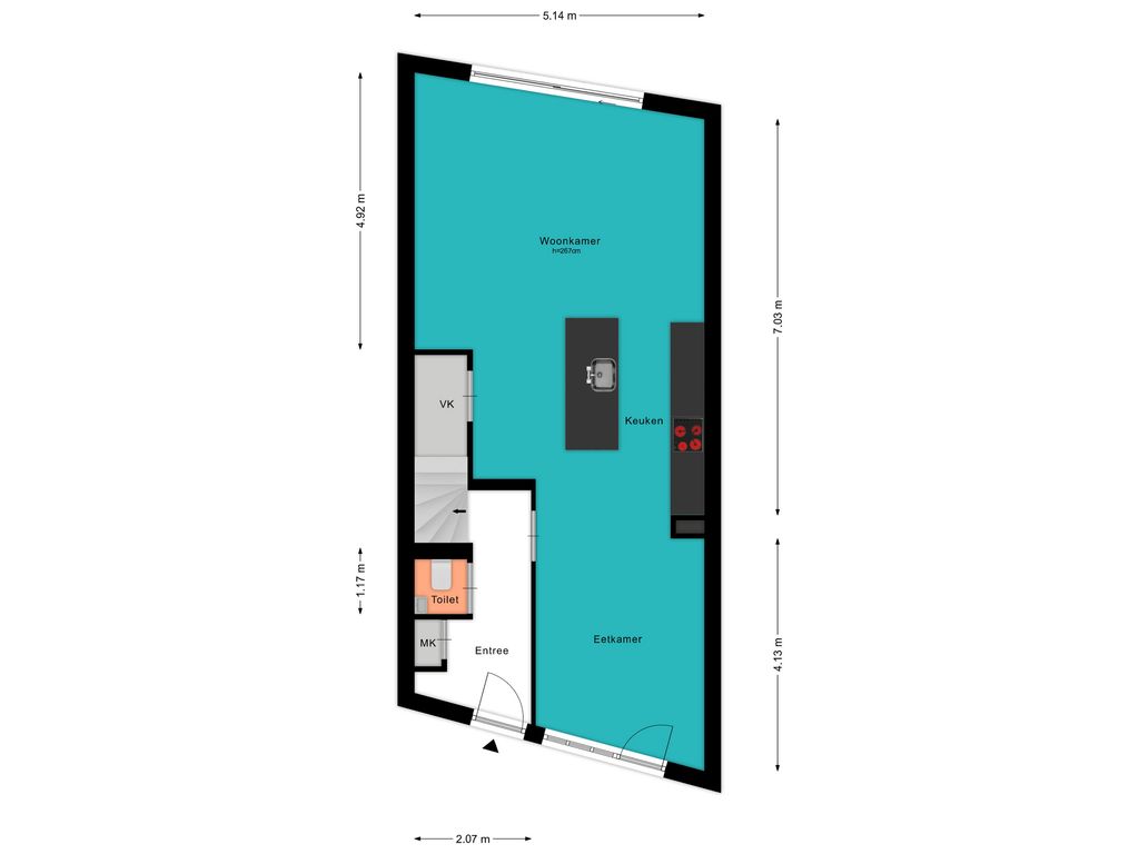 Voor de afmetingen en indeling raadpleeg de gedetailleerde plattegrond.