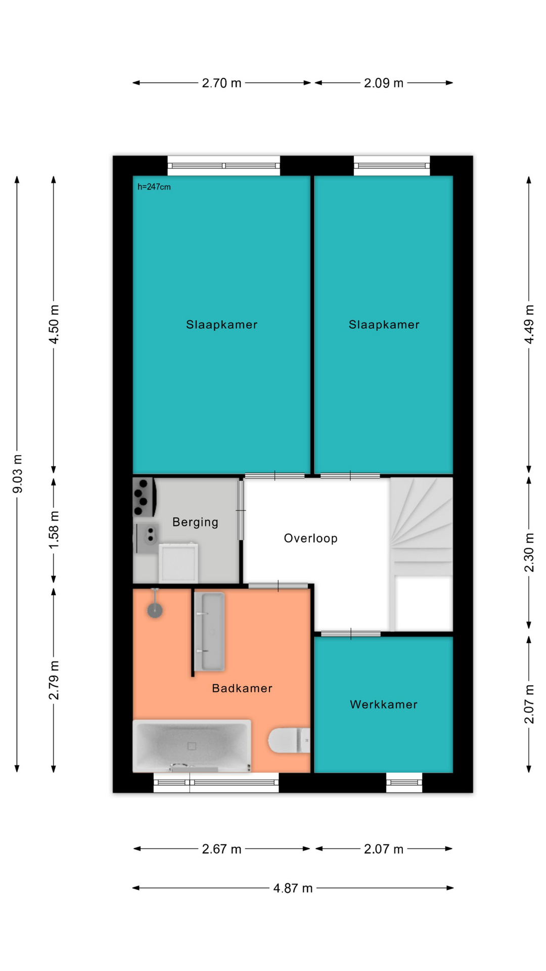- Berging: ca 7 m²