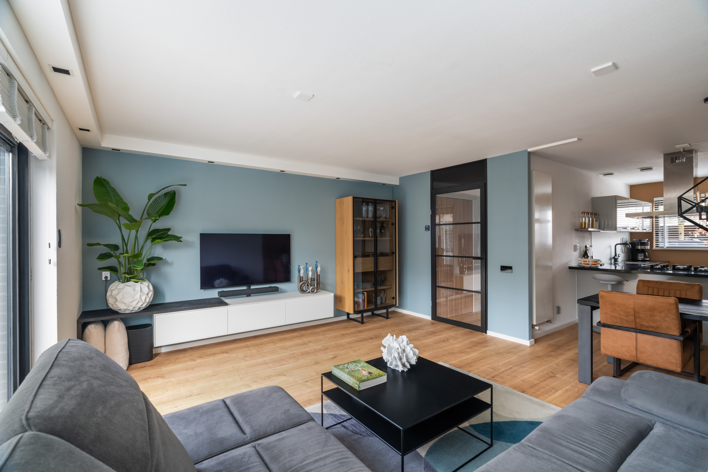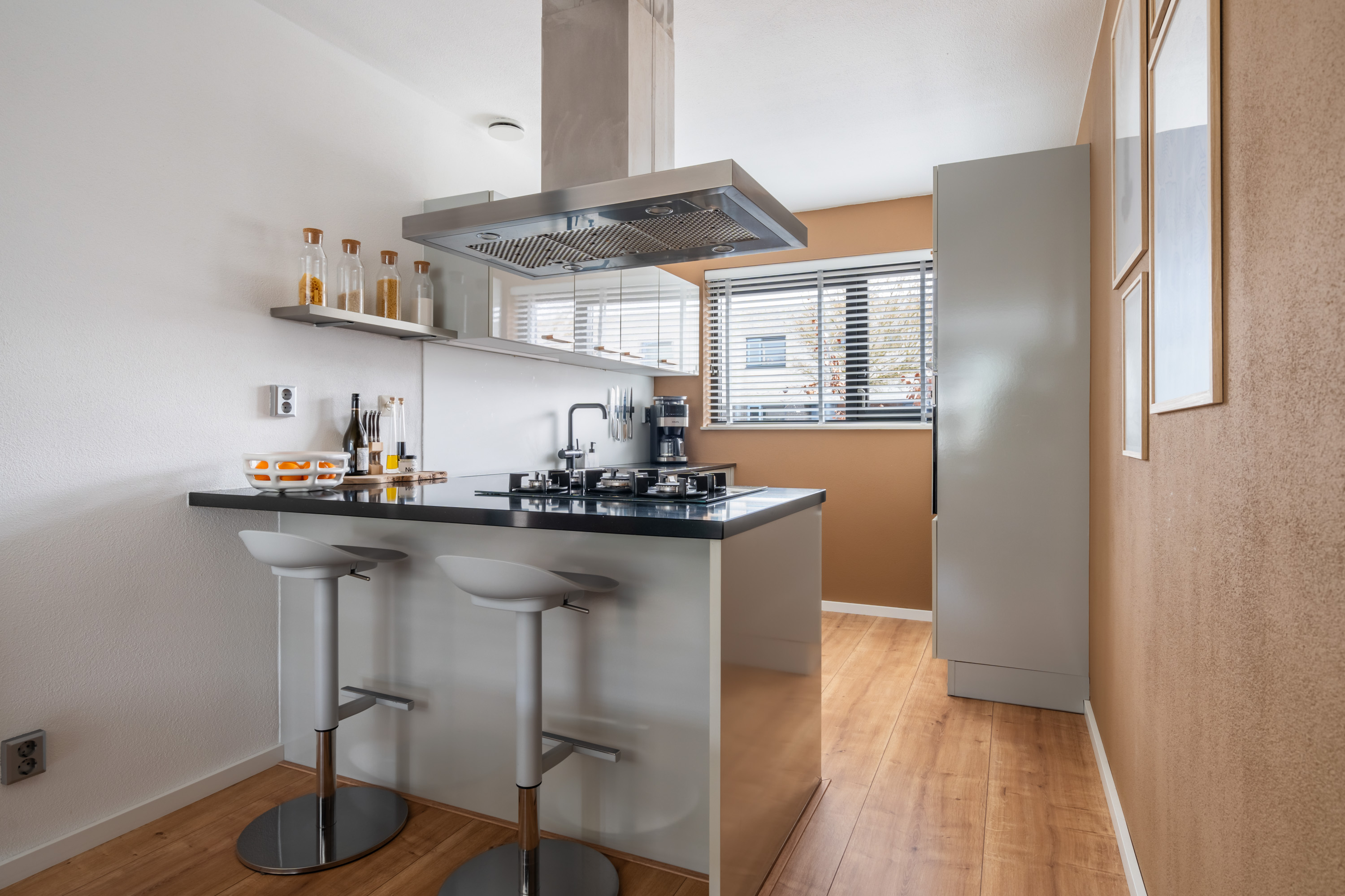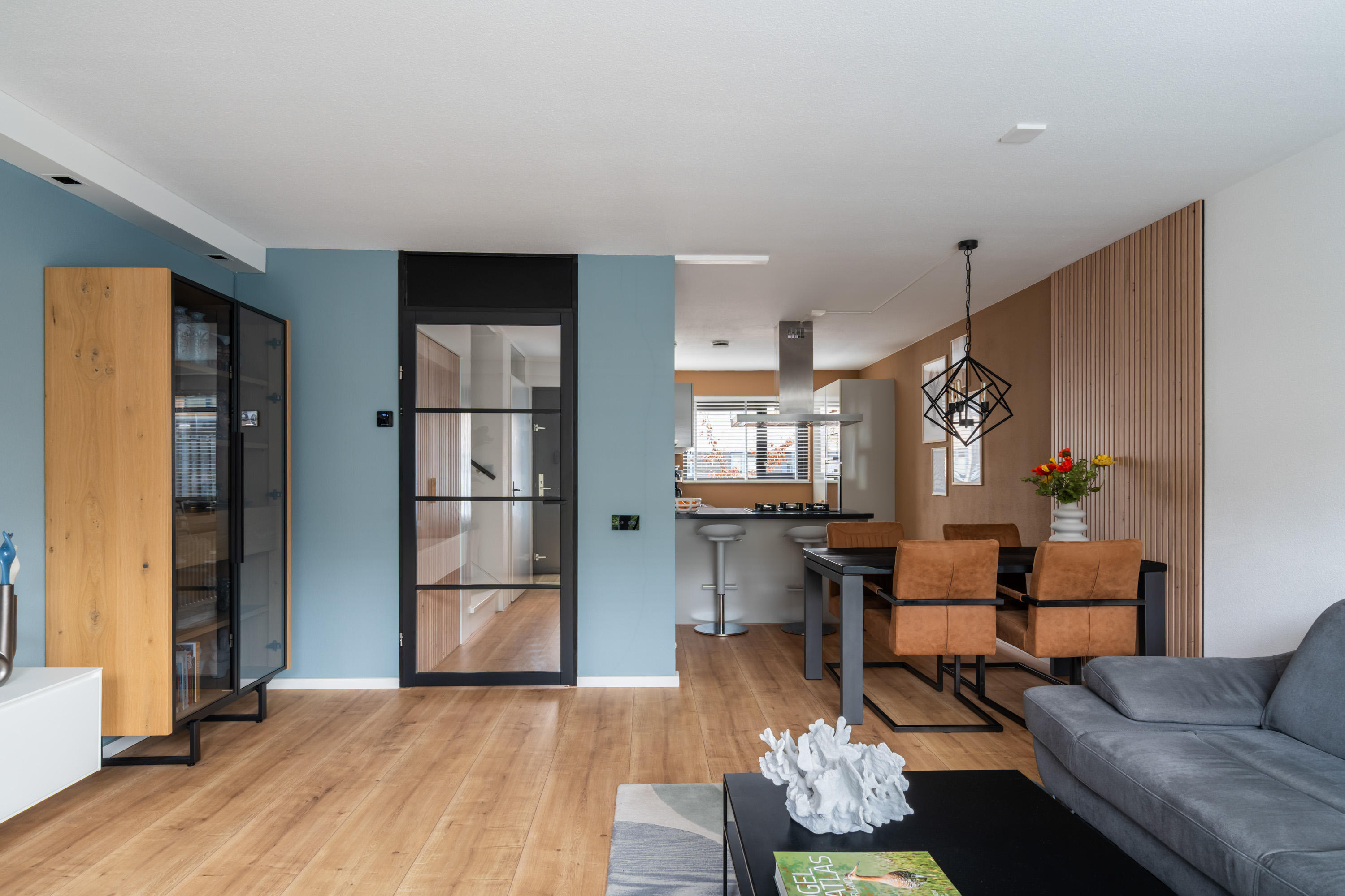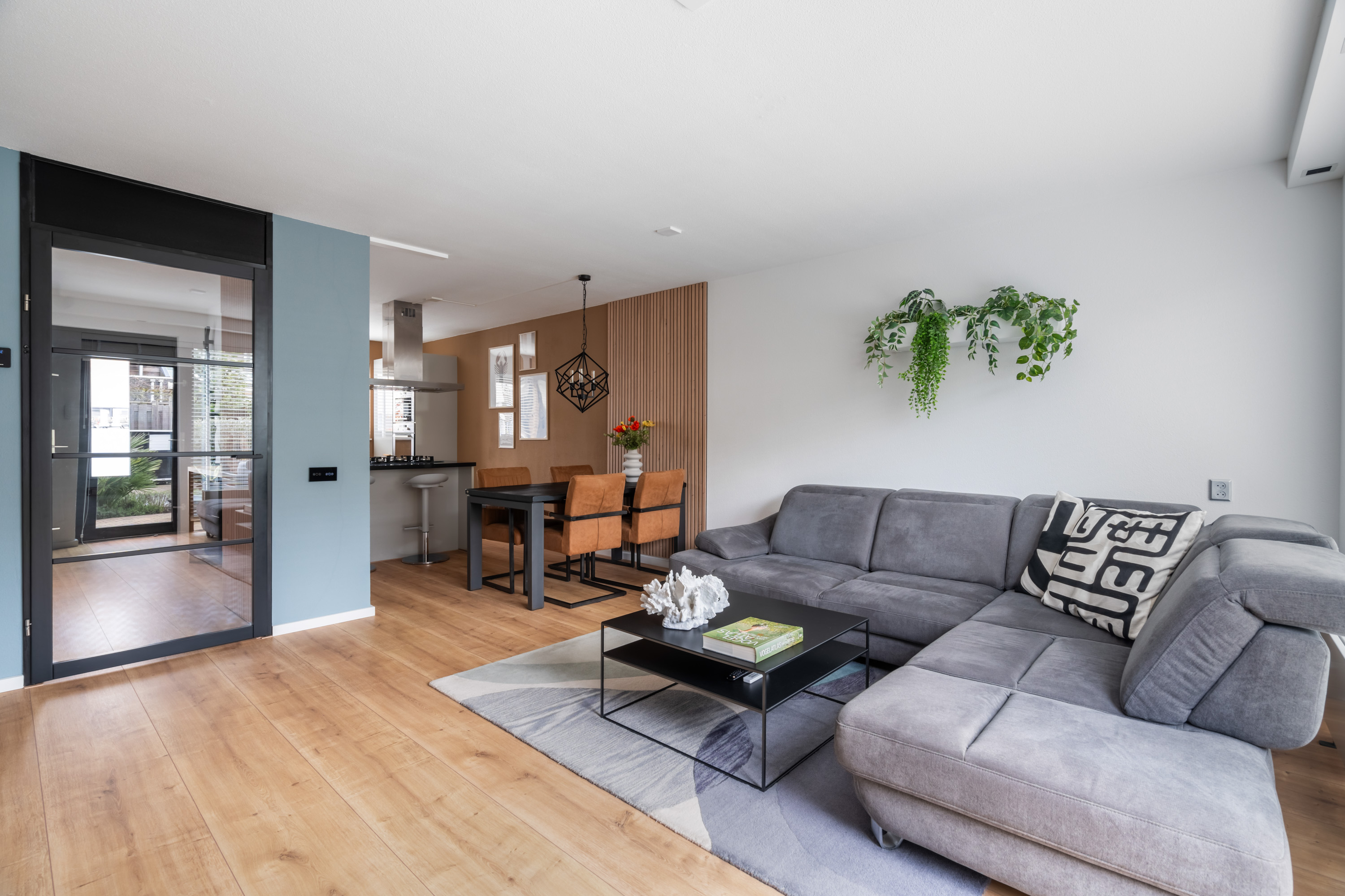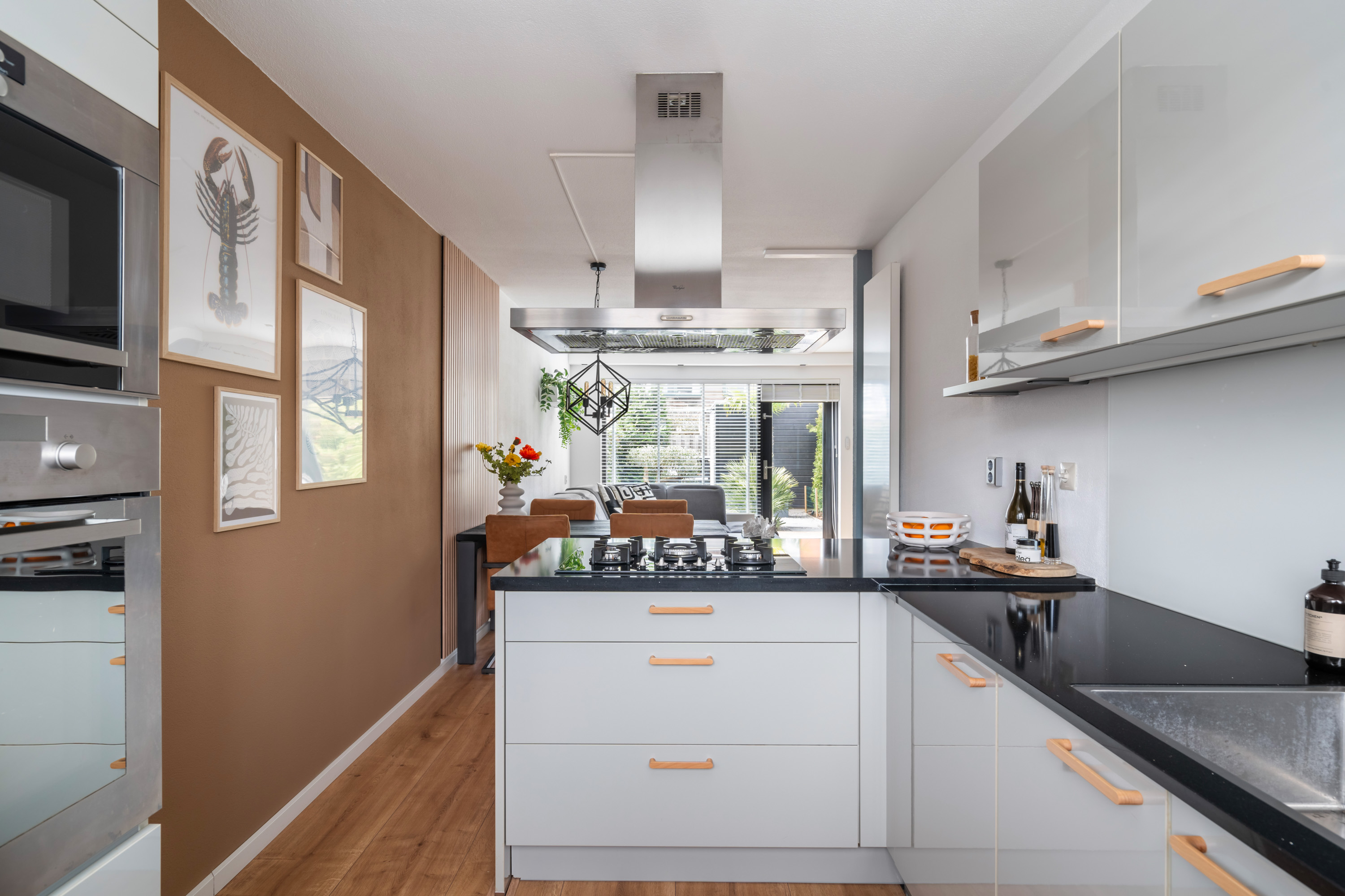 De nette voortuin leidt je via de overdekte voordeur naar de hal. Hier heb je toegang tot het toilet, de meterkast, de trapopgang met trapkast en de industriële deur naar de woonkamer. De tuingerichte woonkamer heeft een grote raampartij met loopdeur. De open keuken is aan de voorzijde gelegen, in een L-vorm opgesteld waarbij je kookt in de richting van de woonkamer. Dit is de ideale plek voor het samenzijn met vrienden en familie! De volgende inbouwapparatuur is aanwezig: