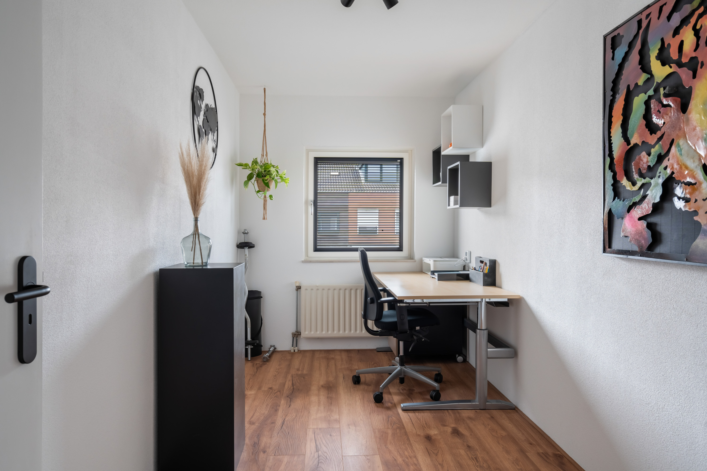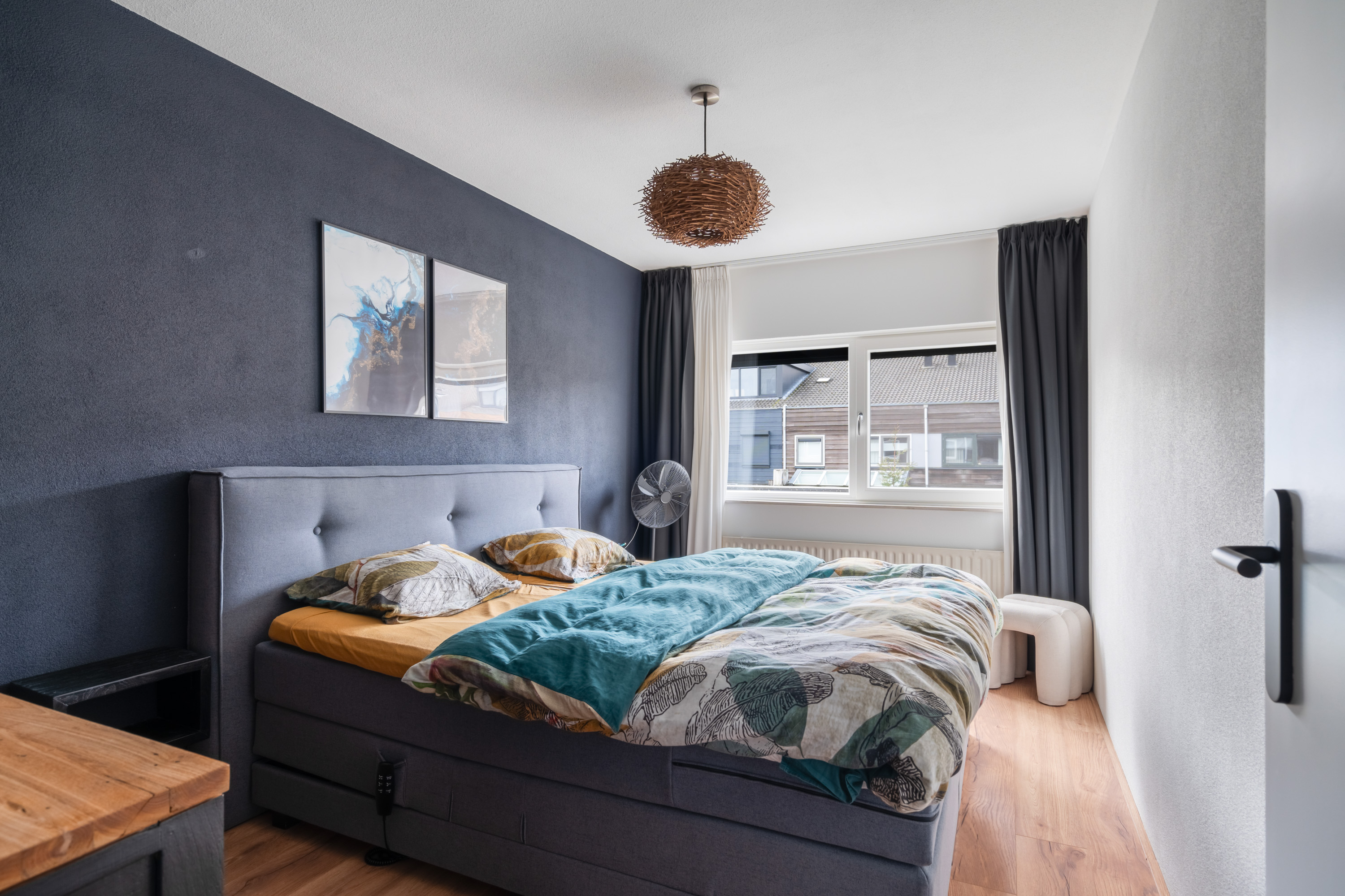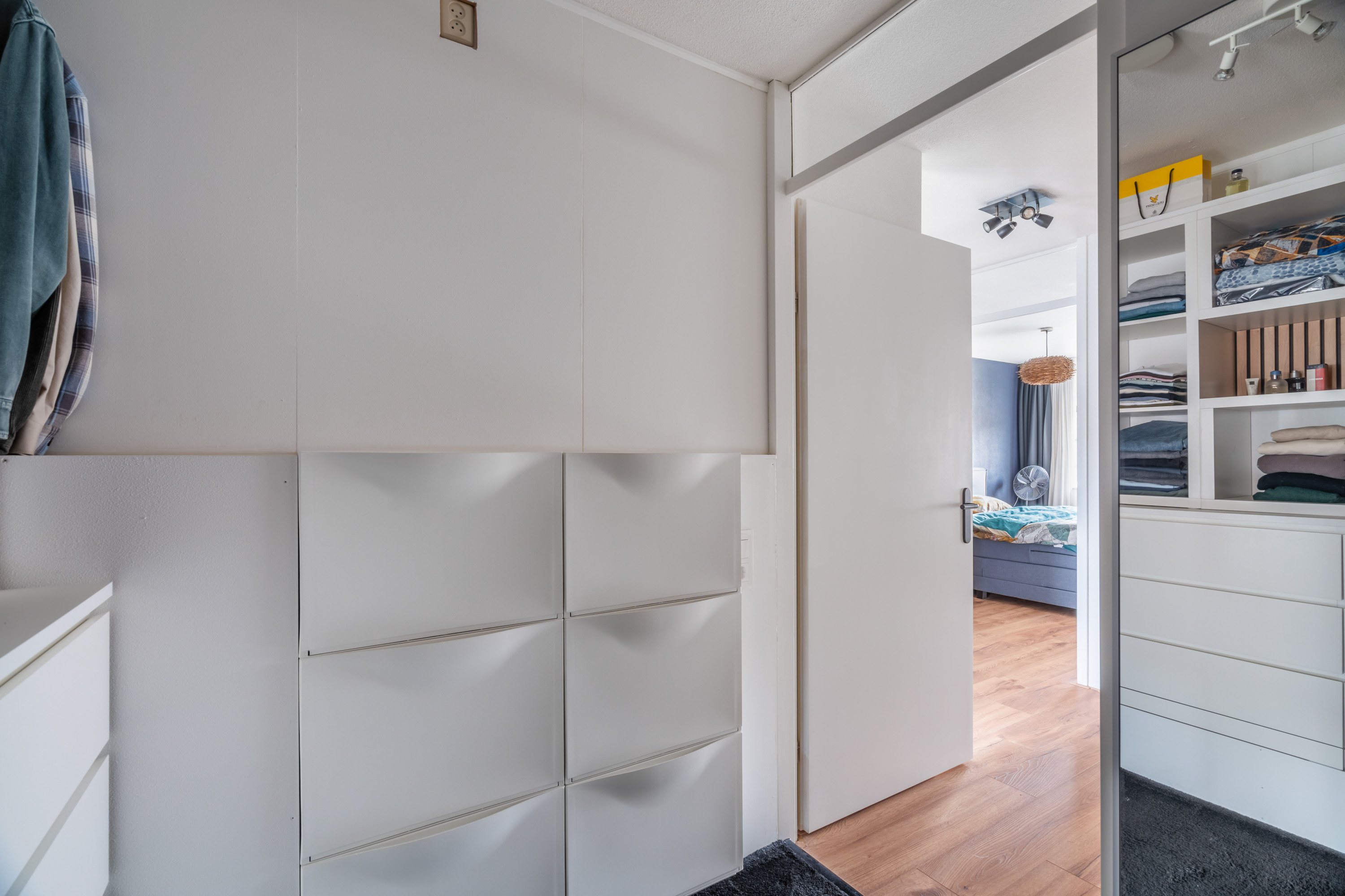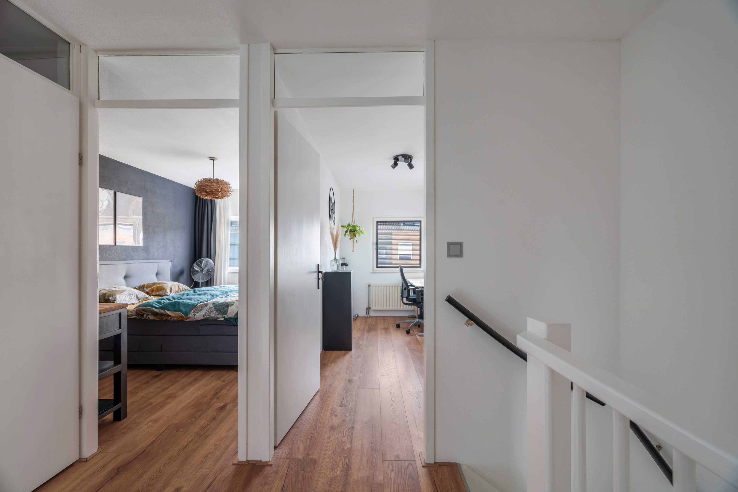 De naastgelegen kamer is momenteel in gebruik als inloopkast, maar dient ook ideaal als werk- of hobbykamer. De twee ruime slaapkamers liggen aan de achterzijde en hebben beide een leuk uitzicht op de tuin.