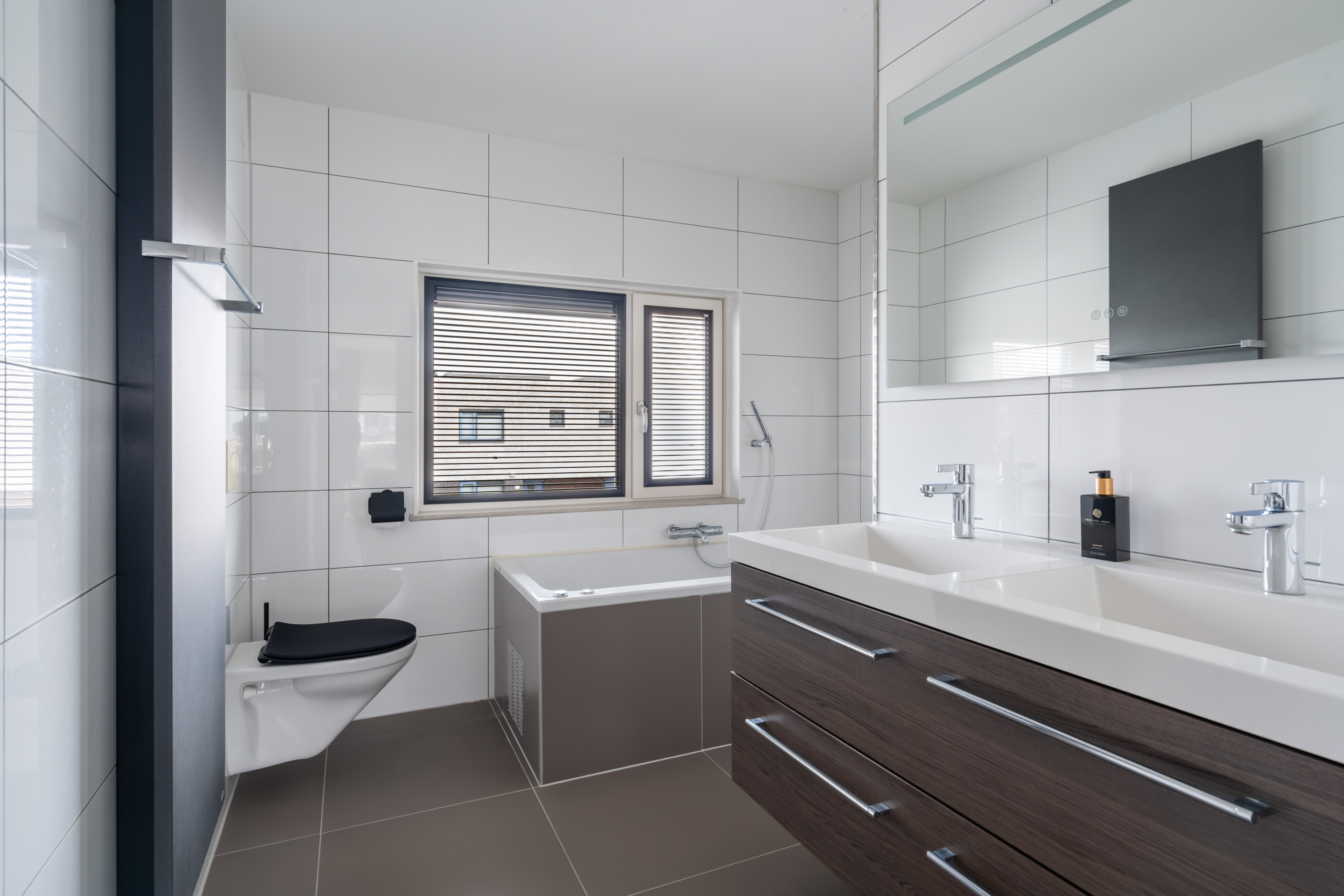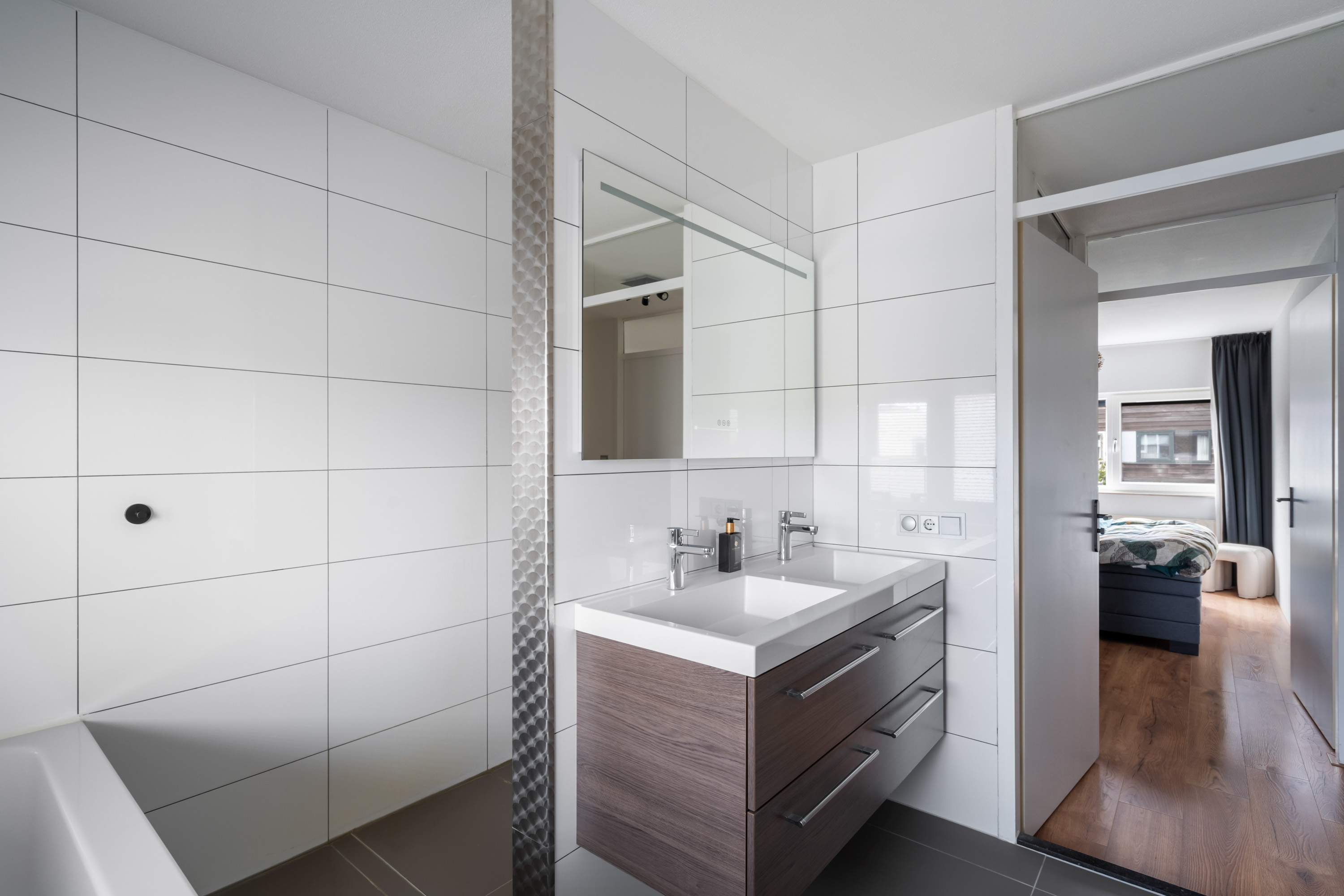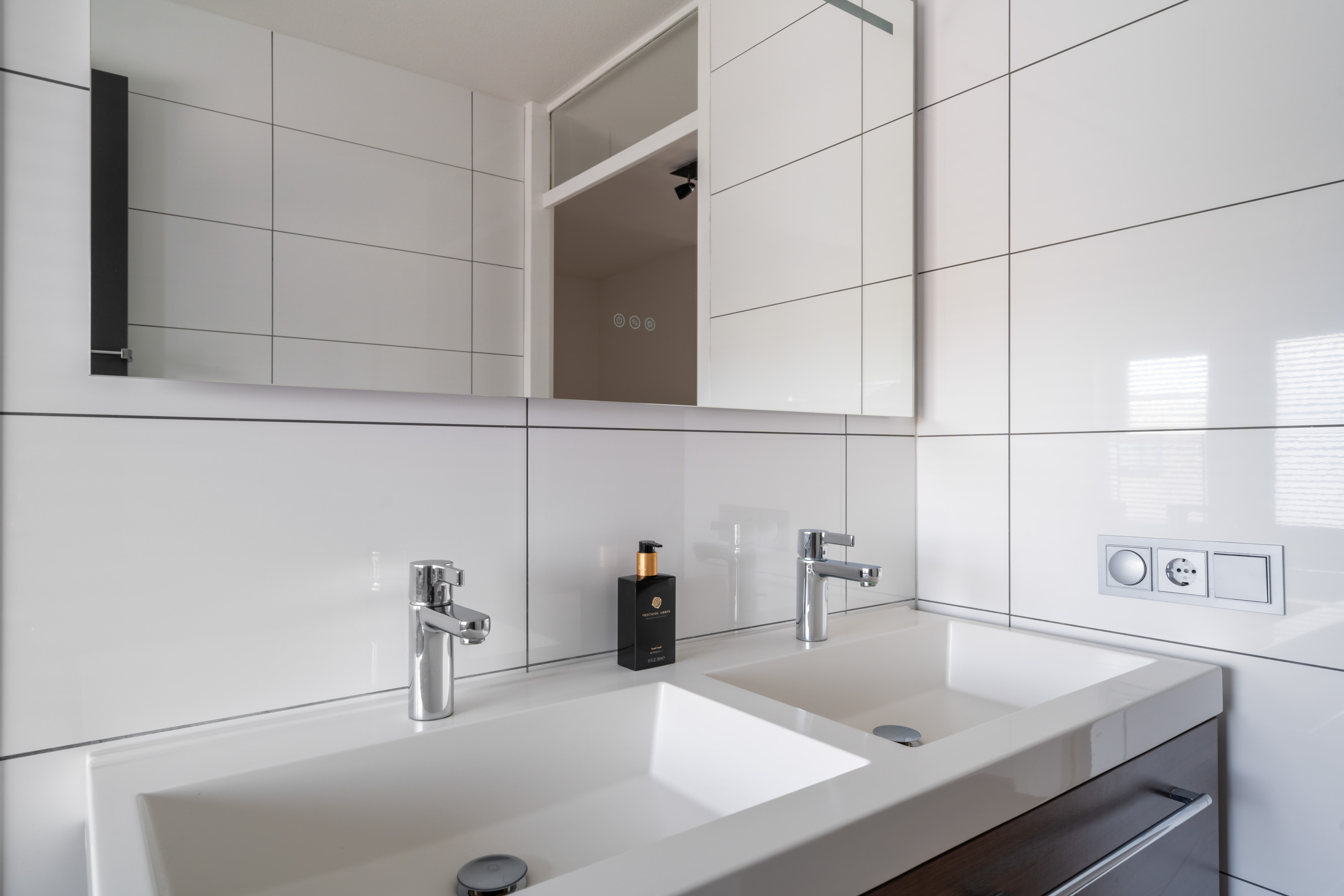 - Dubbele wastafelmeubel met verwarmde spiegel