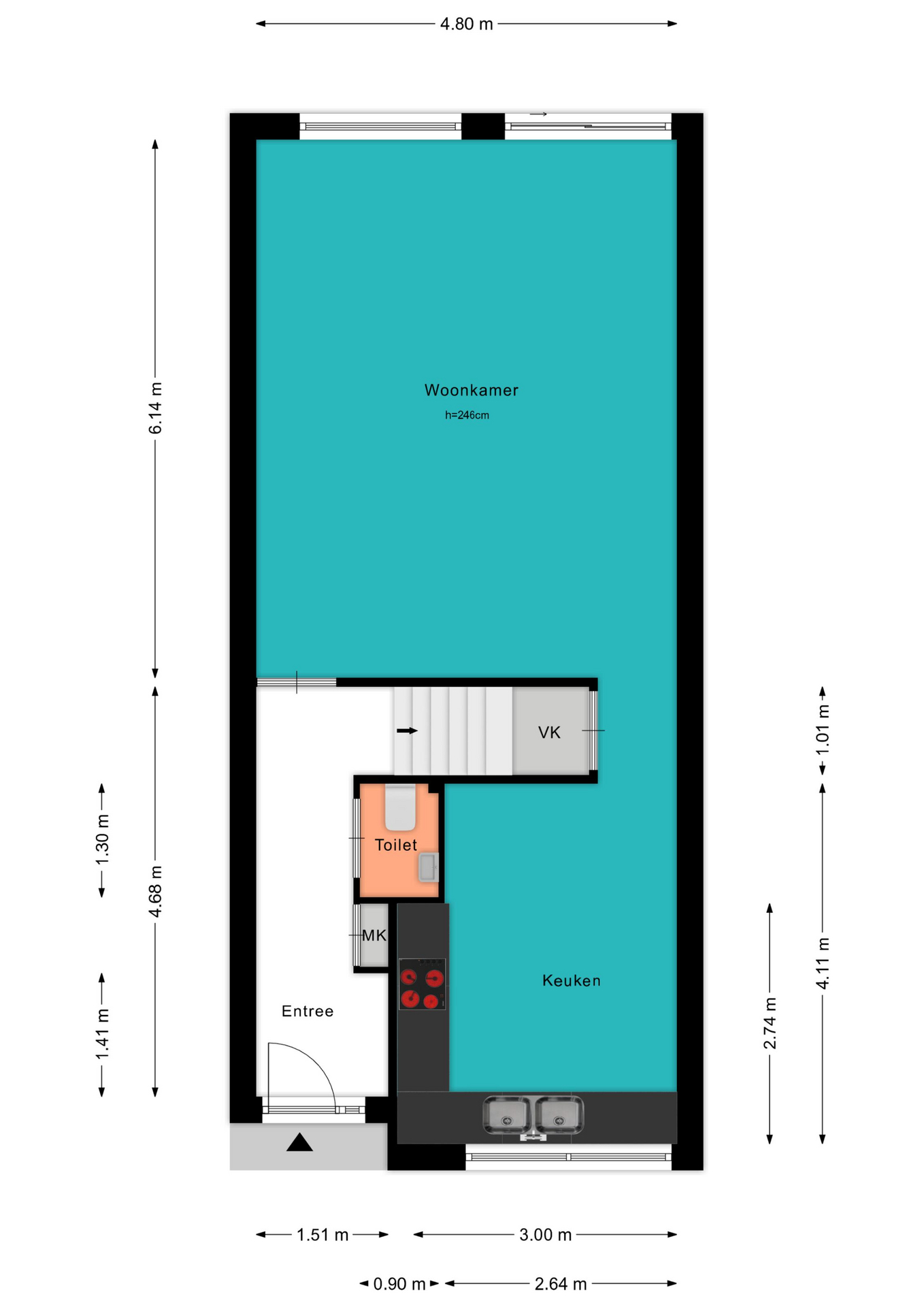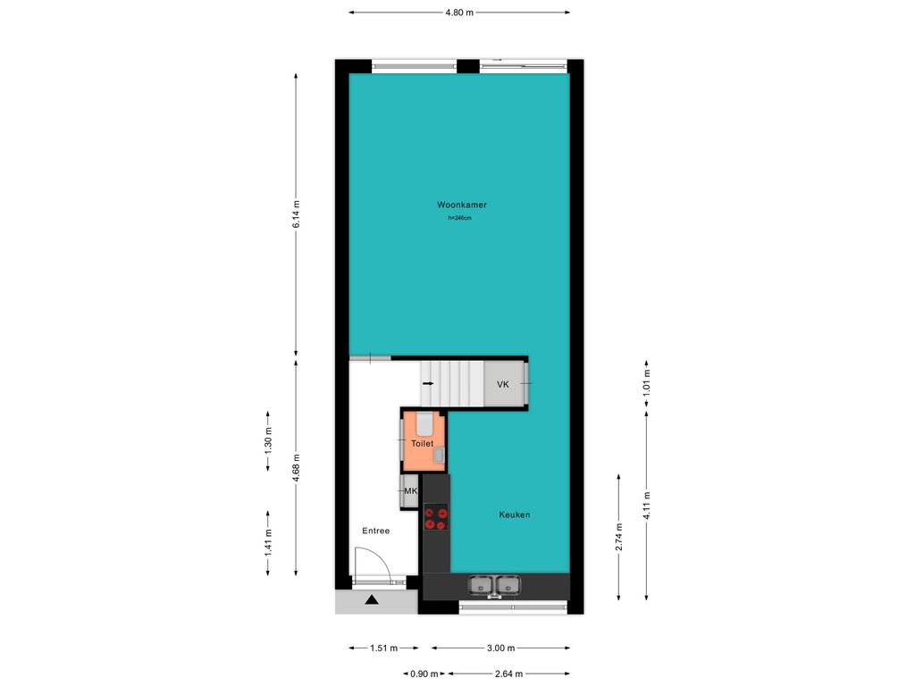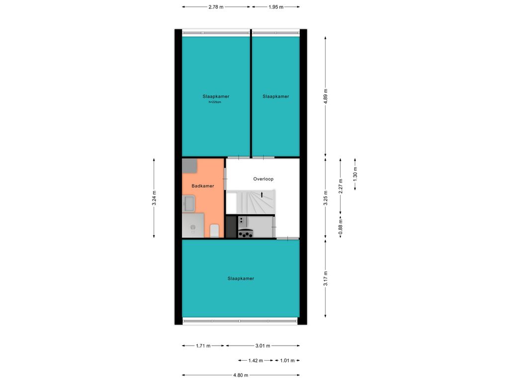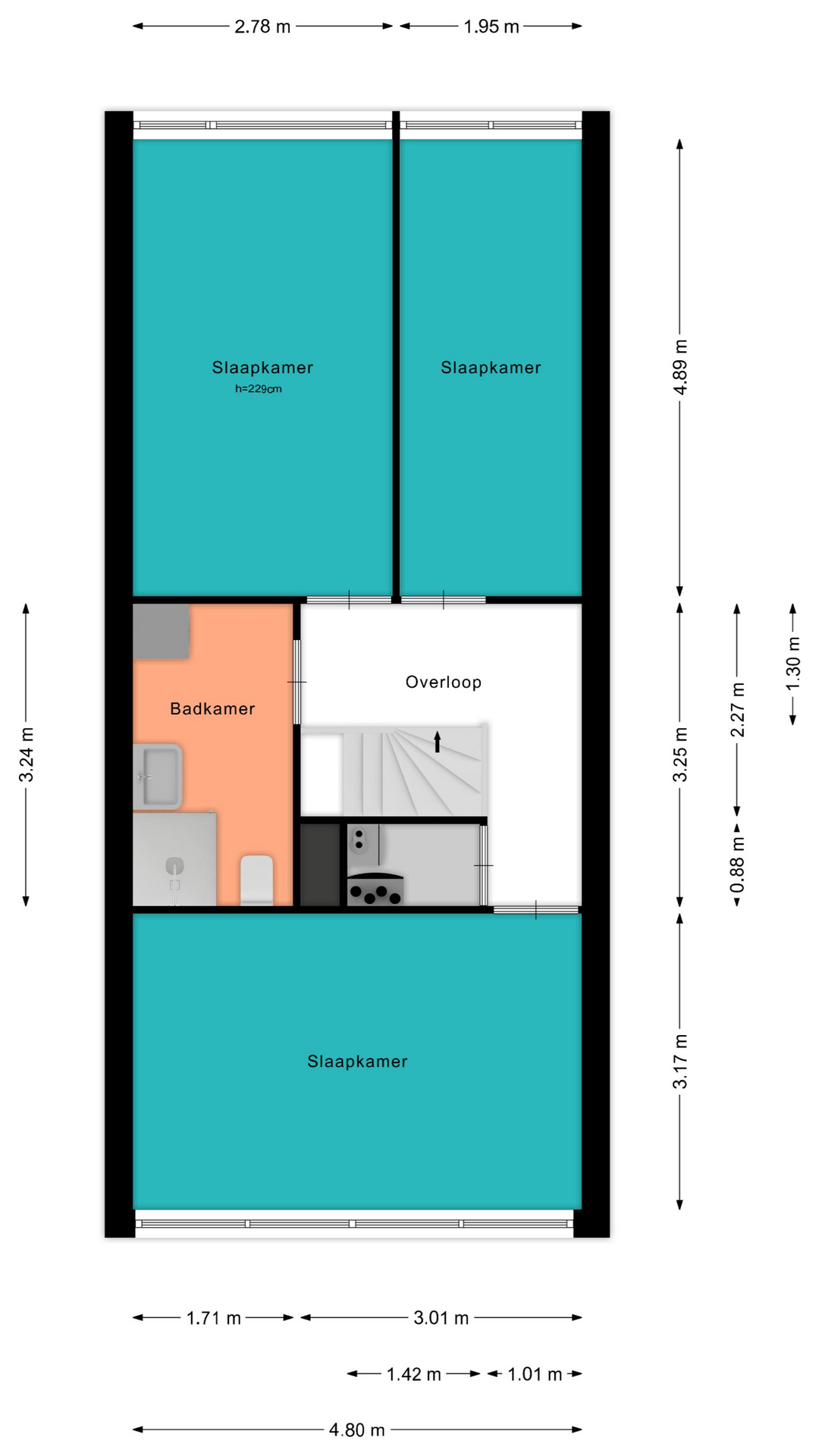 Voor de afmetingen en indeling raadpleeg de gedetailleerde plattegrond.