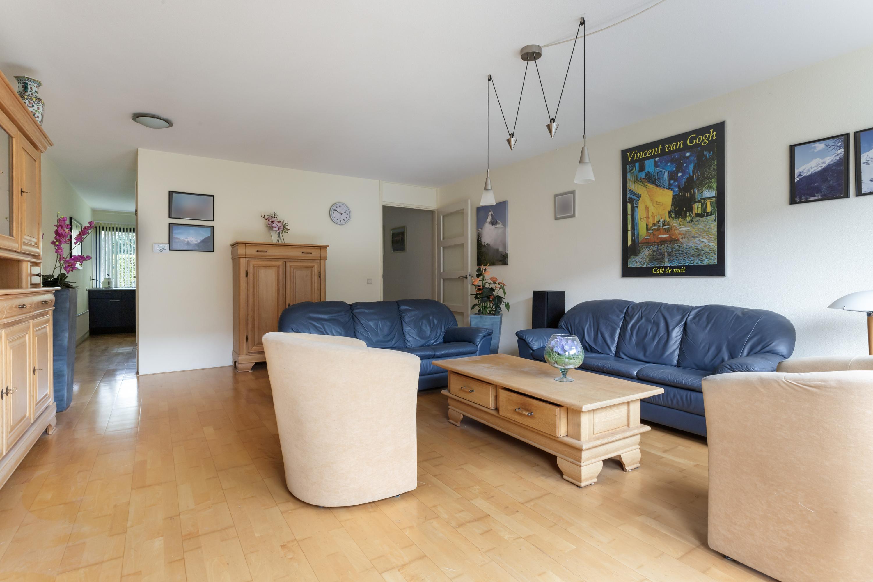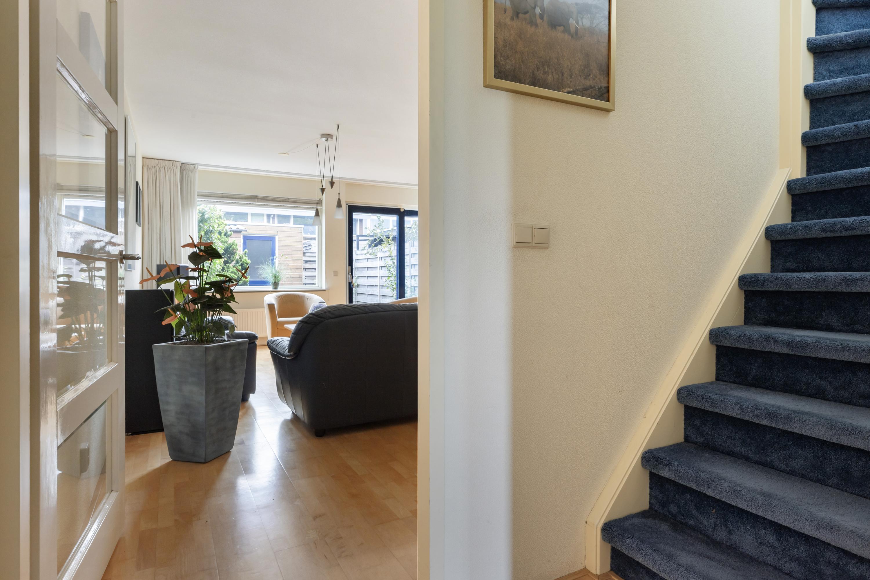 Nabij de voordeur is een parkeerhaven voor meerdere auto’s. Je bereikt de voordeur via de wandelpromenade en de voortuin. In de hal vind je de meterkast, de toiletruimte, de trap naar boven en de deur naar de woonkamer. De tuingerichte woonkamer is uitgebouwd en voorzien van een schuifpui en grote ramen.
