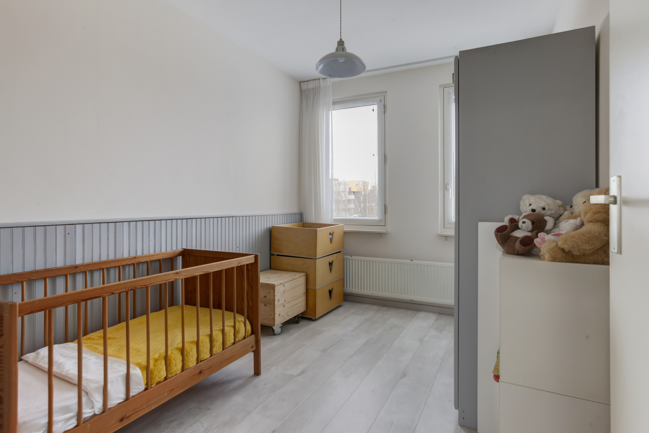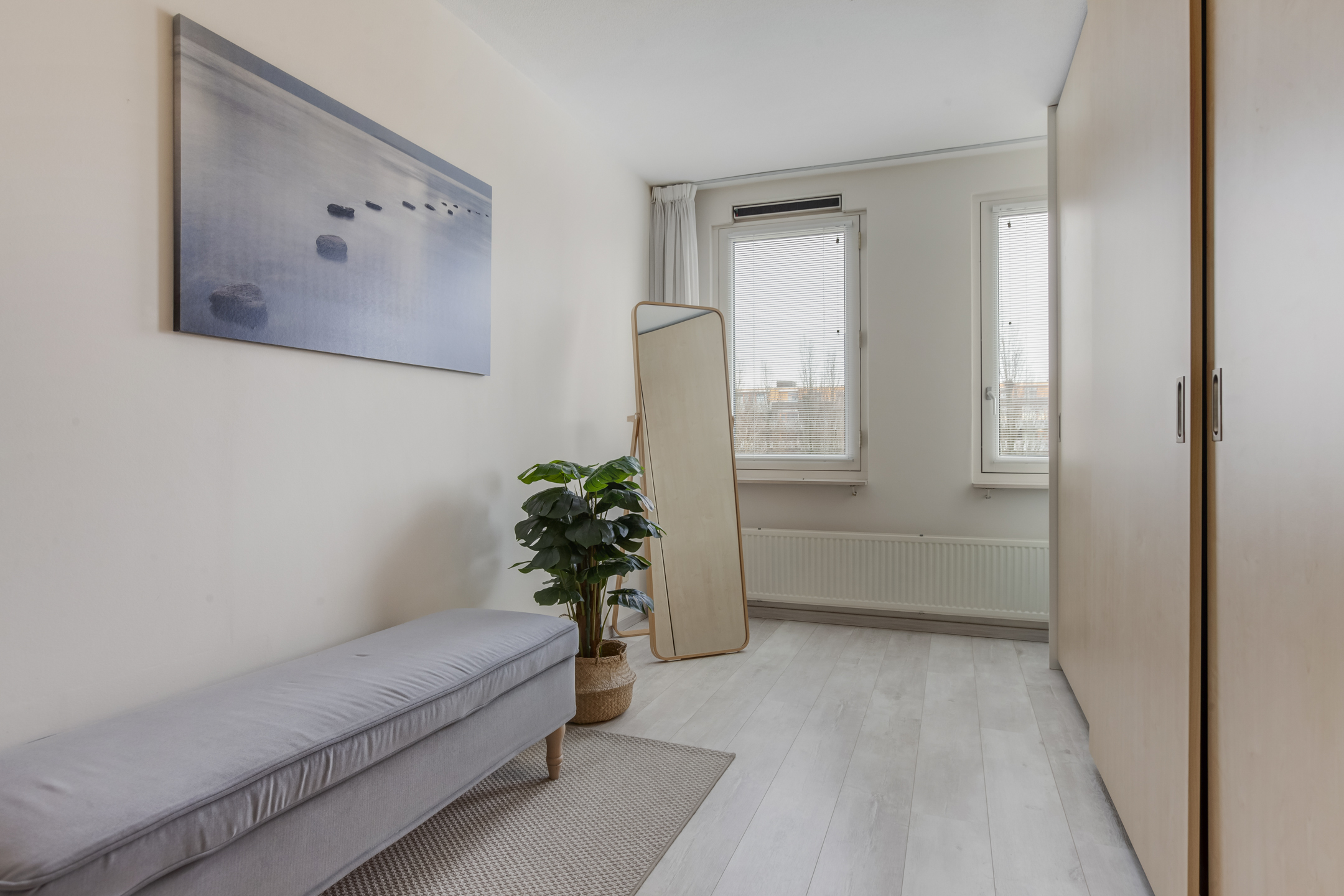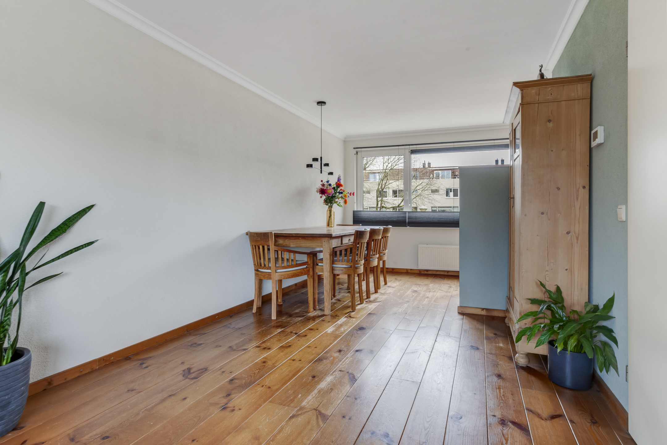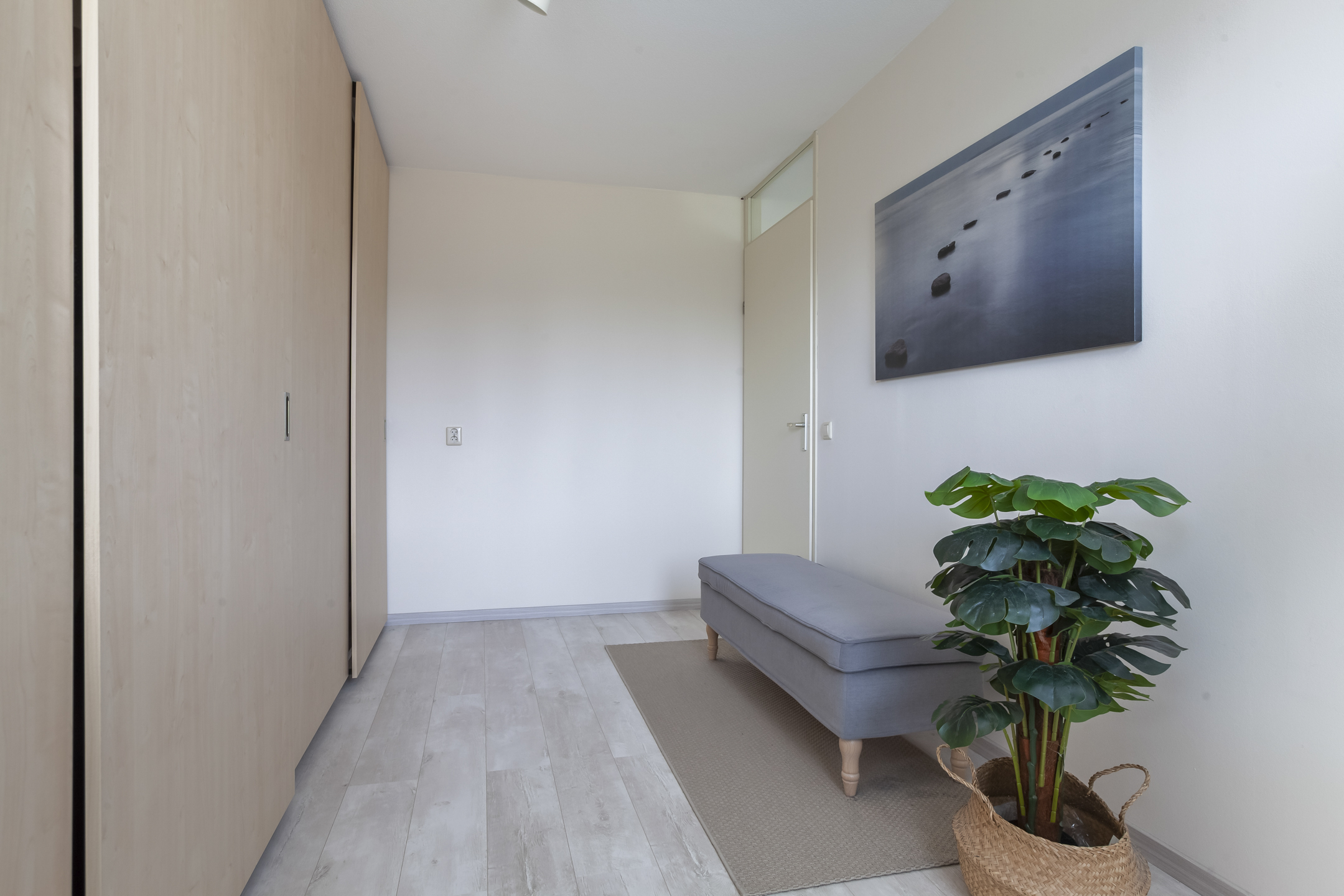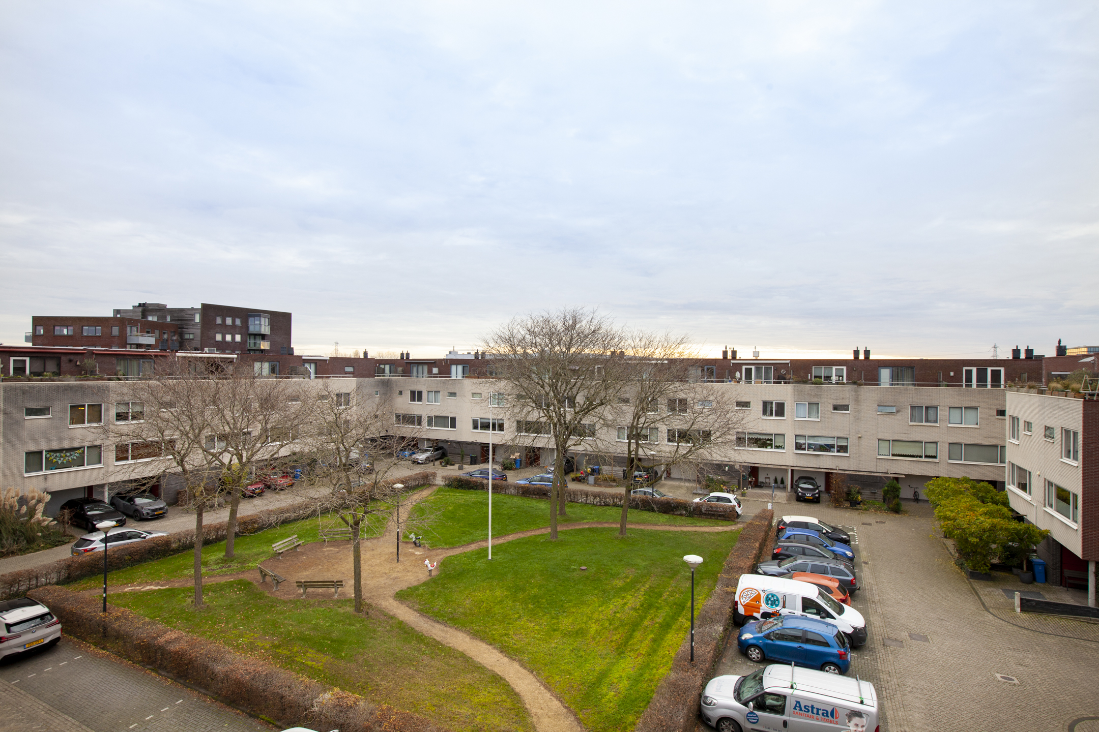 Op de derde verdieping bevindt zich de woningbrede vierde slaapkamer, voorzien van een vaste schuifkastenwand. Vanaf de overloop is daarnaast een ruime berging bereikbaar, ideaal voor het opbergen van allerlei spullen. Via een deur op de overloop is het zonnige dakterras te bereiken, gunstig gelegen op het zuidoosten. Een fijne, beschutte plek waar je in alle rust kunt ontspannen en genieten van de prettige woonomgeving.