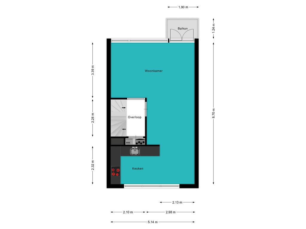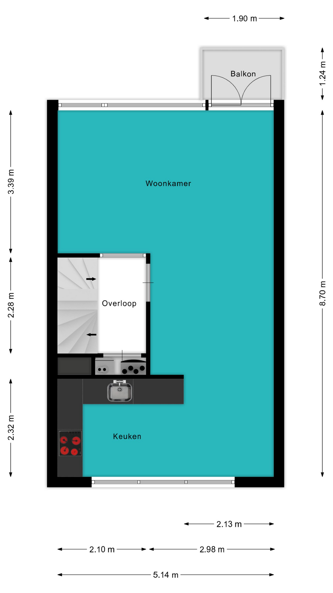 Voor de afmetingen en indeling raadpleeg de gedetailleerde plattegrond.