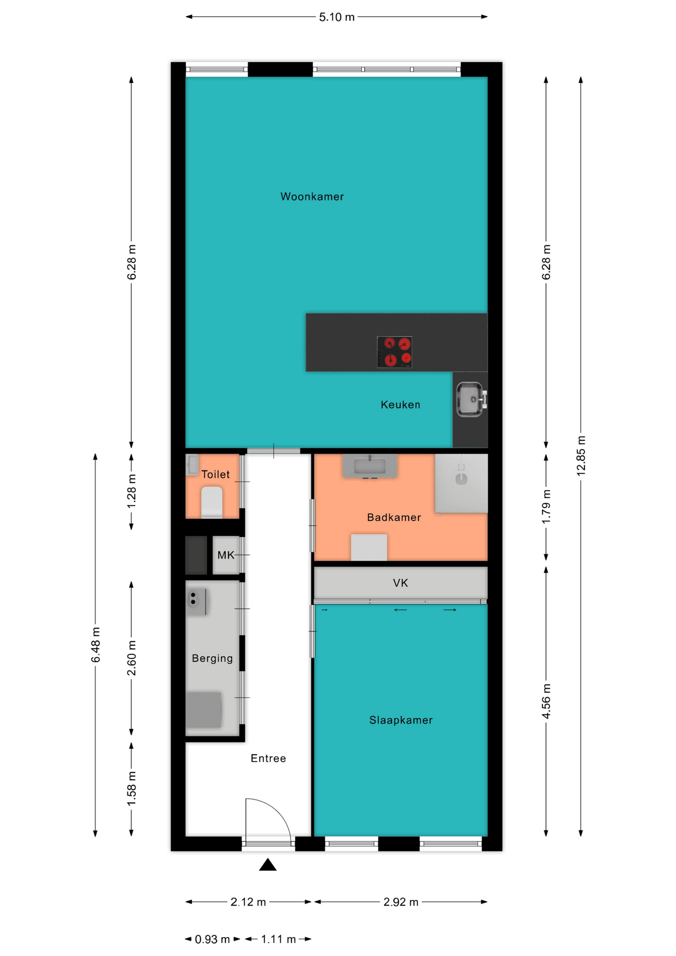Voor de afmetingen en indeling raadpleeg de gedetailleerde plattegrond.