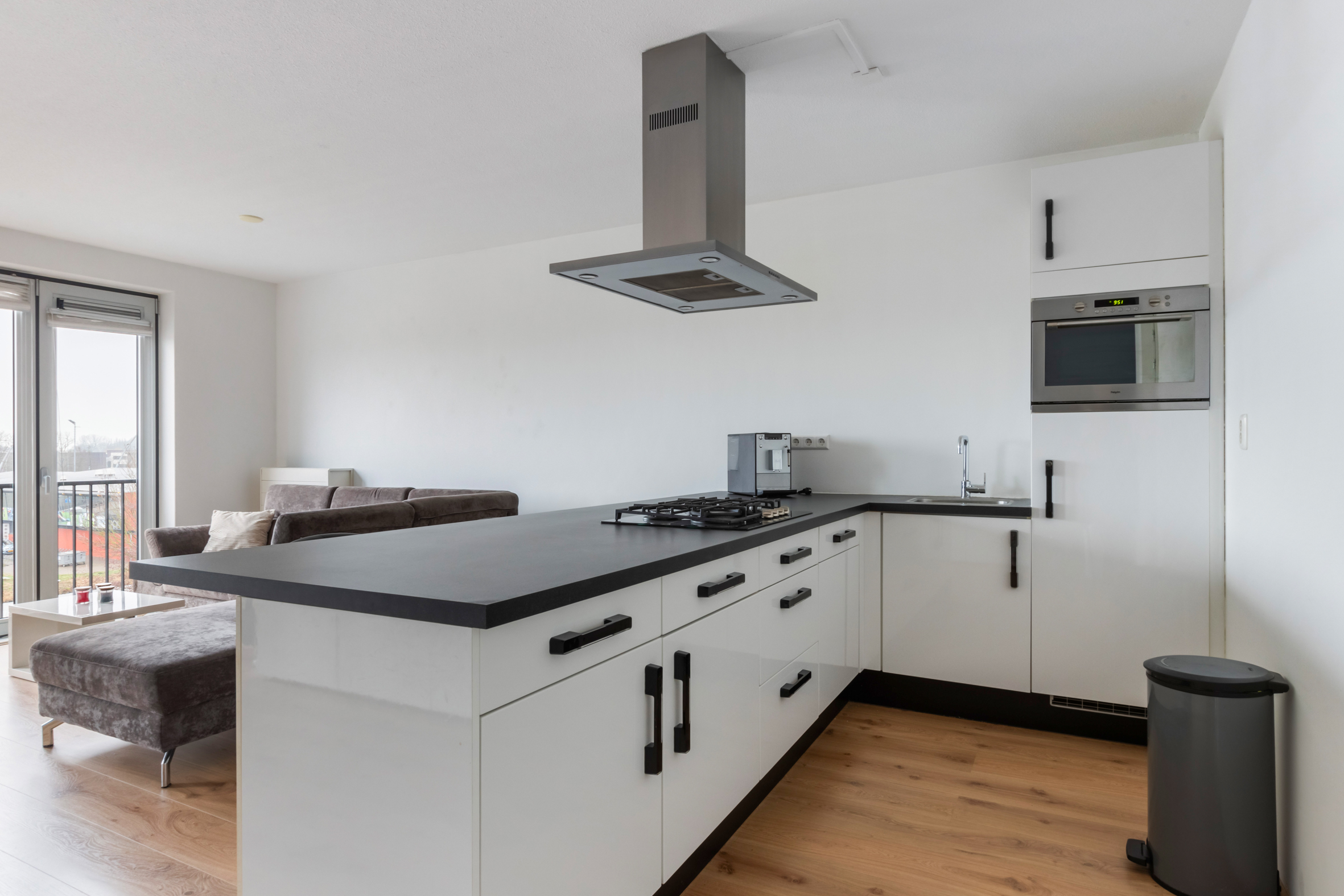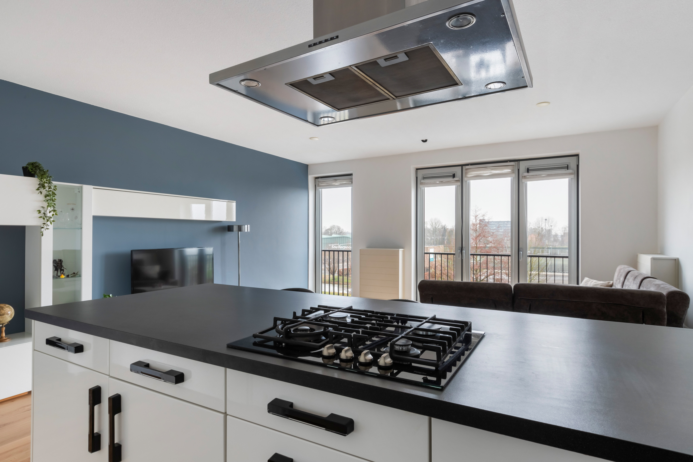 De open keuken bestaat uit een hoekopstelling met ontbijtbar. Tijdens het koken kijk je uit over de woonkamer en sta je in contact met je gezelschap, ideaal voor lange avonden tafelen en gezellig samenzijn, zonder dat je je hoeft af te zonderen in de keuken. De keuken beschikt over de volgende inbouwapparatuur: