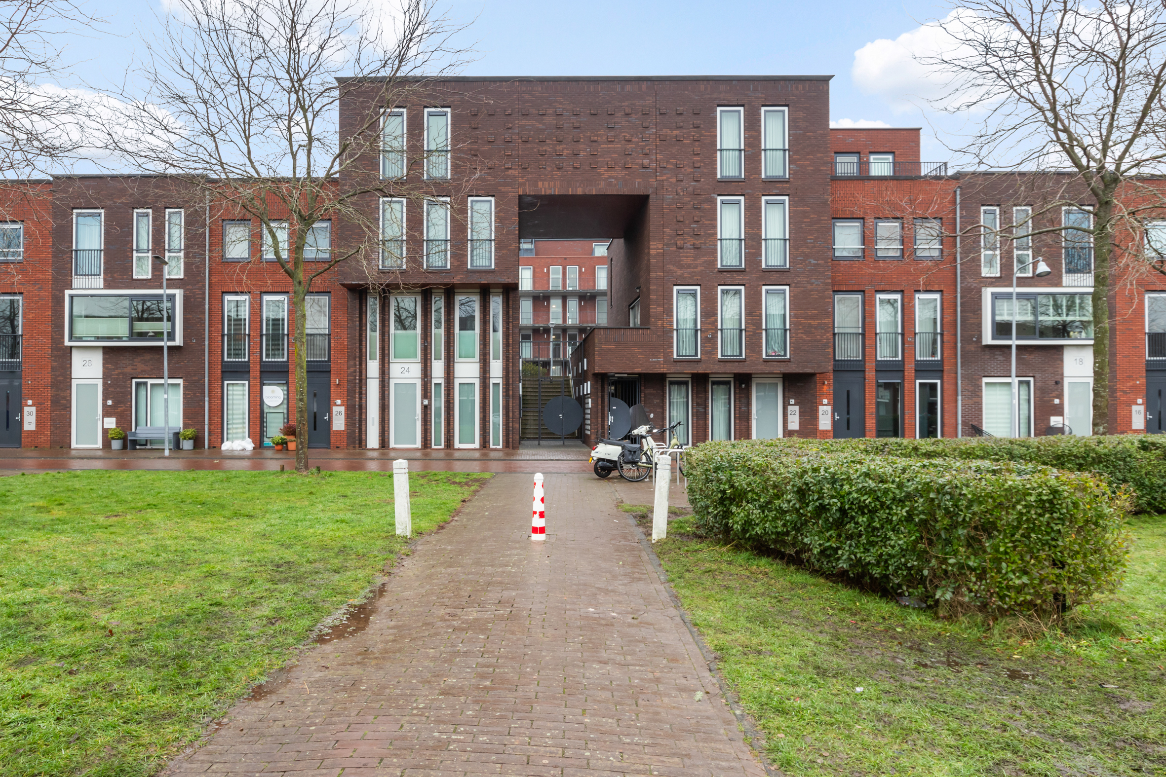 Via de centrale entree met een afgesloten poort en een bellentableau met videofooninstallatie kom je in het complex. Via een vaste trap is de aangelegde binnentuin te bereiken, gelegen op houten vlonders. Er is een tweede centrale entree met een liftinstallatie, waarbij dezelfde binnentuin te bereiken is. Op de begane grond, onder de vlonders, zijn de privéparkeerplaatsen te vinden en de algemene fietsenberging.