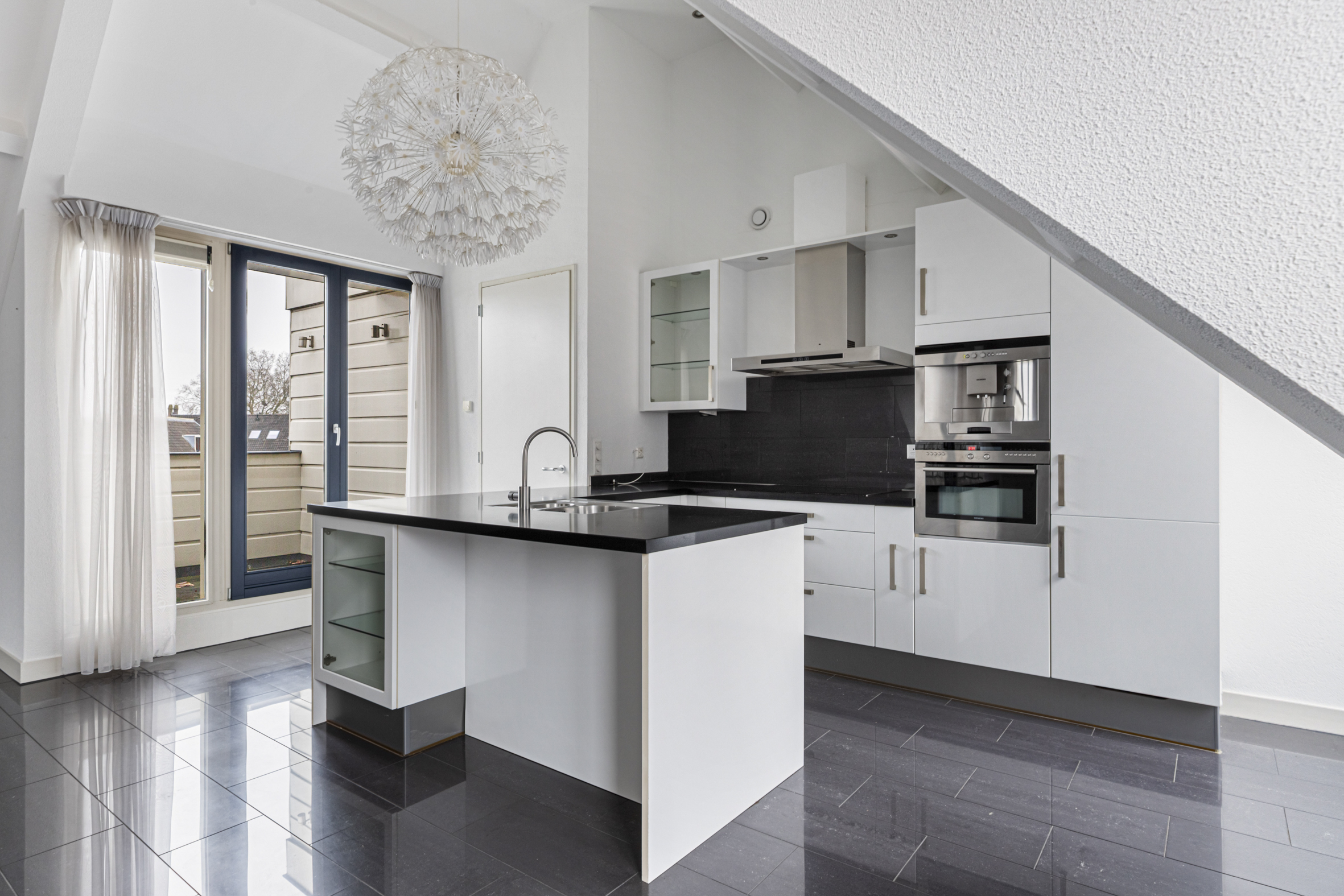 Bij binnenkomst in de hal heb je toegang tot de verschillende vertrekken. Aan het einde van de hal bereik je de lichte woonkamer met open keuken. Het hoge plafond met zichtbare balken en spanten en de dakkapellen met openslaande deuren en Franse balkons geven de ruimte een uniek karakter. De open keuken is opgesteld in een praktische U-vorm, waardoor je tijdens het koken altijd in contact blijft met de woonkamer. Ideaal voor gezellige avonden met vrienden en familie. De keuken is uitgerust met de volgende inbouwapparatuur:
