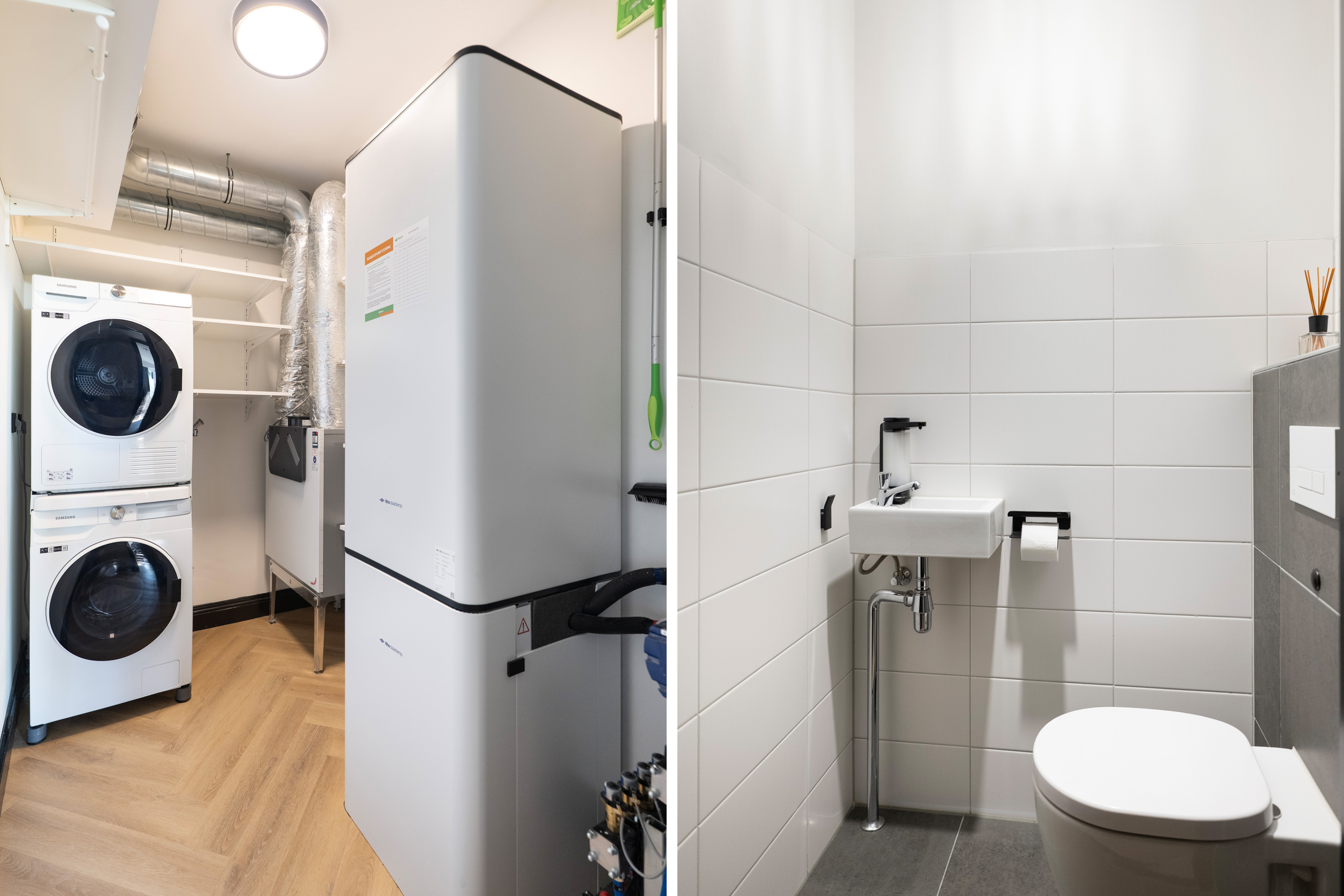 - Warmtepomp voor verwarming en warm water met extra groot voorraadvat