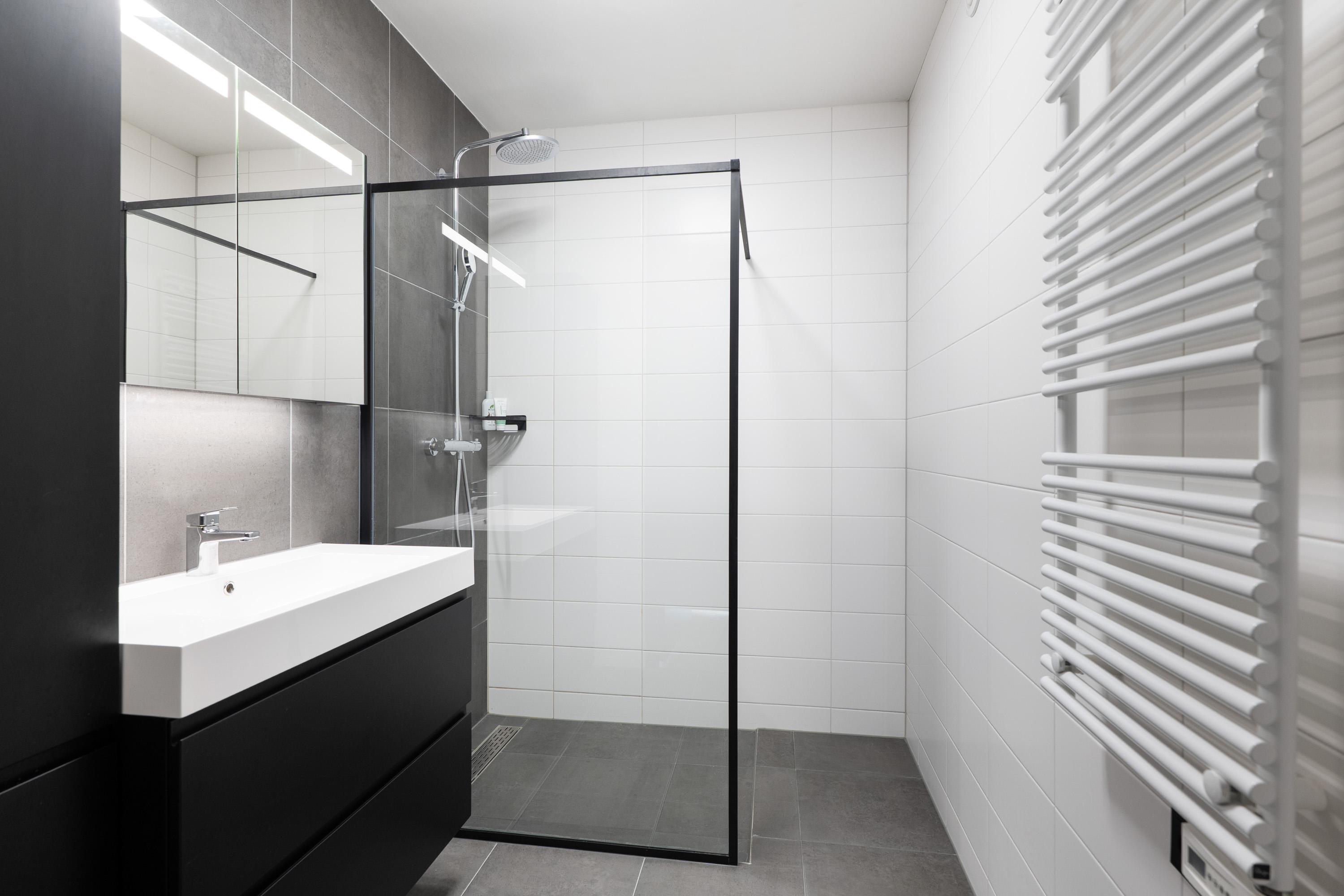 - Inloopdouche met extra lang glazen scherm