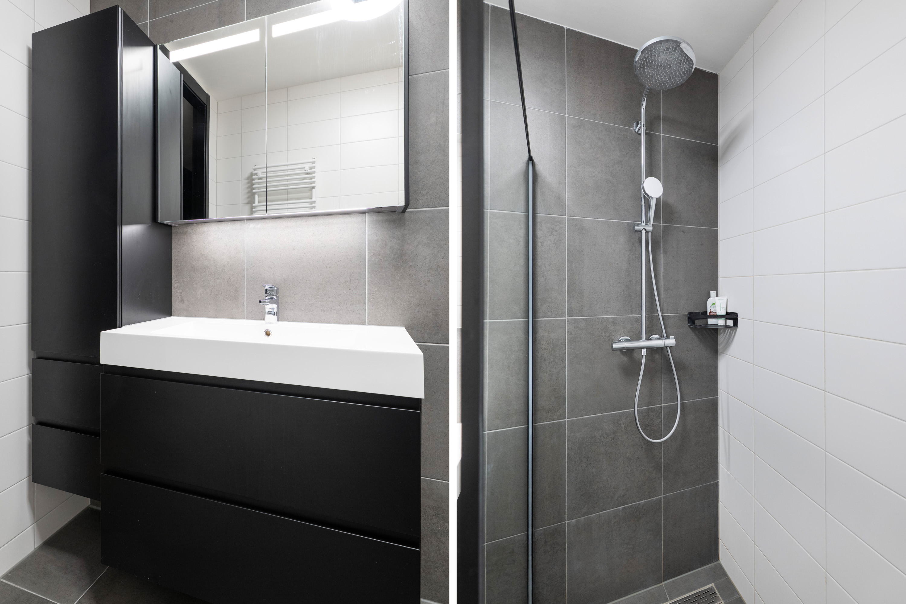 - Wastafelmeubel met spiegelkast en bijpassende wandkast