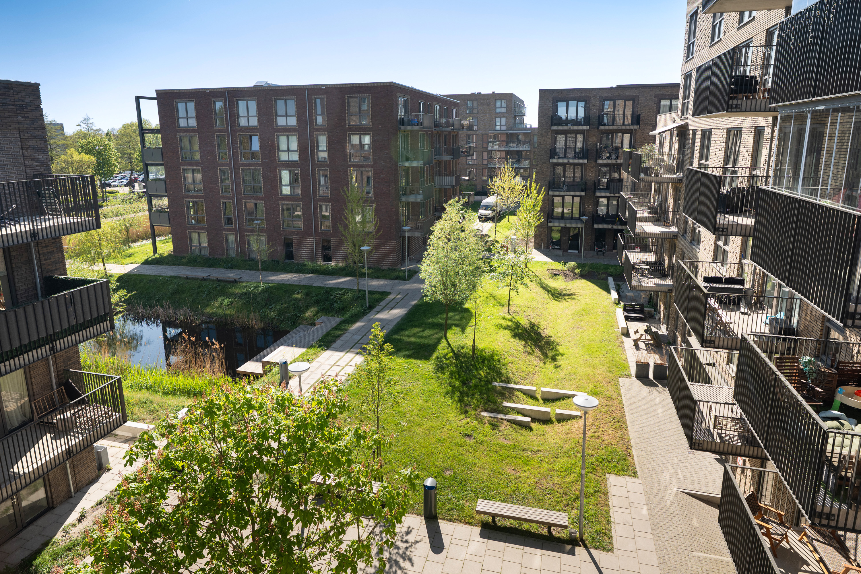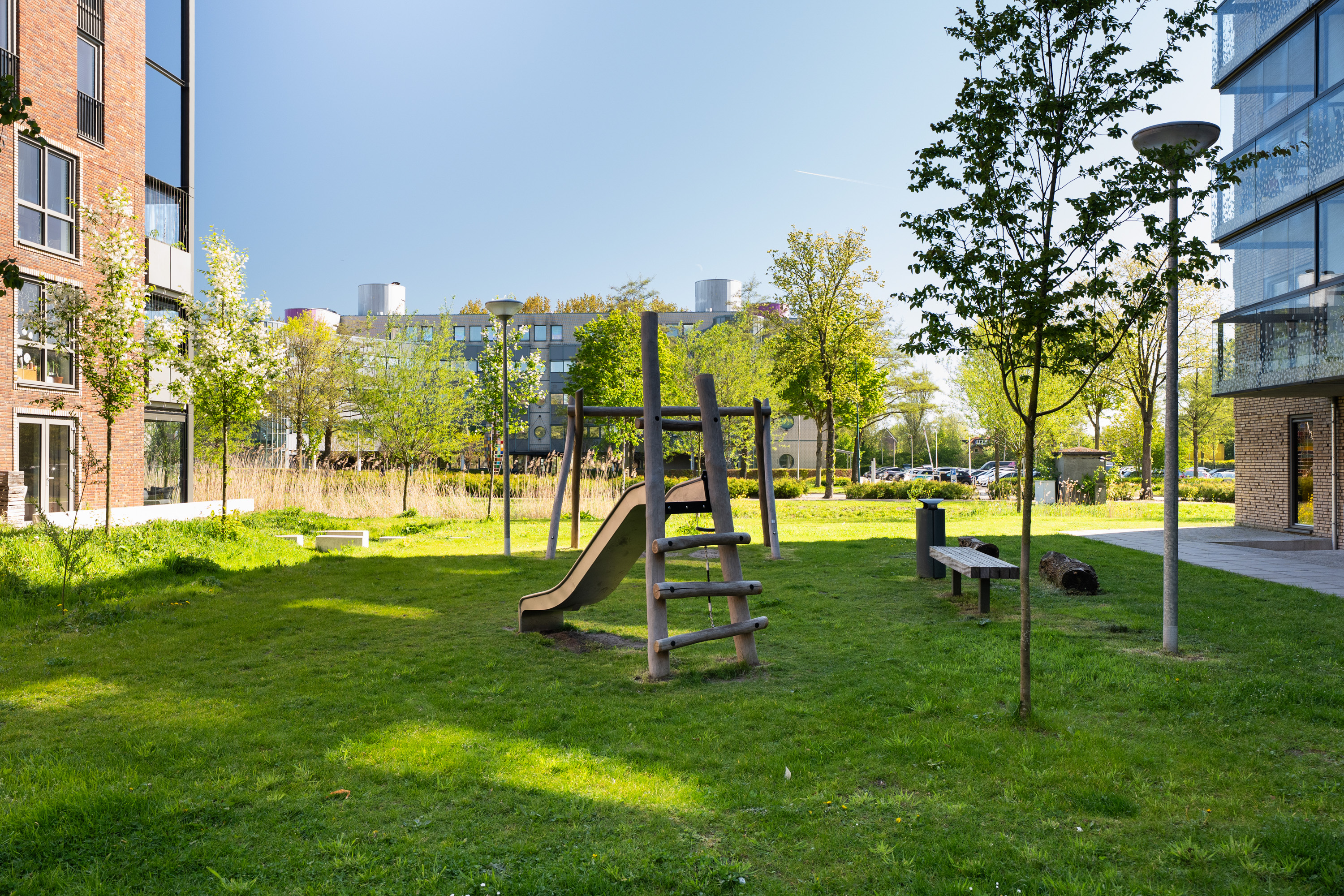 De Houttuin B maakt onderdeel uit van een beoogd campusterrein met zes woontorens en een gezamenlijke parkeergarage aan de rand van het centrum van Woerden. Voor bezoekers is in de parkeergarage eenvoudig een parkeerplaats te reserveren via een app. Tussen de gebouwen is een aantrekkelijke openbare ruimte aangelegd met veel groen, water en aandacht voor biodiversiteit. Het stadscentrum bevindt zich op ongeveer 10 minuten loopafstand en het treinstation ligt praktisch om de hoek. Dankzij de nabijheid van de A12 is de ligging bovendien zeer centraal en goed bereikbaar. Voor ontspanning ben je binnen enkele minuten in het Brediuspark.