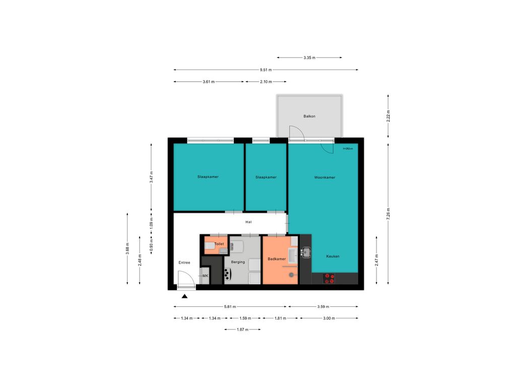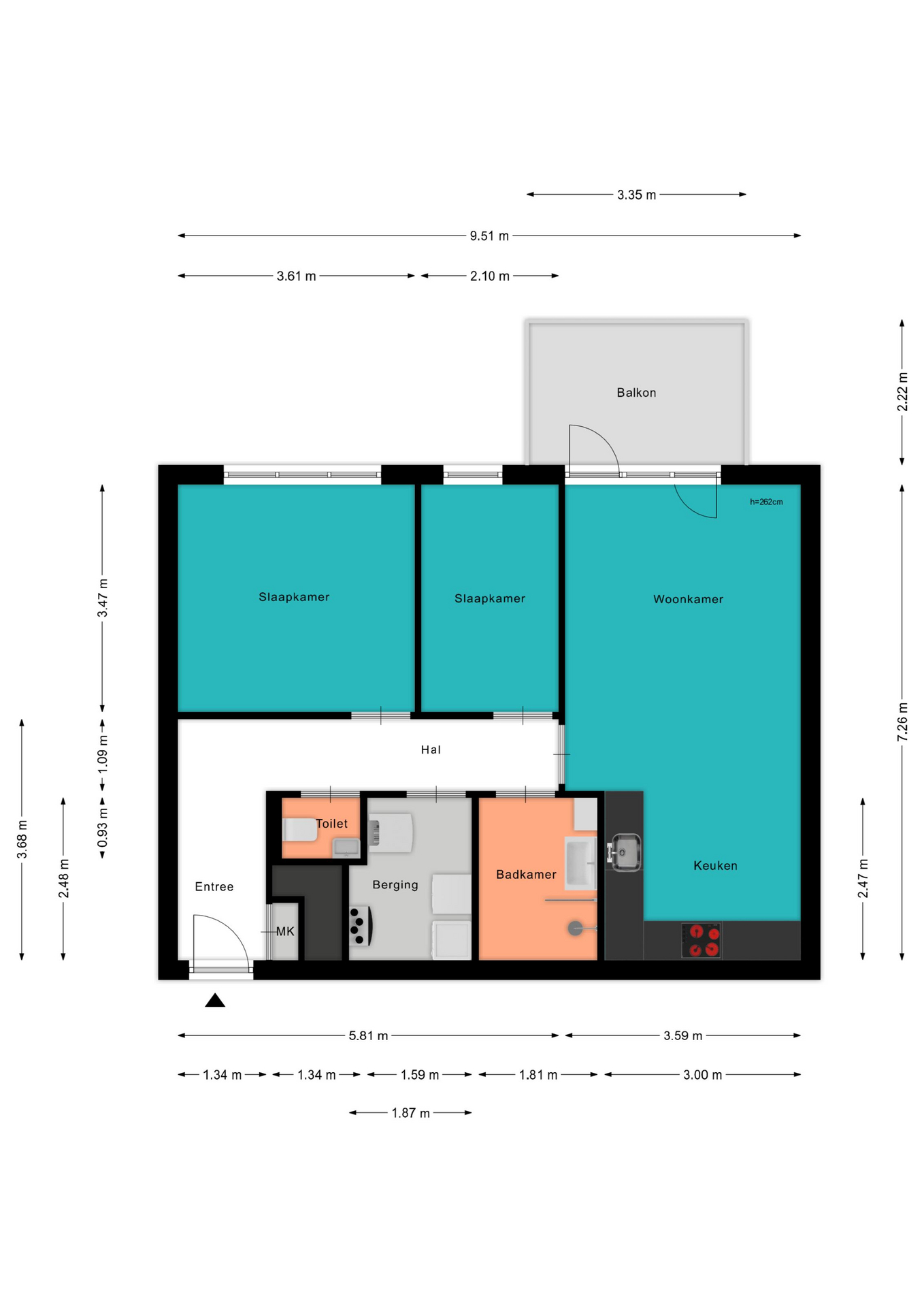 Voor de afmetingen en indeling raadpleeg de gedetailleerde plattegrond.