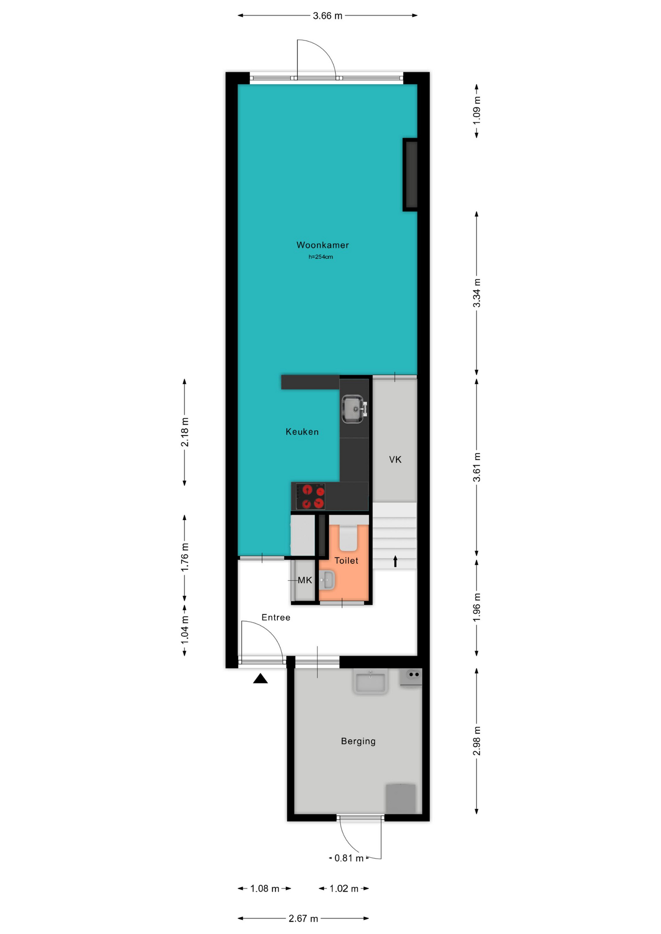 - Berging: ca 8 m²