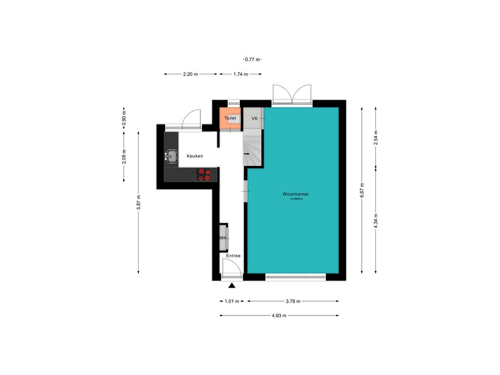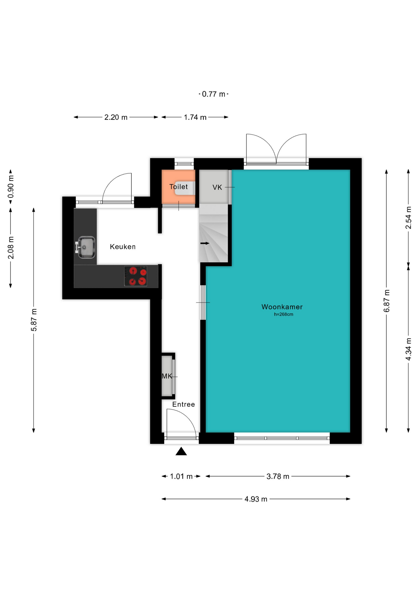 Voor de afmetingen en indeling raadpleeg de gedetailleerde plattegrond.