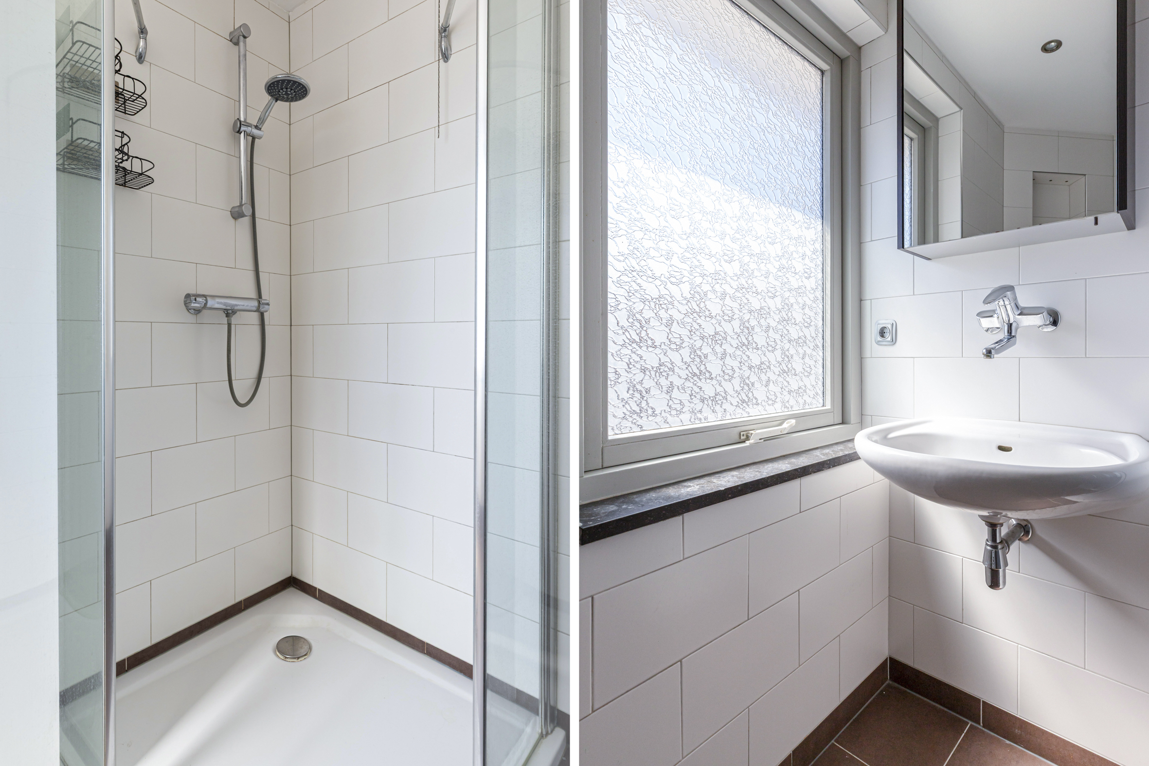 Vanaf de ruime overloop heb je middels een luik toegang tot de grote bergzolder over de breedte van het huis. Hier is de nieuwe HR CV-ketel opgesteld. Er zijn twee ruime slaapkamers aan de voor- en achterzijde van het huis. De ruime badkamer ligt aan de voorkant en is voorzien van een: