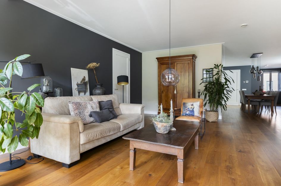 De ruimte tussen de keuken en de woonkamer is geschikt voor een lange eettafel en door de hoge zijramen is er een goede lichtinval. Het royale zitgedeelte geeft een prachtig uitzicht over het water. Dankzij de dubbel openslaande deuren is het terras en verlengstuk van je woonruimte - ideaal voor lange zomeravonden. Het terras van ca 27 m² ligt pal aan de Oude Rijn en biedt volop zon door de ligging op het zuidoosten.