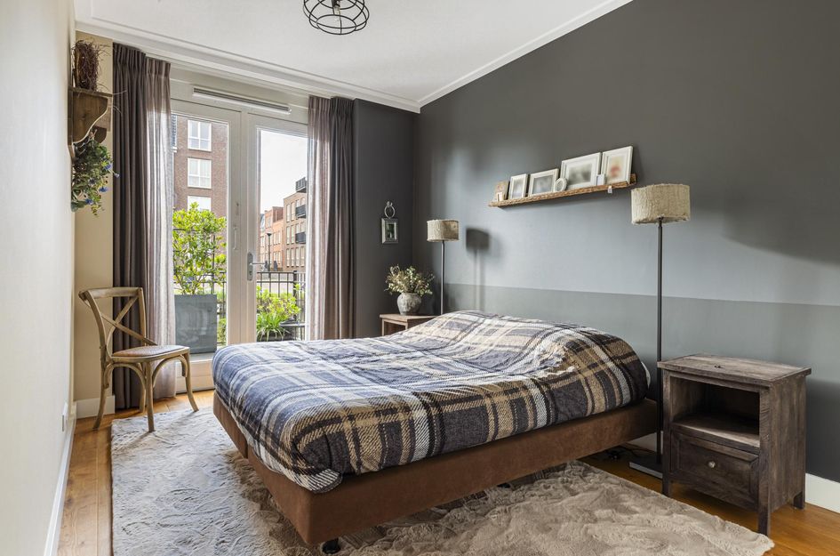 Vanuit het zitgedeelte van de woonkamer is er toegang tot de tussenhal met de toiletruimte. De twee slaapkamers zijn ruim en licht en hebben beide openslaande deuren naar het buitenterras. De badkamer is modern ingericht met een inloopdouche, wastafelmeubel en een handdoekradiator.
