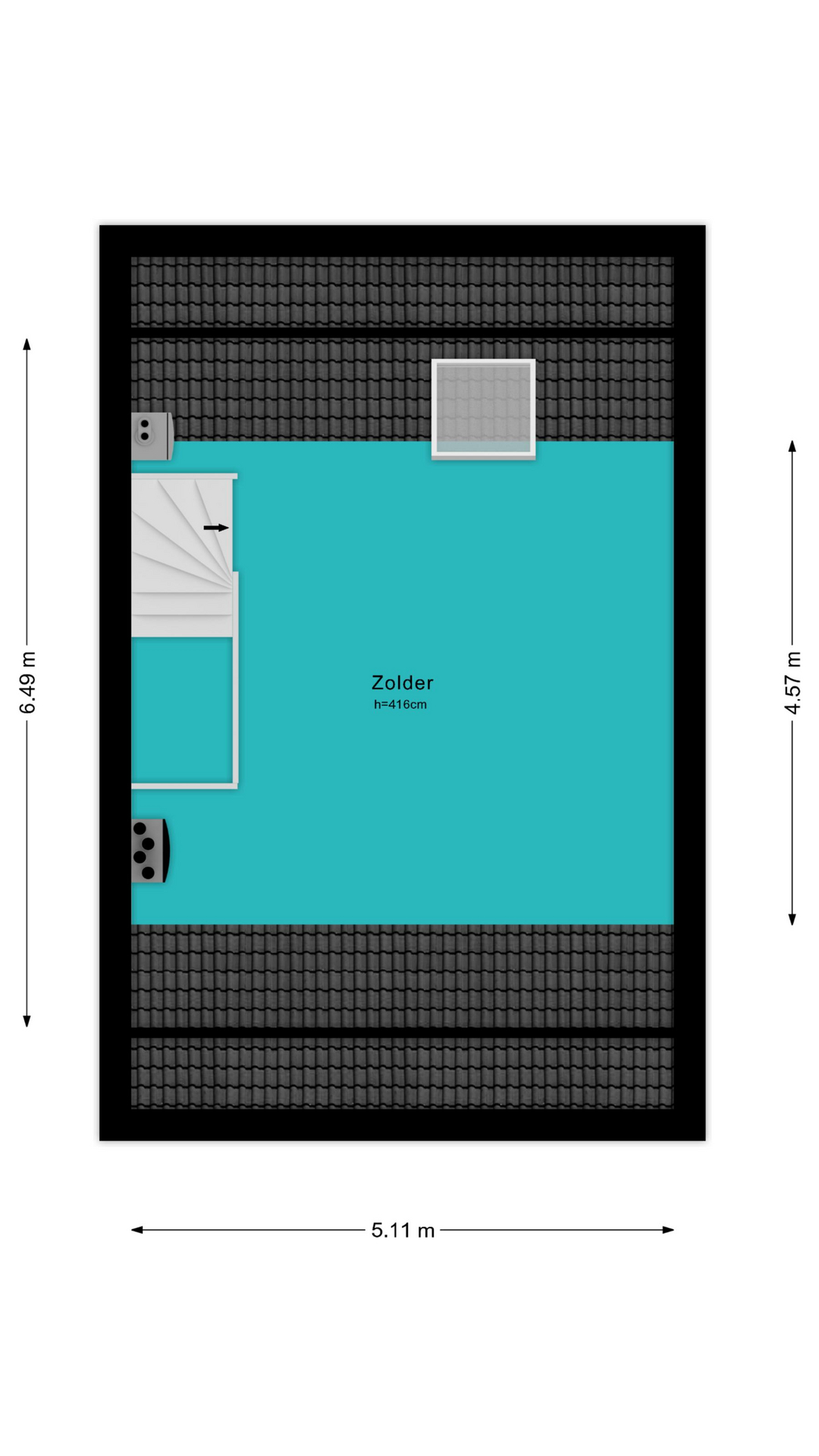 De open zolderverdieping is ruim, heeft een groot dakraam voor extra lichtinval en de aansluitingen voor de wasapparatuur zijn hier te vinden. Verder zijn hier de cv-ketel en de unit voor de balansventilatie opgesteld.
