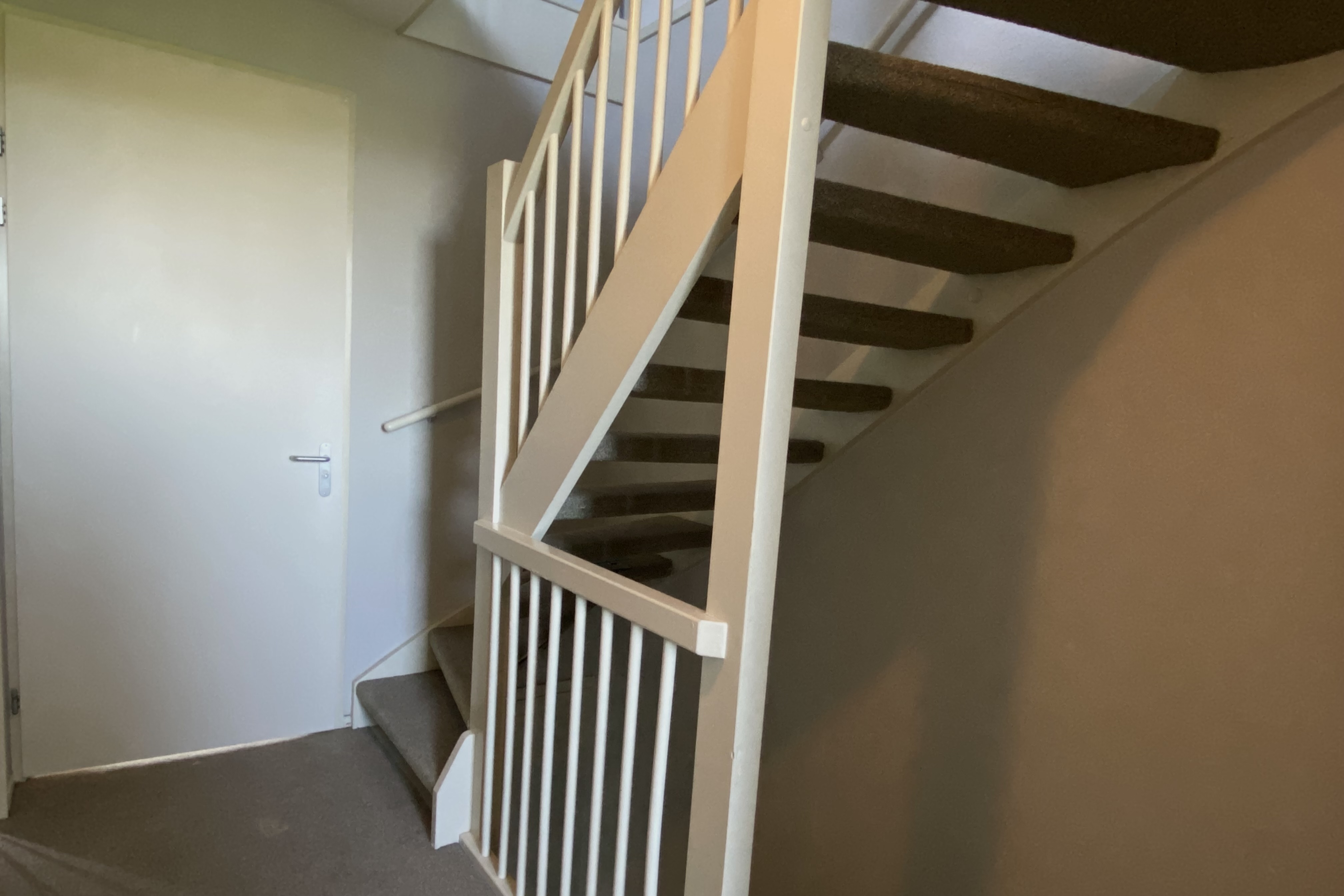 De vaste kast onder de trap is ideaal voor het opbergen van voorraad of andere spullen.