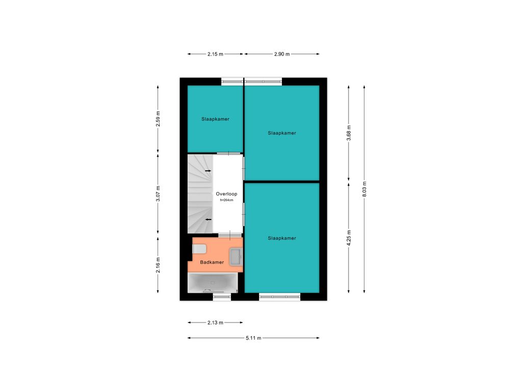 Voor de afmetingen en indeling raadpleeg de gedetailleerde plattegrond.