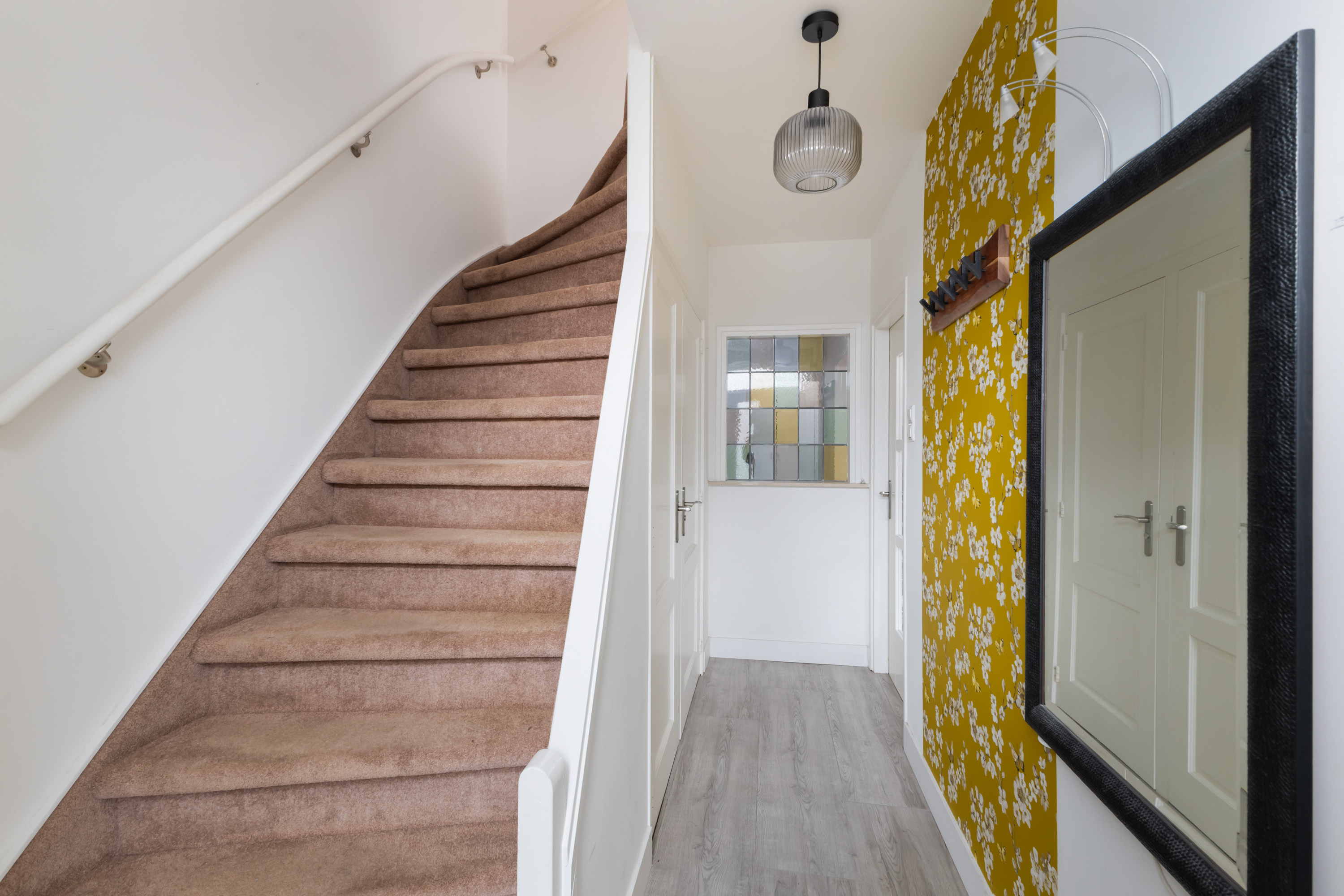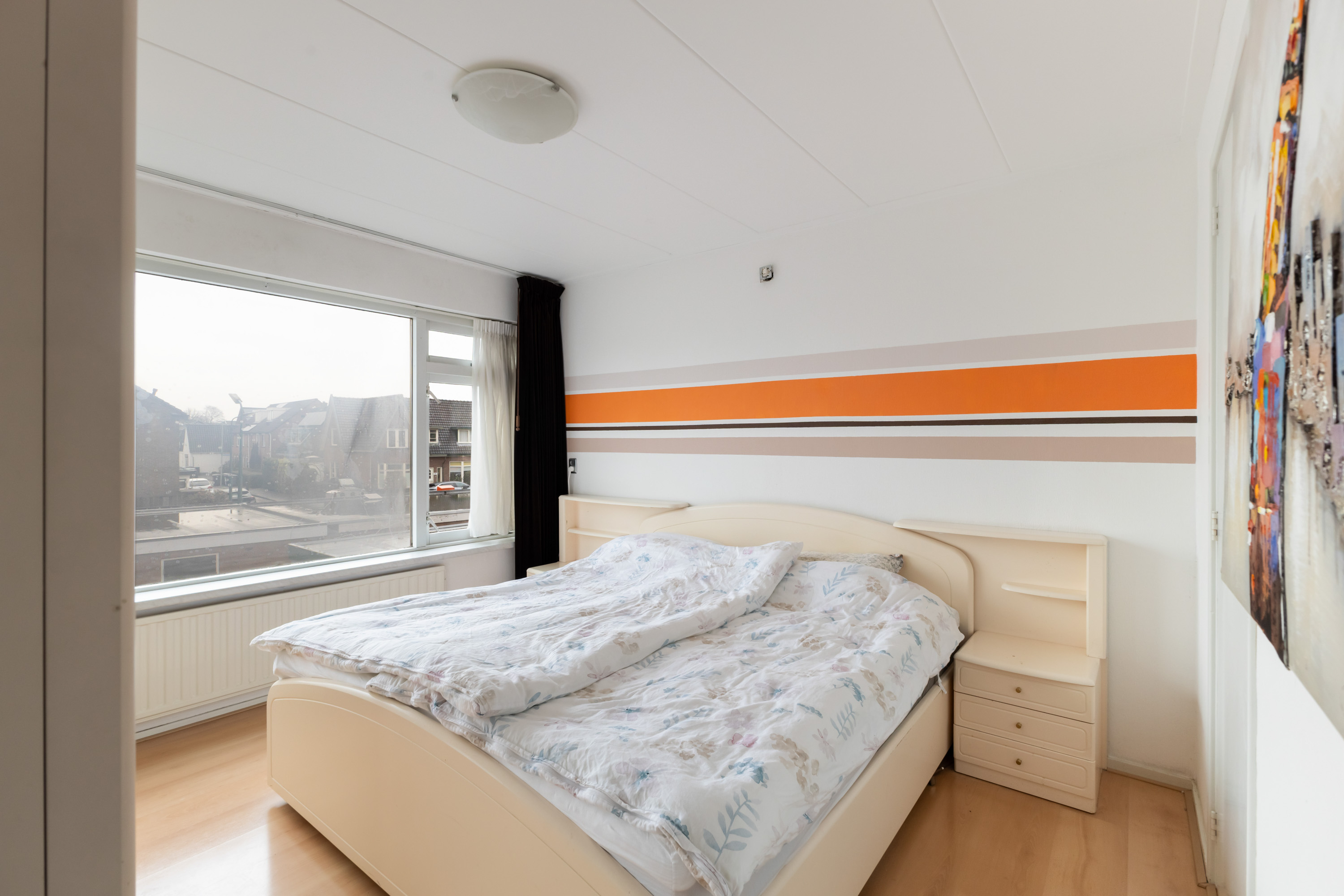Vanaf de overloop heb je toegang tot drie slaapkamers, de badkamer en een separate toiletruimte. De twee grote slaapkamers aan de voor- en achterzijde hebben een vaste kast en riante ramen. De nette en volledig betegelde badkamer heeft een wastafelmeubel en een inloopdouche. Vanaf de overloop kom je met de vaste trap op zolder.