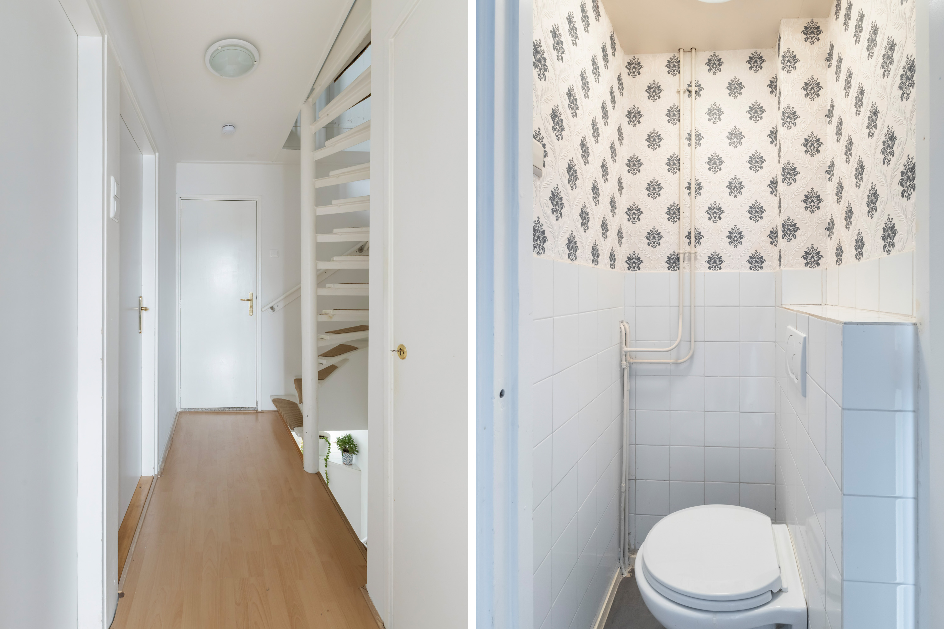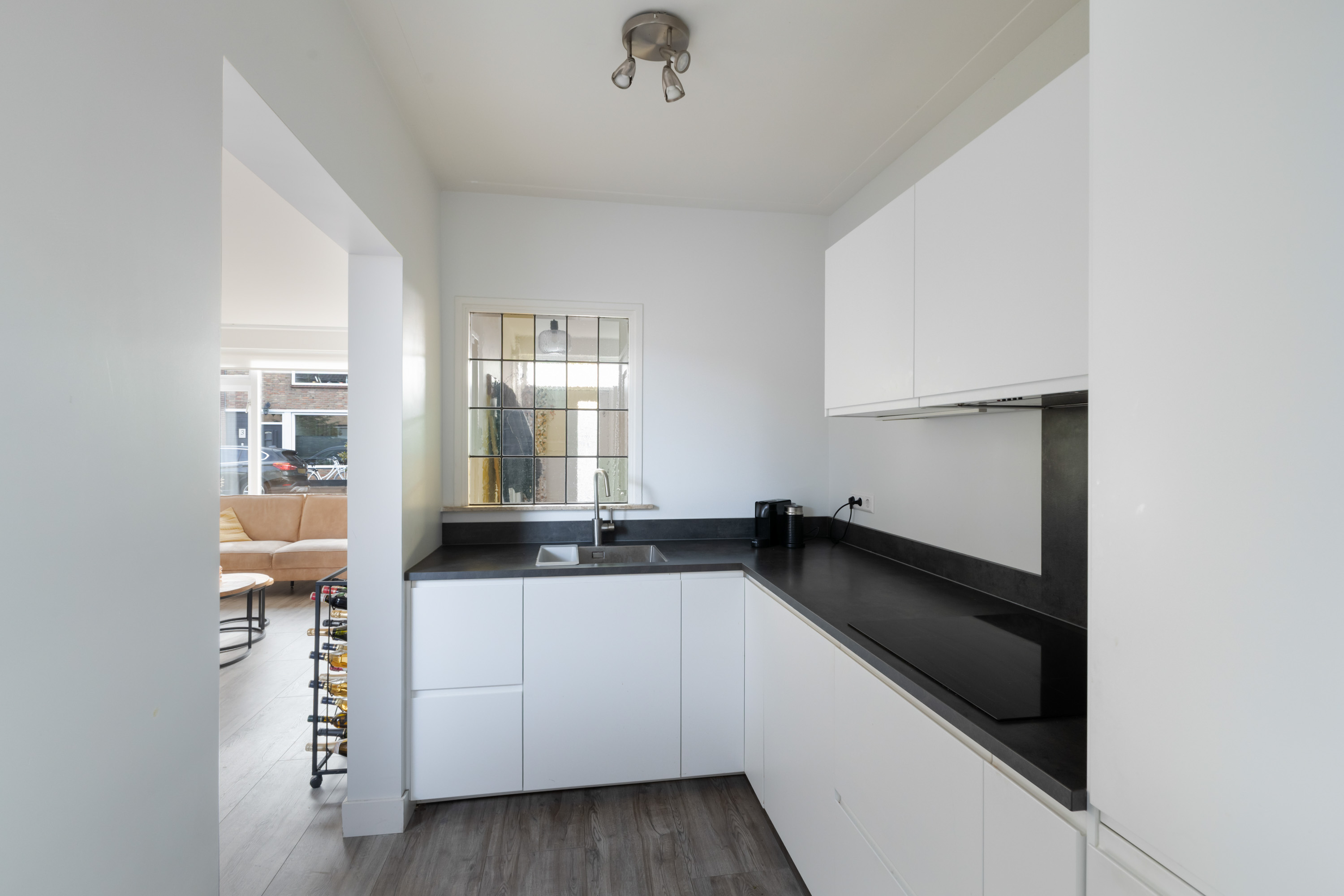 Via de royale voortuin stap je de hal in met de trapopgang, meterkast, kelderkast en de toiletruimte. Aan het einde vind je de deur naar de woonkamer met aansluitend de halfopen keuken. Vanuit de woonkamer heb je een leuk uitzicht over de straat. De keuken is in een hoek opgesteld en voorzien van een inductiekookplaat, afzuigkap, vaatwasser, koel-vriescombinatie en close-in boiler.
