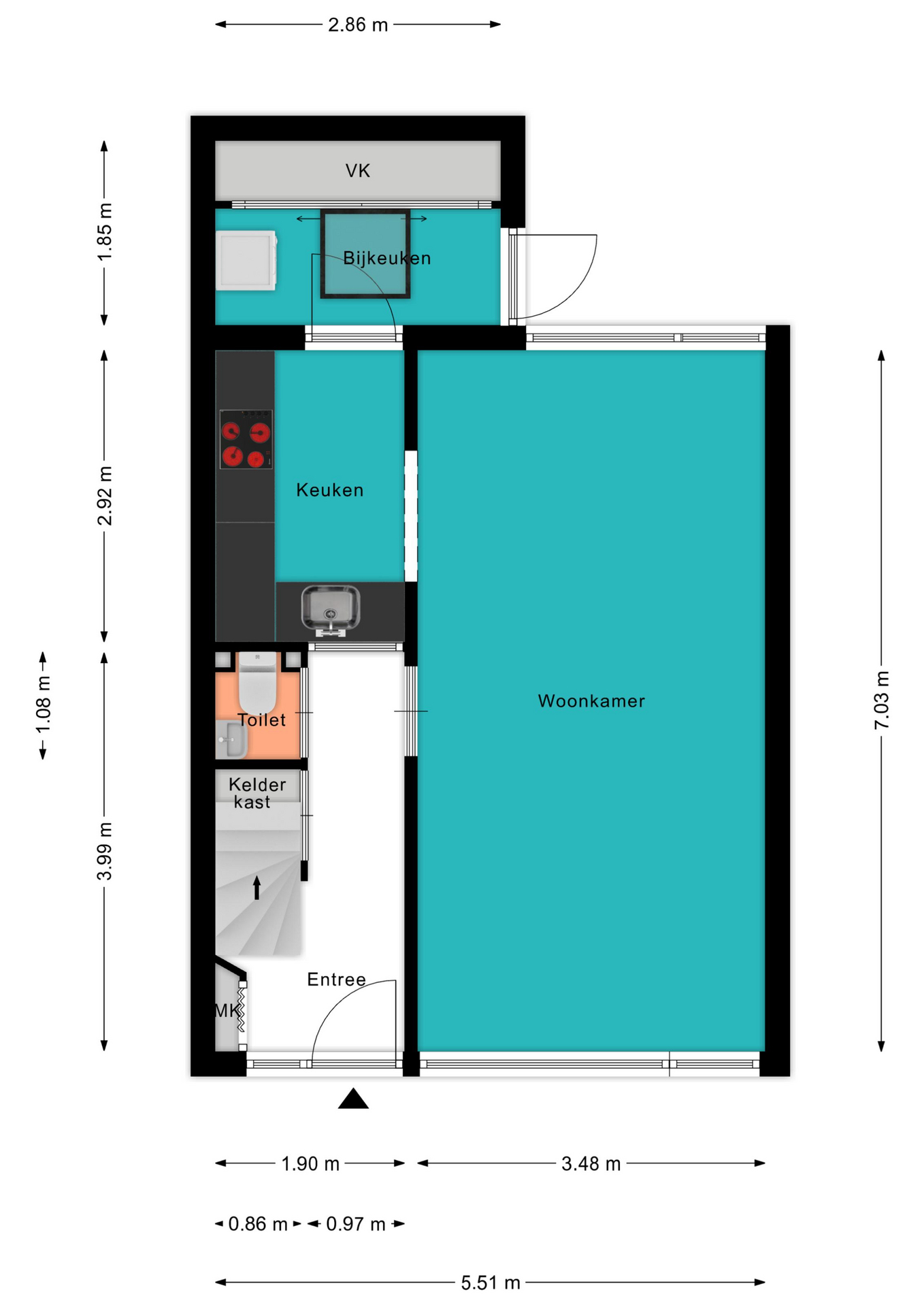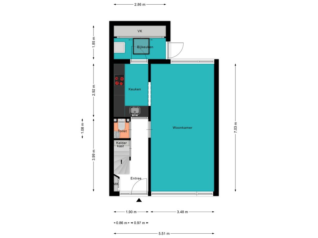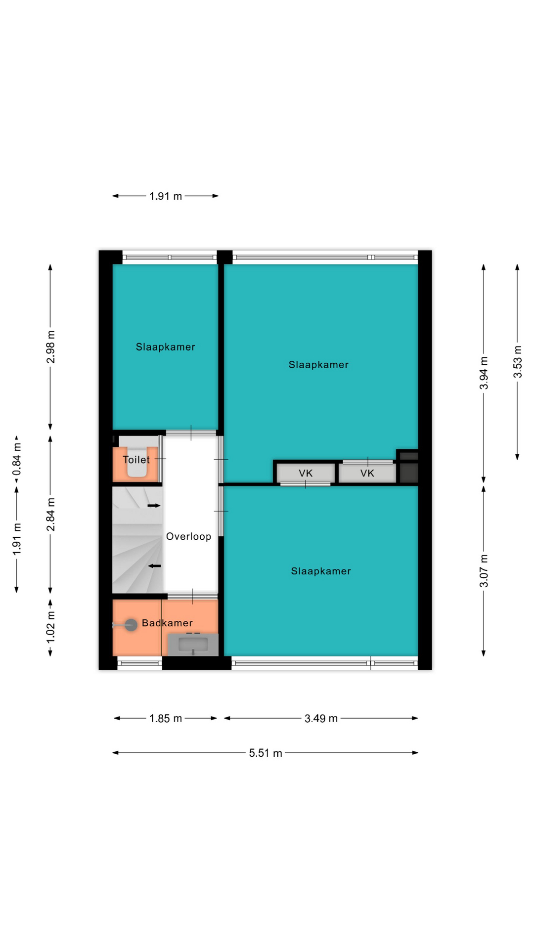 Voor de afmetingen en indeling raadpleeg de gedetailleerde plattegrond.