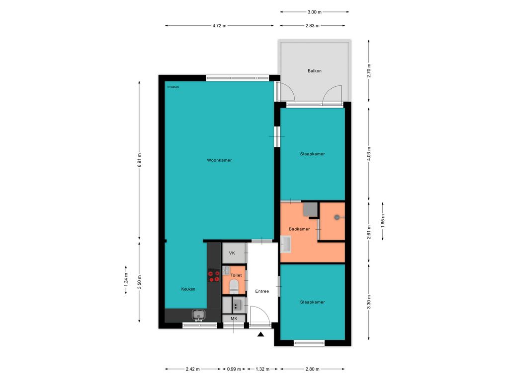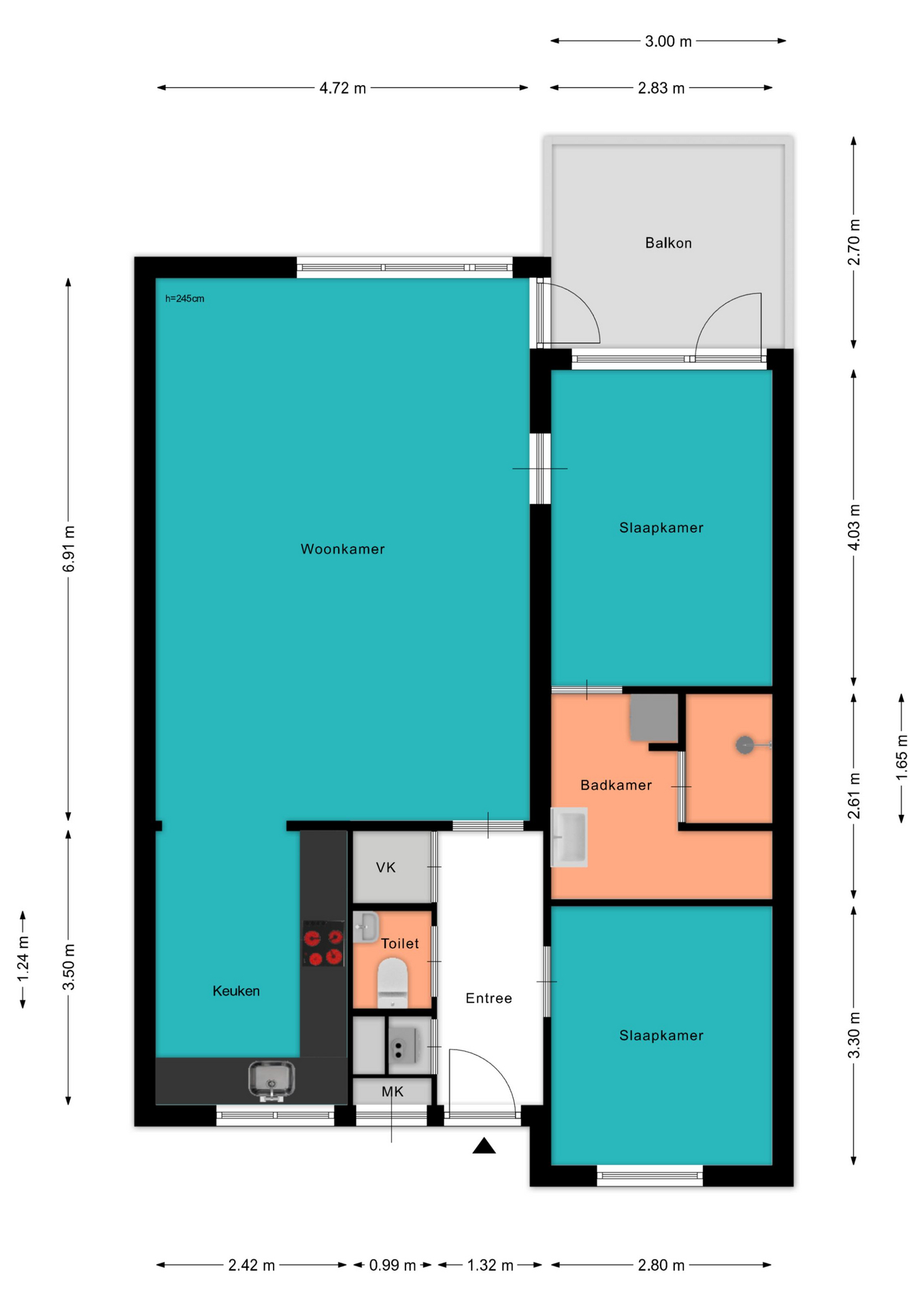 Voor de afmetingen en indeling raadpleegt u de gedetailleerde plattegrond.